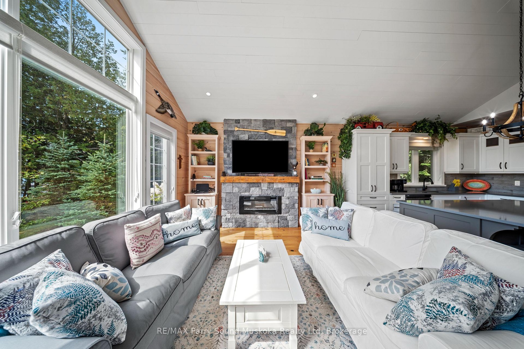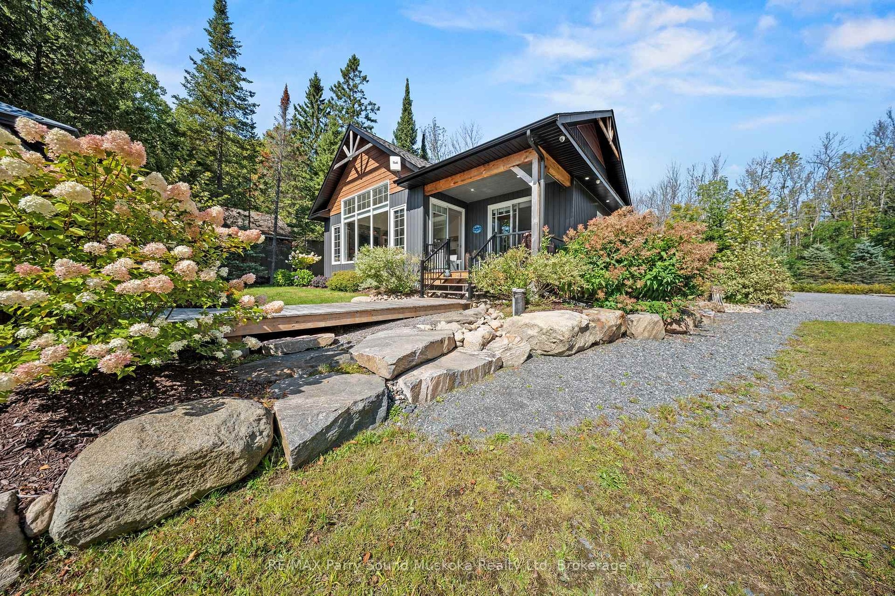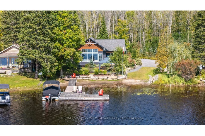 The whole cottage country package! 2 properties combined or sold separately w/ 2 separate parcels/pins. Newly & well built, waterfront home/cottage on quiet Blackwater Lake in the Township of Seguin. Also included is an additional 13 acres of privacy with a newly built 32x50 garage/shop w/ 16x50 carport ready for you to build a home or keep as an extra cottage country play ground for you & your family. The garage is heated w/ propane forced air for year round use. 200 amp panel. Located on a year-round private road to live, work & play the cottage country dream w/ all-season activities from your doorstep.The home has 2 spacious bedrooms, 2 bathrooms, open concept w/ no details missed.Hemlock & Flagstone flooring. Quartz seal stone countertop in the kitchen. Large windows bring in plenty of natural light.Vaulted ceilings. Custom window treatments. A meticulously maintained home/cottage, move-in ready. Attached garage w/ large windows & storage/ loft area. A level property for ease of access to the waterfront w/ sand entry and some deeper water for docking your boat. A great property for kids & pets to walk & play. South exposure, bringing sun all day. Cool off w/ some shade under the gazebo, the front porch or in the air-conditioned home. Sand entry & deeper water for docking.Blackwater Lake is a motorized lake great for fishing, kayaking, paddle boarding & water skiing. Septic has a permit serviced yearly. Waterside gazebo for relaxing views & listening to the whispering sounds of "mother-nature". Bell 5G wireless. Security system.Generac system for ease of mind. ICF foundation. Propane forced air & air conditioning.Drilled well. Gated w/ plenty of parking space. Rental income potential. Visit the quaint village of Orville w/community centre, small amenities/grocery, park & market. 30 min drive to Parry Sound for shopping, hospital, theatre of the arts & schools.30 min drive to the village of Rosseau. No matter what direction you take, this home base is a home run!