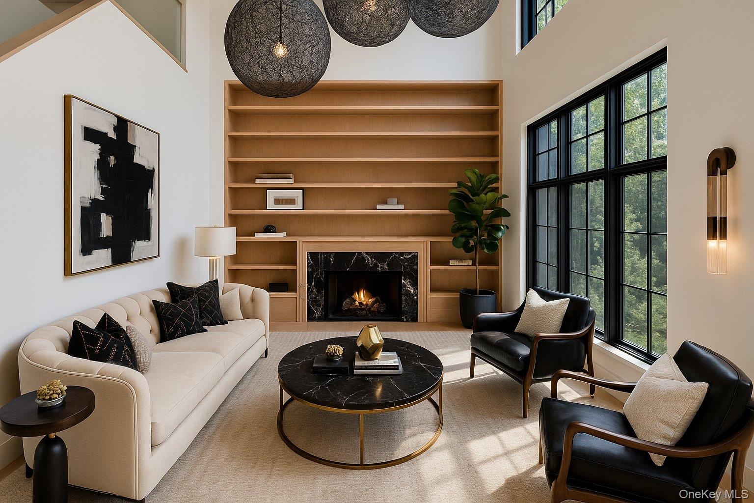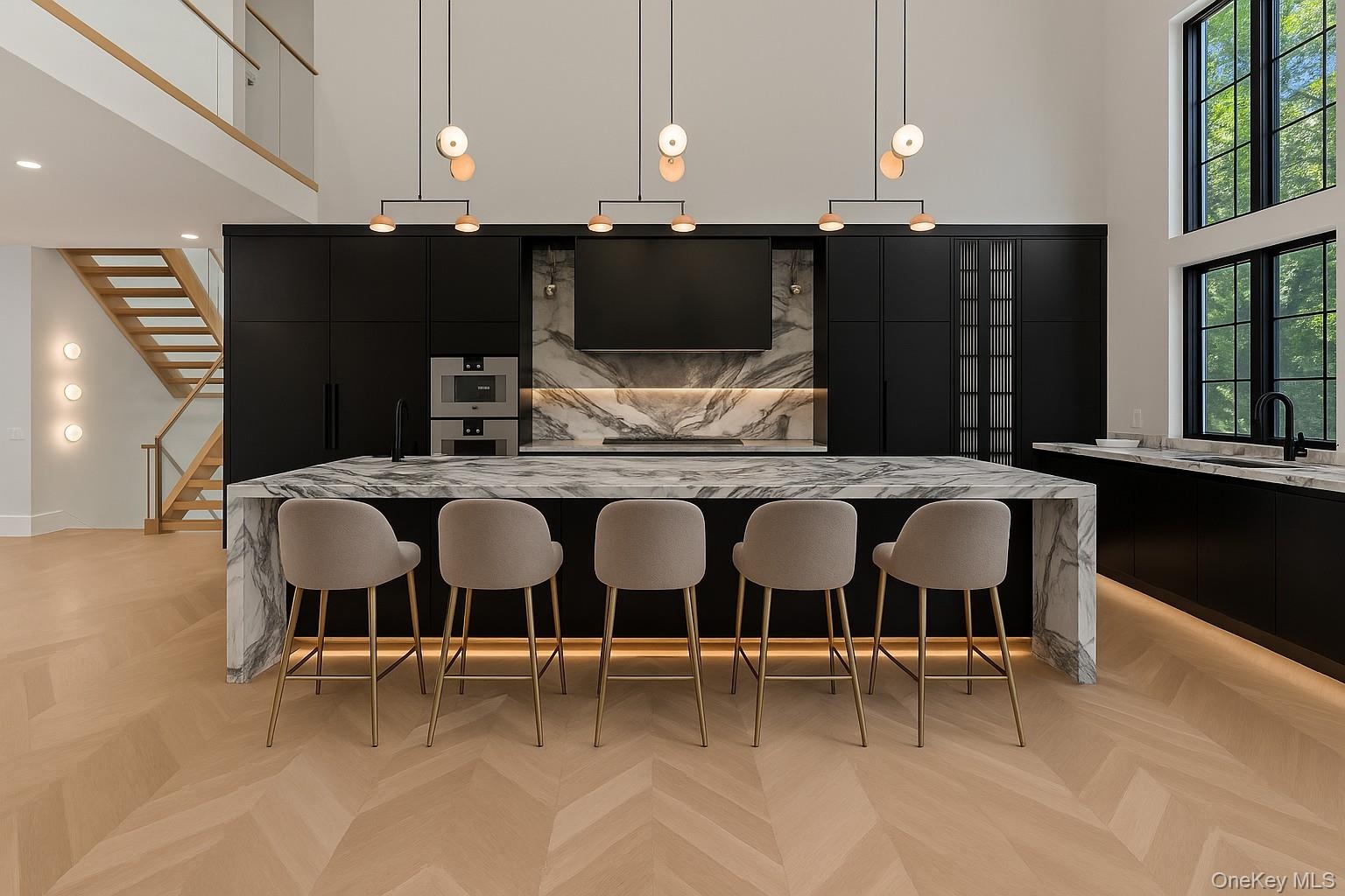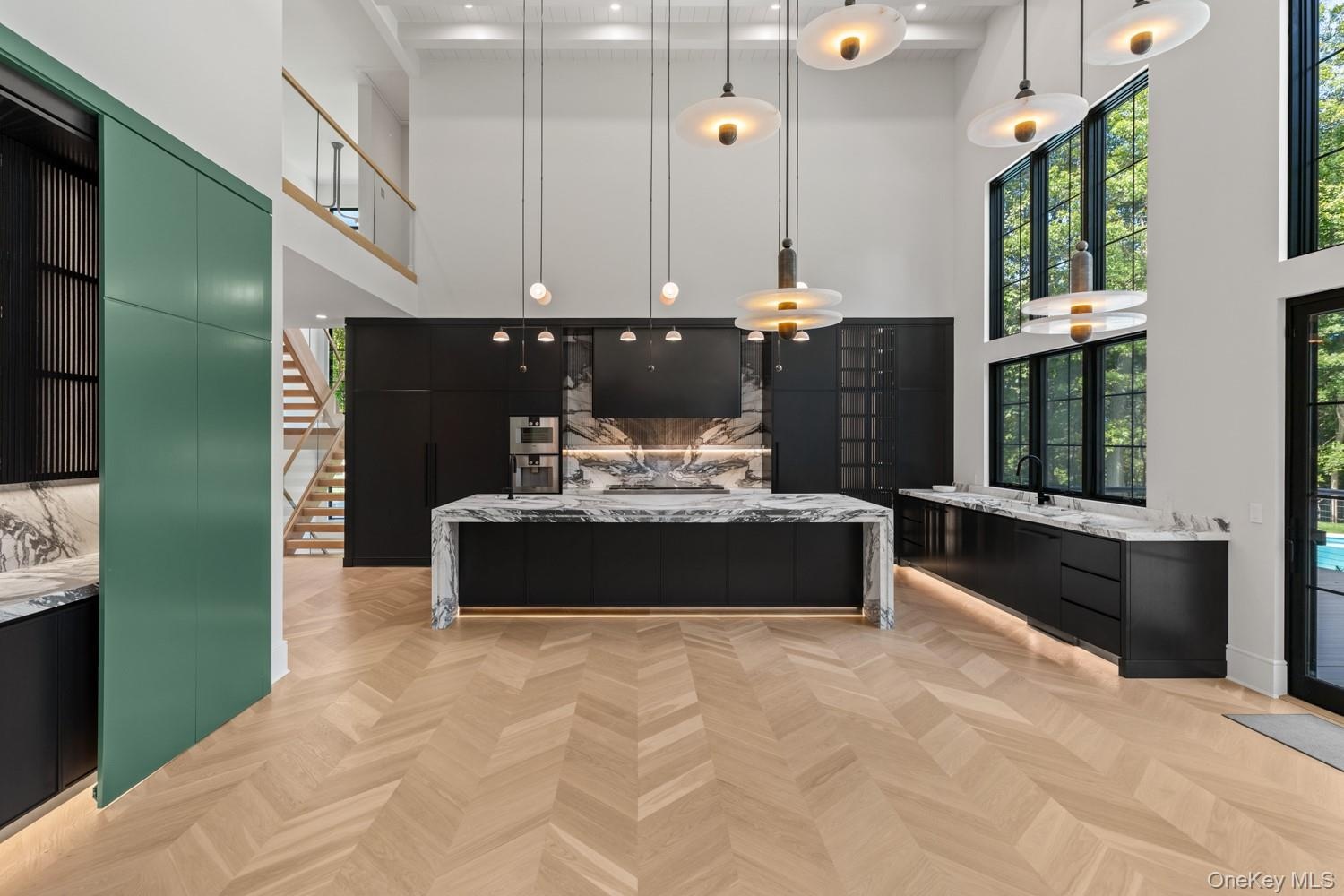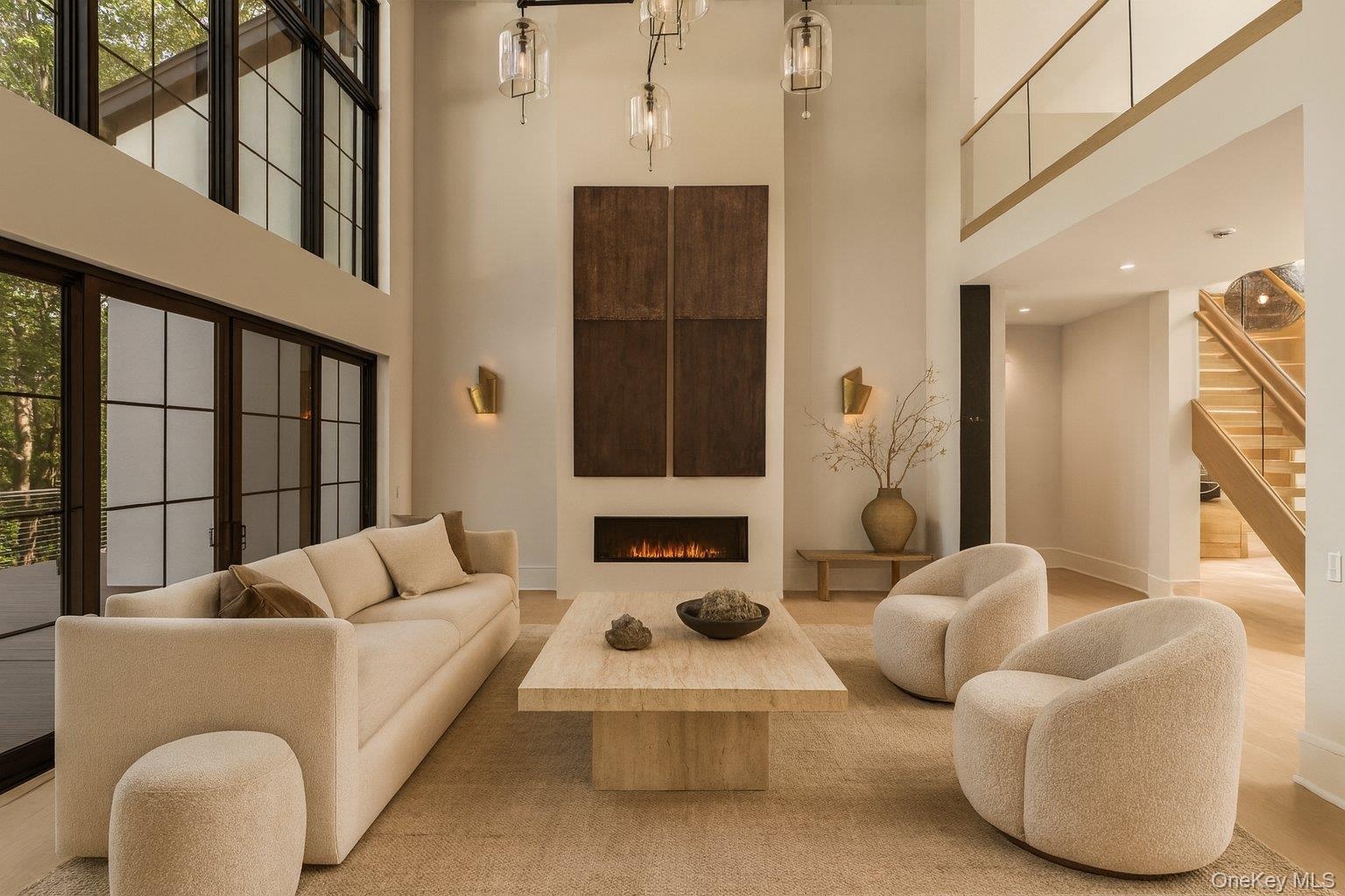 At Linea Terra, design is not decoration, it is devotion. White oak, brass, marble, and travertine are not finishes; they are the foundation. Raw. Real. Eternal. Every element is chosen for its truth, its texture, and its ability to age with grace. From sculptural brass sconces to grounded marble fireplaces, from Tuscan travertine arches to the warmth of white oak beams, this is a home that breathes with you, holding space for stillness, celebration, and renewal. Set on just over an acre in the prestigious Stone Hill gated community of Muttontown, Linea Terra is more than a residence. It is a living composition: rooted in nature, elevated by design, and executed with masterful precision. Inside, soaring ceilings, dramatic floor-to-ceiling windows, and wide-plank oak floors flood each room with natural light and frame lush landscapes. Custom built-ins, imported marbles, and curated European fixtures bring warmth, elegance, and singular character. Two kitchens, a dramatic main chef’s kitchen with Tuscan marble and Wolf, Sub-Zero, and Gaggenau appliances, plus a full secondary prep kitchen, make entertaining effortless. The meditation room, crowned with a constellation ceiling, symbolizes the interconnectedness of all things, inviting the mind to expand beyond stillness. The library, clad in white oak and anchored by a sculptural black marble fireplace, is a luminous retreat enhanced by Apparatus and Moooi lighting. Outdoors, a private resort-like setting unfolds with an infinity-edge pool, sunken firepit lounge, and expansive terraces designed for both intimate mornings and grand gatherings. Linea Terra is not simply built. It is composed. A sanctuary timeless, grounding, and alive. *Total 9k SF includes above grade unfinished lower level