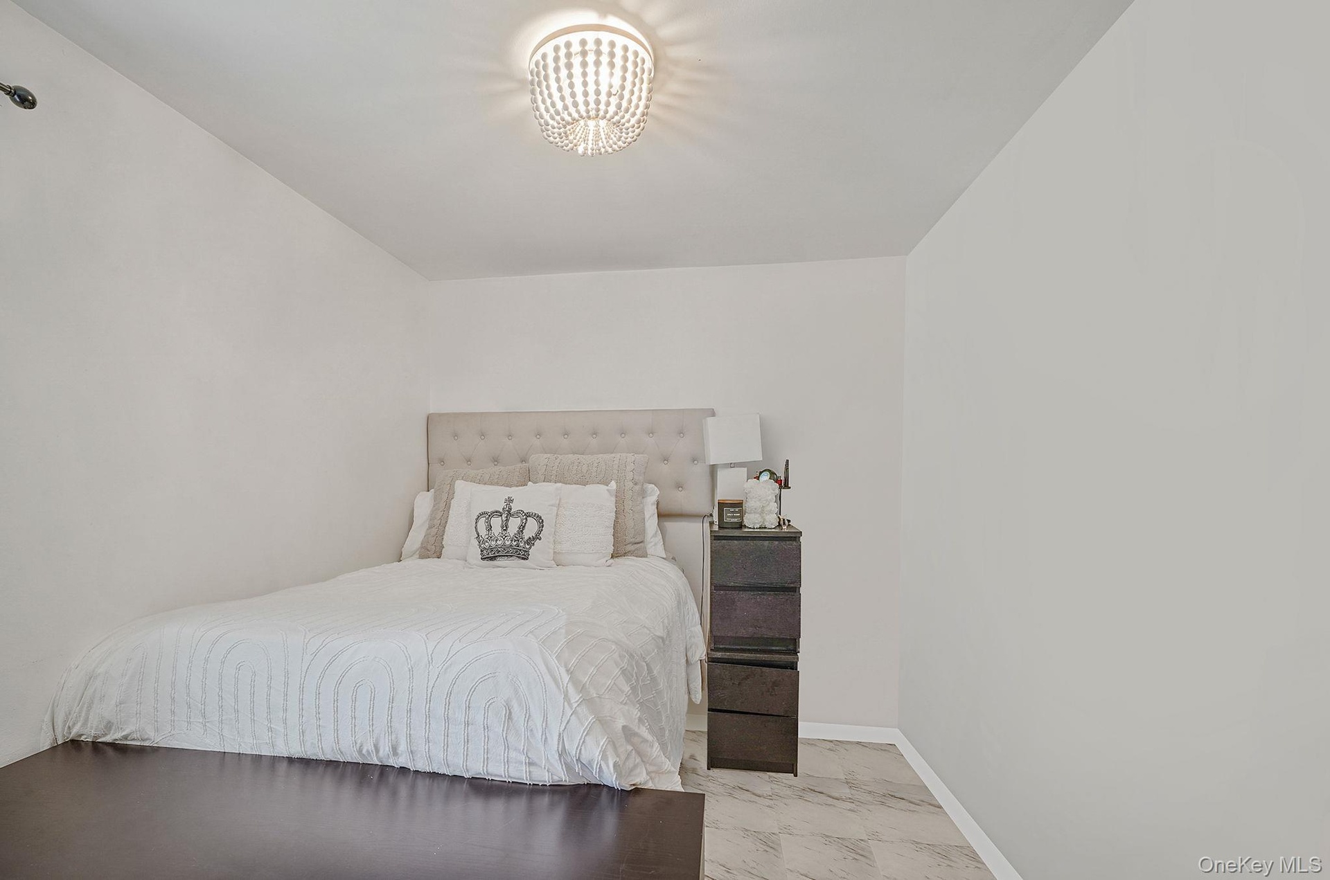 - Bedroom with wood finished floors, a baseboard heating unit, and recessed lighting