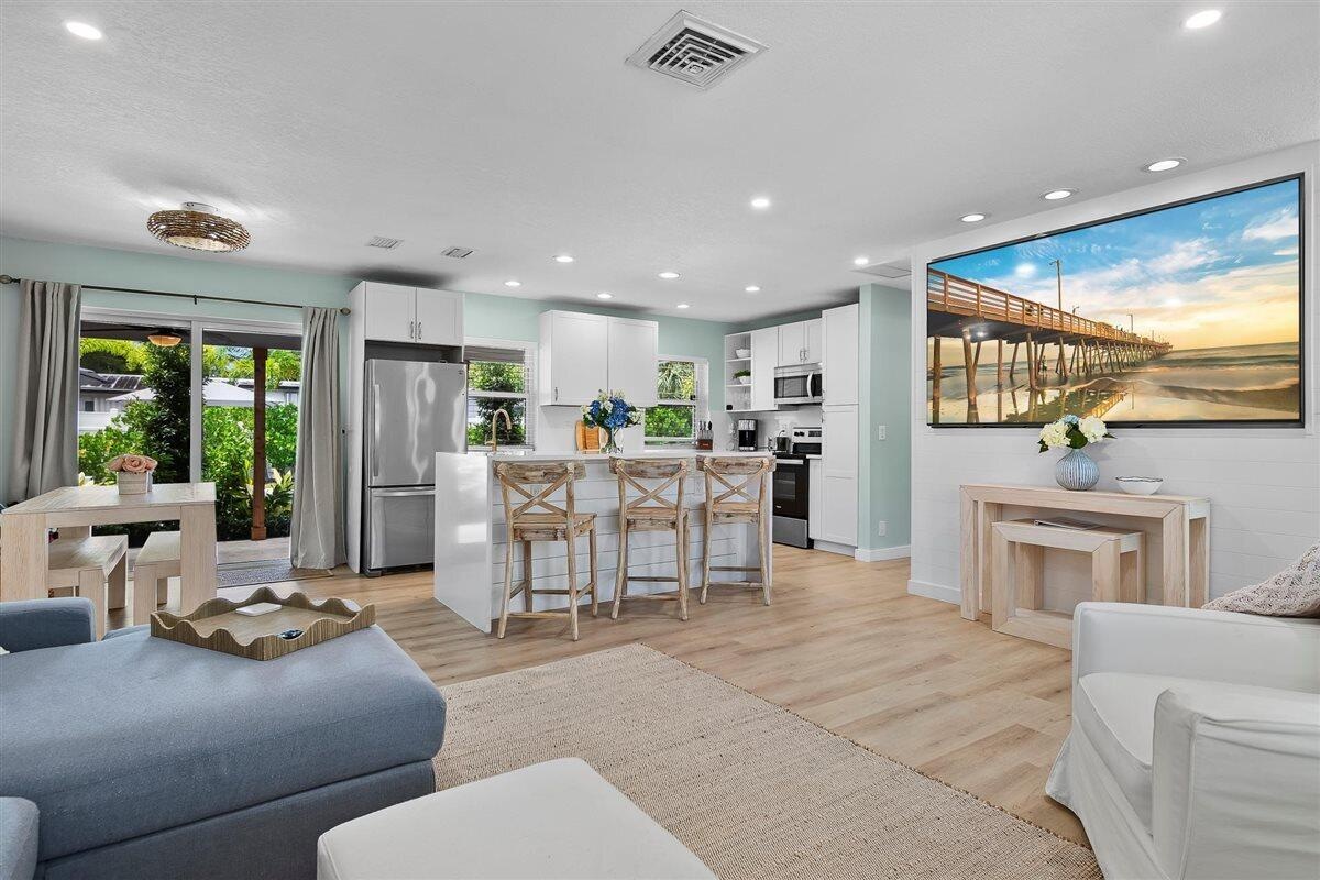 Season Rental - Available December 1, 2025 to March 31, 2026 Escape the cold and embrace the sun-drenched lifestyle of Jupiter, Florida where winter means warm breezes, clear skies, and endless outdoor adventure. This beautifully renovated 3-bedroom, 2-bath single-family home offers the ideal seasonal getaway, combining modern luxury with laid-back coastal charm in one of South Florida's most coveted destinations. Inside, the home welcomes you with an airy, open-concept design bathed in natural light. A stunning, fully updated kitchen features quartz countertops, stainless steel appliances, and ample space for casual mornings or festive holiday dinners. The spacious living and dining areas flow effortlessly into a lush, private backyard oasis, making indoor-outdoor living effortless.