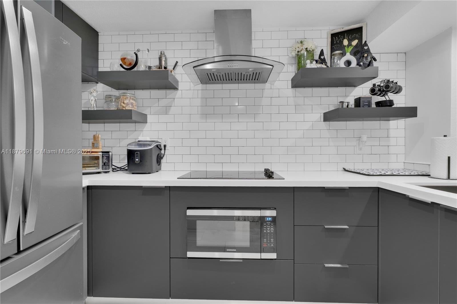 Welcome to Puerta Del Sol! This updated two-story condo features a brand-new kitchen with quartz counters and subway tile backsplash, plus hurricane impact windows & doors throughout. The main level offers ceramic tile floors, while upstairs boasts modern LVP flooring. Enjoy 1.5 baths, in-unit washer & dryer, and two private balconies for outdoor living. The community provides convenience with one assigned parking space plus visitor decal and water included in the HOA. A perfect blend of comfort and style in a desirable location!