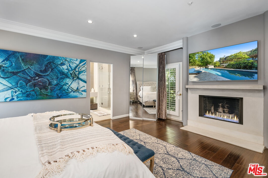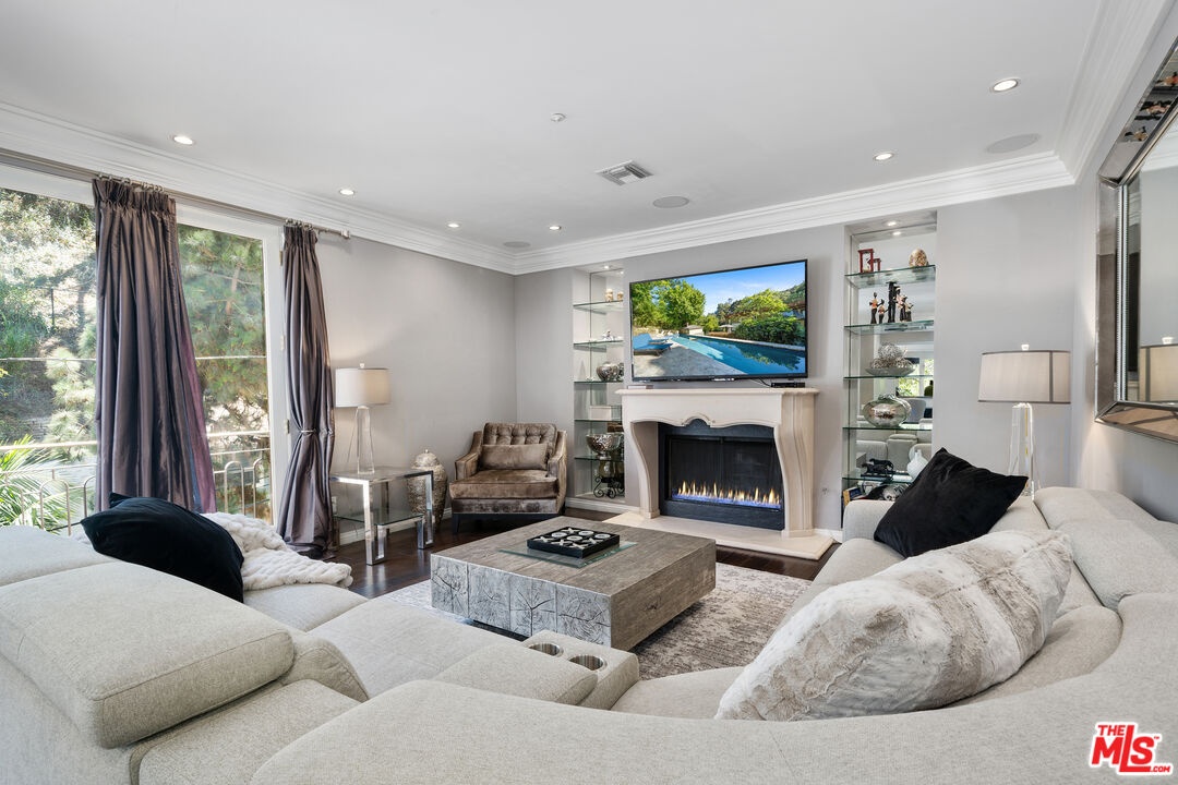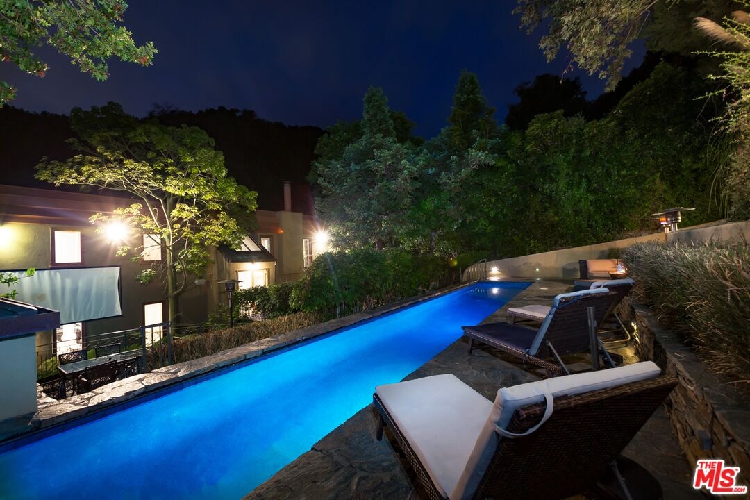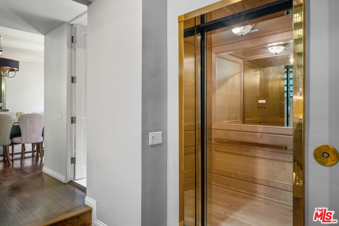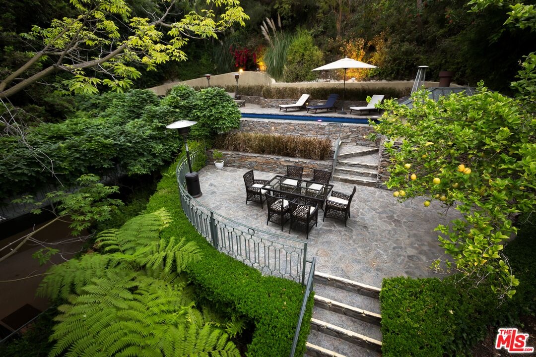 Tucked away in the prestigious hills of Beverly Hills, this private hillside retreat embodies refined luxury and timeless sophistication. Surrounded by lush greenery in the coveted Benedict Canyon area, this elegant estate offers a serene escape just minutes from world-class shopping, dining, and entertainment.Step inside to discover grand living spaces filled with natural light, highlighted by a stately limestone fireplace, a formal dining room perfect for entertaining, and a full-service bar. The gourmet kitchen is a chef's dreamequipped with top-tier appliances and designer finishes. Glide between levels in the striking golden elevator, adding a touch of glamour to everyday living.The primary suite is a sanctuary of comfort, featuring a cozy fireplace, expansive walk-in closet, and a spa-inspired bathroom with luxurious finishes. Outdoor living is equally exceptional relax by the heated pool surrounded by mature landscaping and manicured gardens, creating the perfect backdrop for quiet mornings or evening gatherings.This home is also outfitted with a premium surround sound system throughout, ensuring the ambiance matches your every mood. Ideal for high-profile buyers seeking privacy, tranquility, and elegance in one of L.A.'s most sought-after neighborhoods.