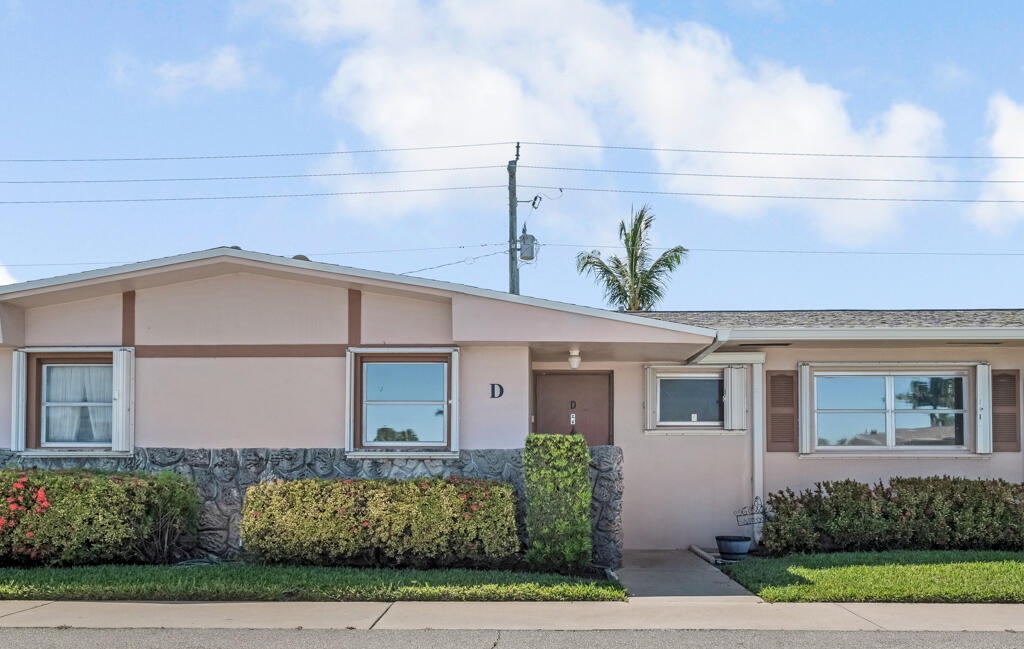 Affordable, well priced, cozy 2-bedroom, 1-bathroom home featuring tile flooring throughout and a open backyard with a peaceful canal view. Enjoy the convenience of hurricane shutters, plenty of storage, and a dedicated parking spot just steps from your front door. The low monthly condo fee covers water, lawn care, cable, and internet. Located in the desirable 55+ community of Dudley, residents enjoy access to a clubhouse, pool, sauna, fitness center, auditorium, shuffleboard and horseshoe courts, billiards room, workshop, and a full calendar of activities. Perfectly situated in the heart of Palm Beach County--just minutes from shopping, dining, entertainment, and Palm Beach International Airport.