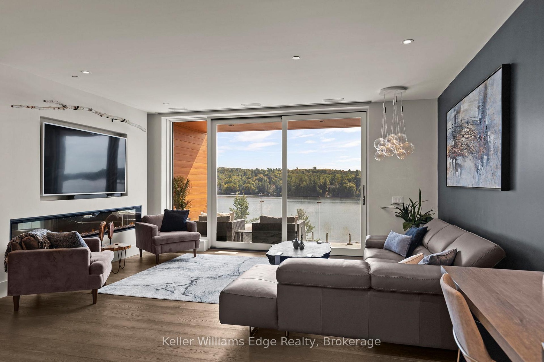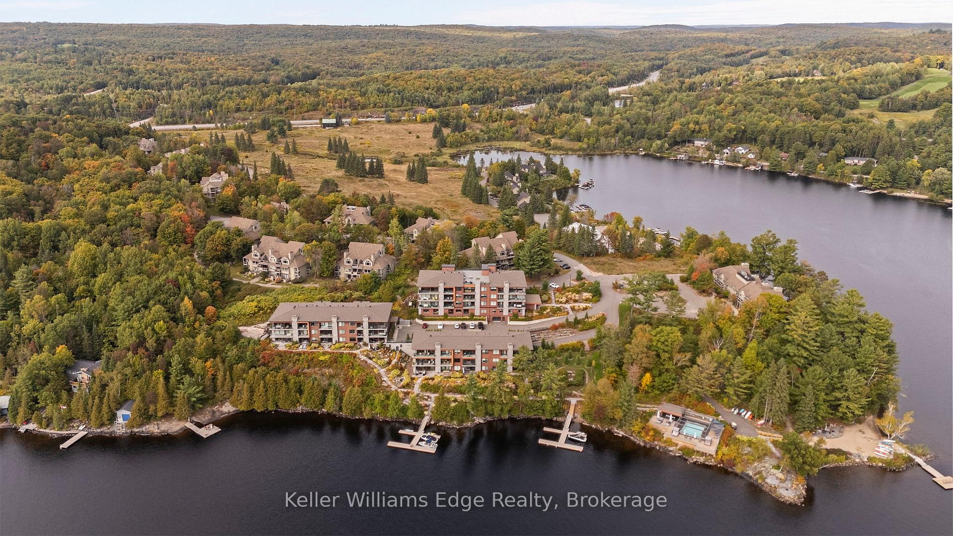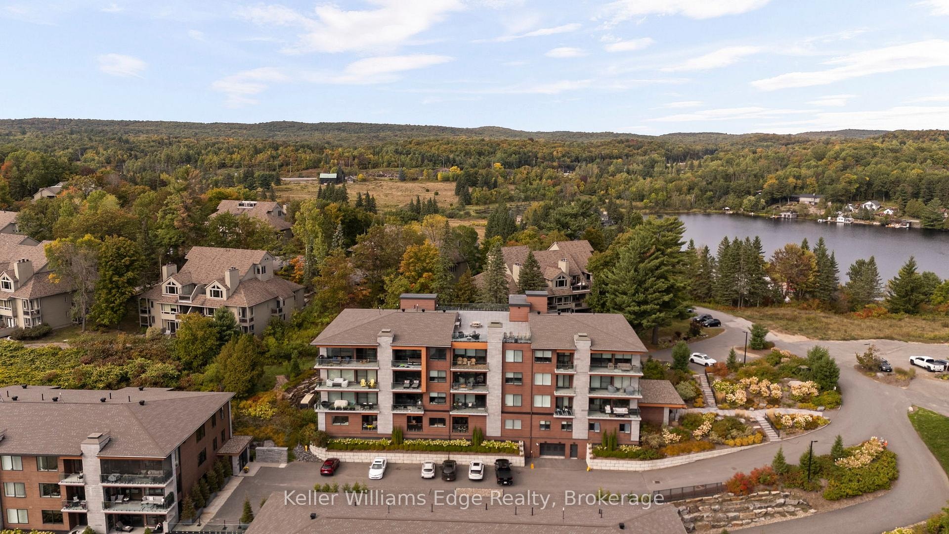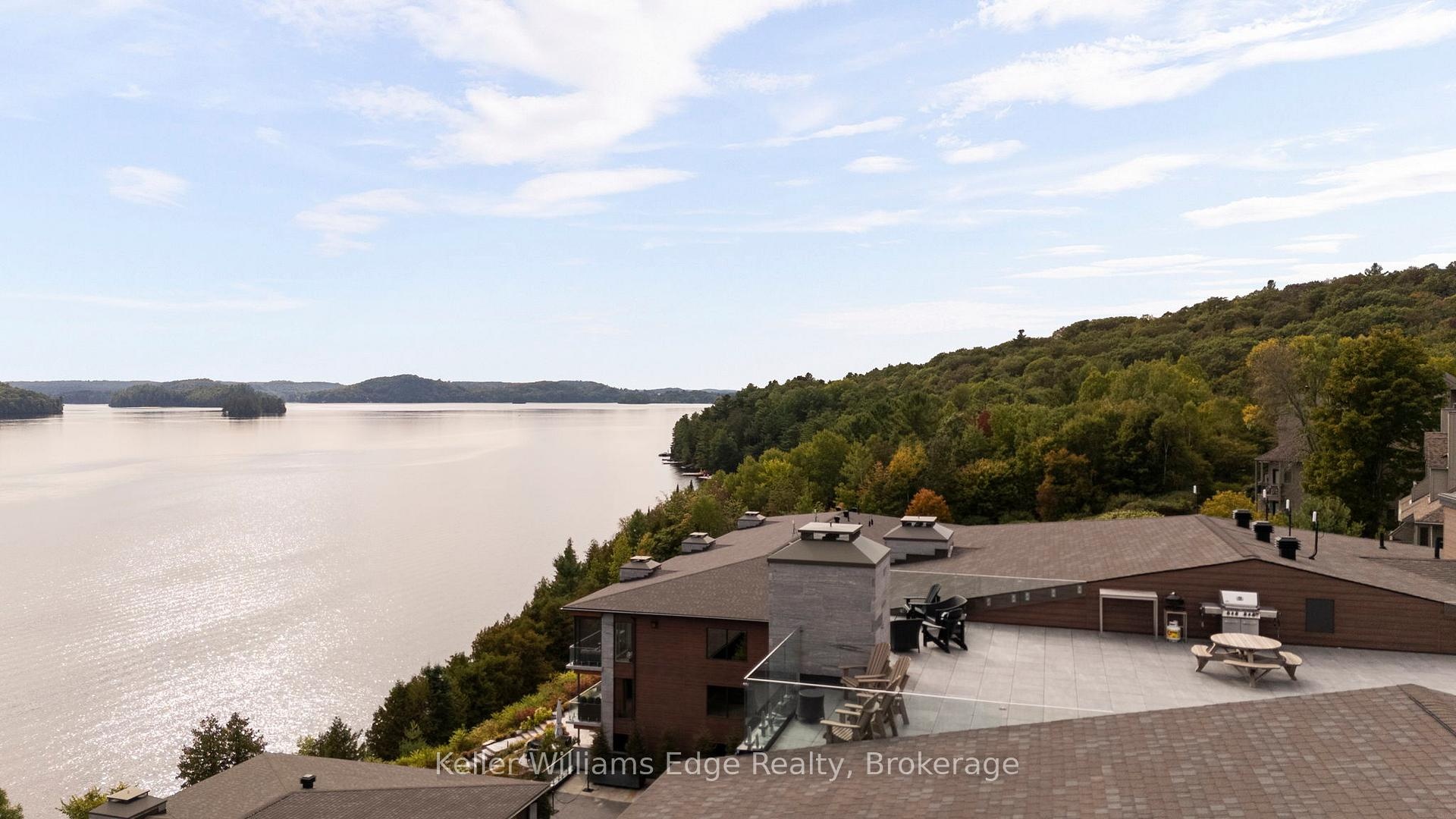 Welcome to the exclusive 'Waterfront at Grandview' residences on Fairy Lake. Enjoy lakefront panoramic views from your private balcony, from inside the spacious and well laid out space, or enjoyed with friends and family from the exclusive rooftop patio. The exterior private amenities of this residence include a stunning infinity pool and patio with kitchen. Walk the well manicured grounds and you can enjoy your private lakefront sand beach access, lakeside fit pit, waterfront dock as well as private boat slips*. Inside the residence you'll have access to a gym, party room and use of a rental guest suite*. (*Subject to availability. See prop. mngr. for details) The condo itself has an excellent open floorplan with ample built in custom cabinetry. Modern design elements perfectly merge with the natural rustic surroundings. The large floor to ceiling windows in the main living area allow unimpeded views of the surrounding natural beauty. A BBQ with venting and lighting are built into your exclusive balcony without taking up valuable lounging space. Underground parking is equipped with an EV charger along with a large storage unit. Enjoy all that lakefront cottage country living has to offer without the hassle of maintaining a cottage!