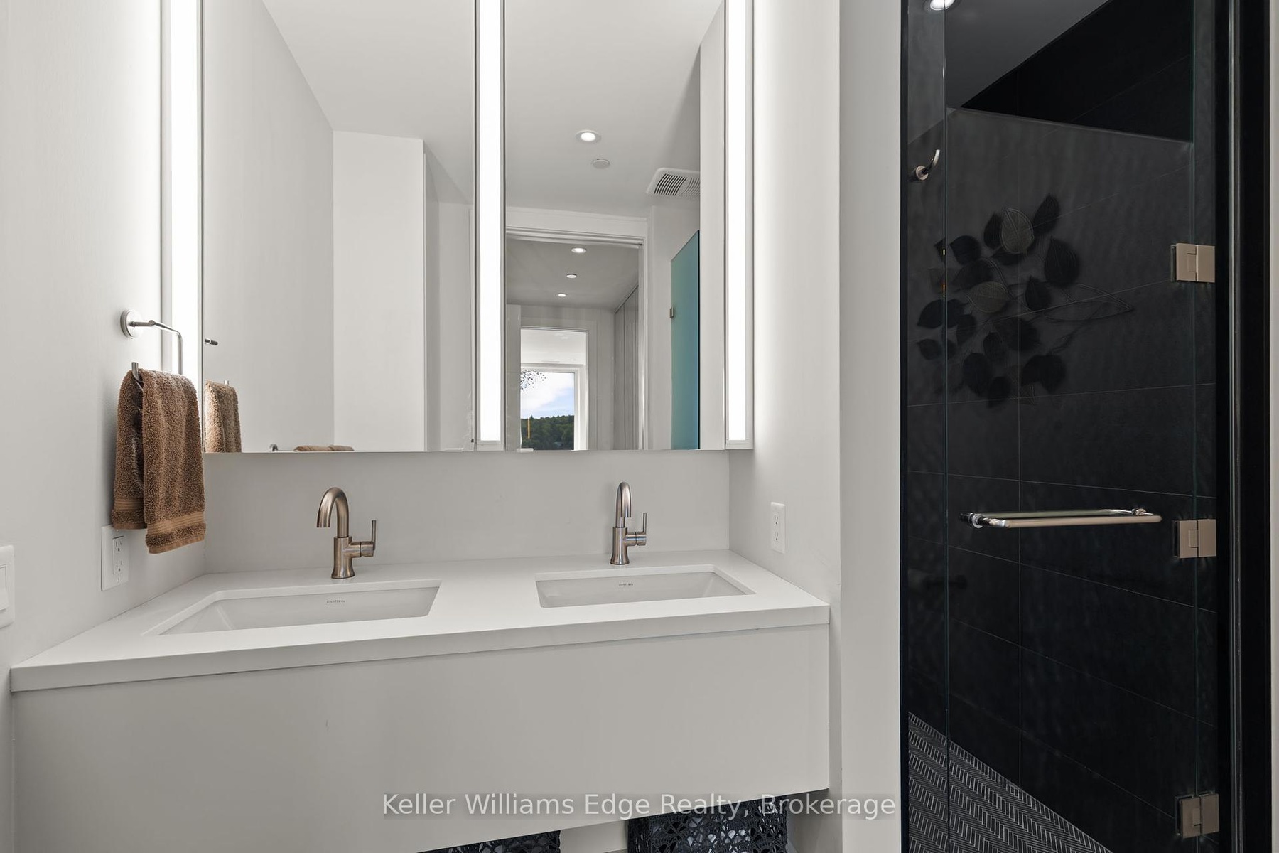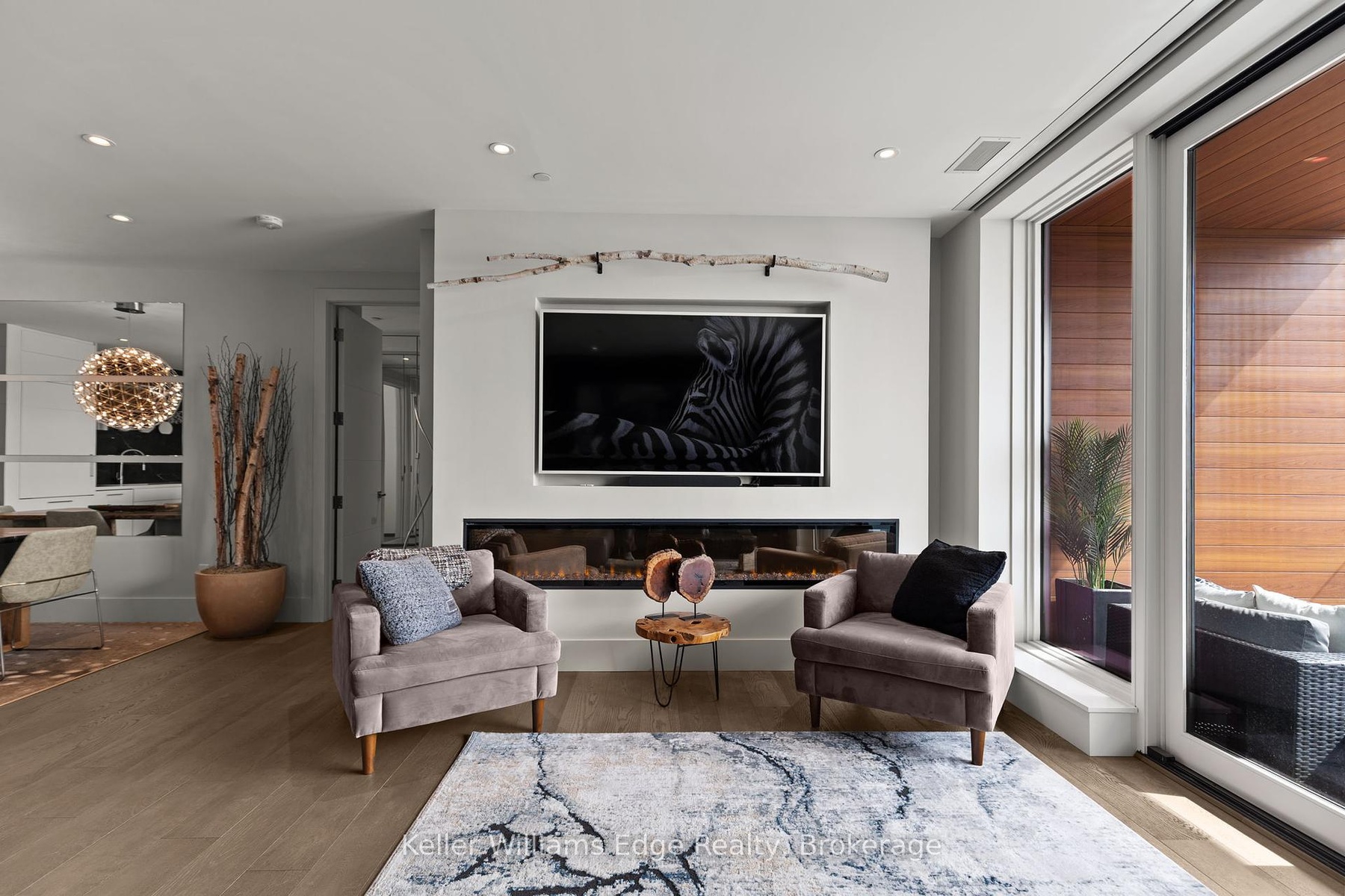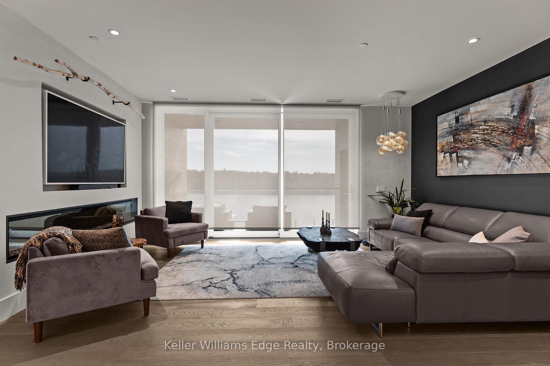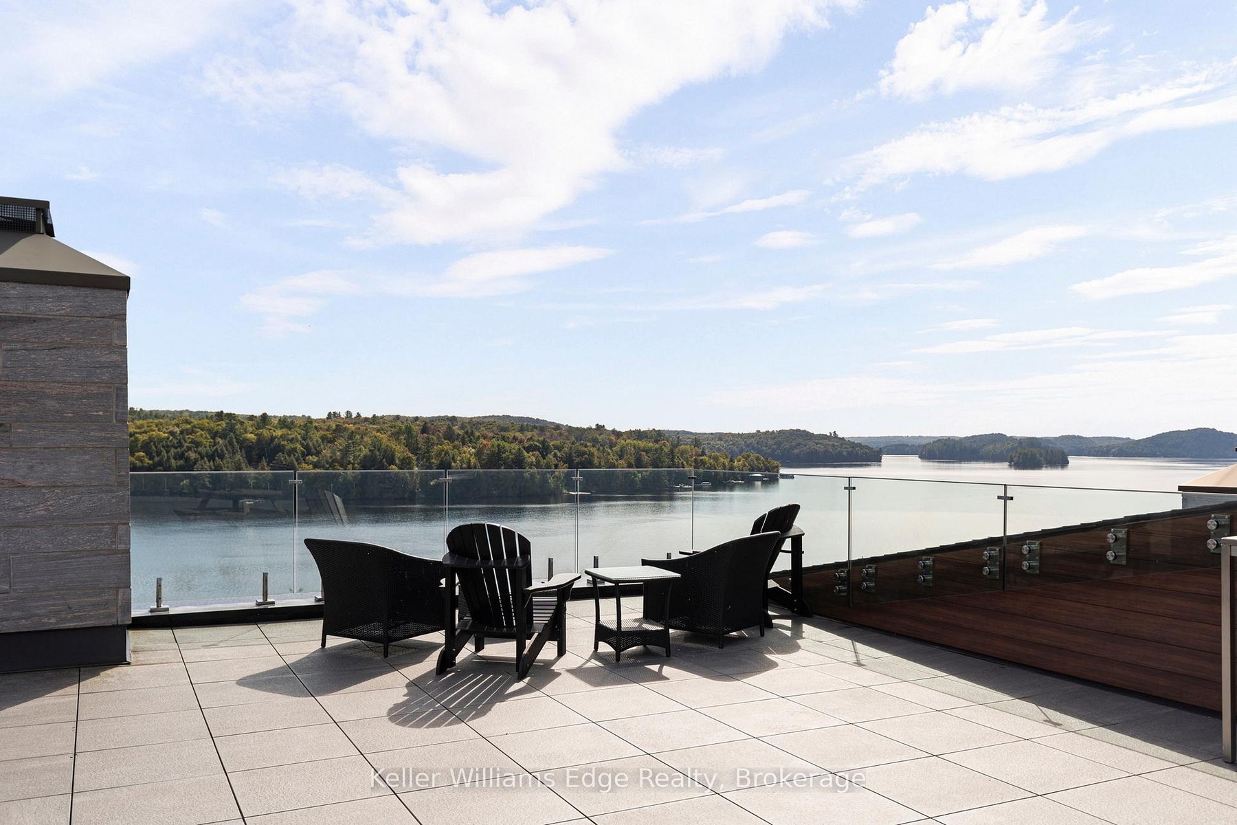 Welcome to the exclusive 'Waterfront at Grandview' residences on Fairy Lake. Enjoy lakefront panoramic views from your private balcony, from inside the spacious and well laid out space, or enjoyed with friends and family from the exclusive rooftop patio. The exterior private amenities of this residence include a stunning infinity pool and patio with kitchen. Walk the well manicured grounds and you can enjoy your private lakefront sand beach access, lakeside fit pit, waterfront dock as well as private boat slips*. Inside the residence you'll have access to a gym, party room and use of a rental guest suite*. (*Subject to availability. See prop. mngr. for details) The condo itself has an excellent open floorplan with ample built in custom cabinetry. Modern design elements perfectly merge with the natural rustic surroundings. The large floor to ceiling windows in the main living area allow unimpeded views of the surrounding natural beauty. A BBQ with venting and lighting are built into your exclusive balcony without taking up valuable lounging space. Underground parking is equipped with an EV charger along with a large storage unit. Enjoy all that lakefront cottage country living has to offer without the hassle of maintaining a cottage!