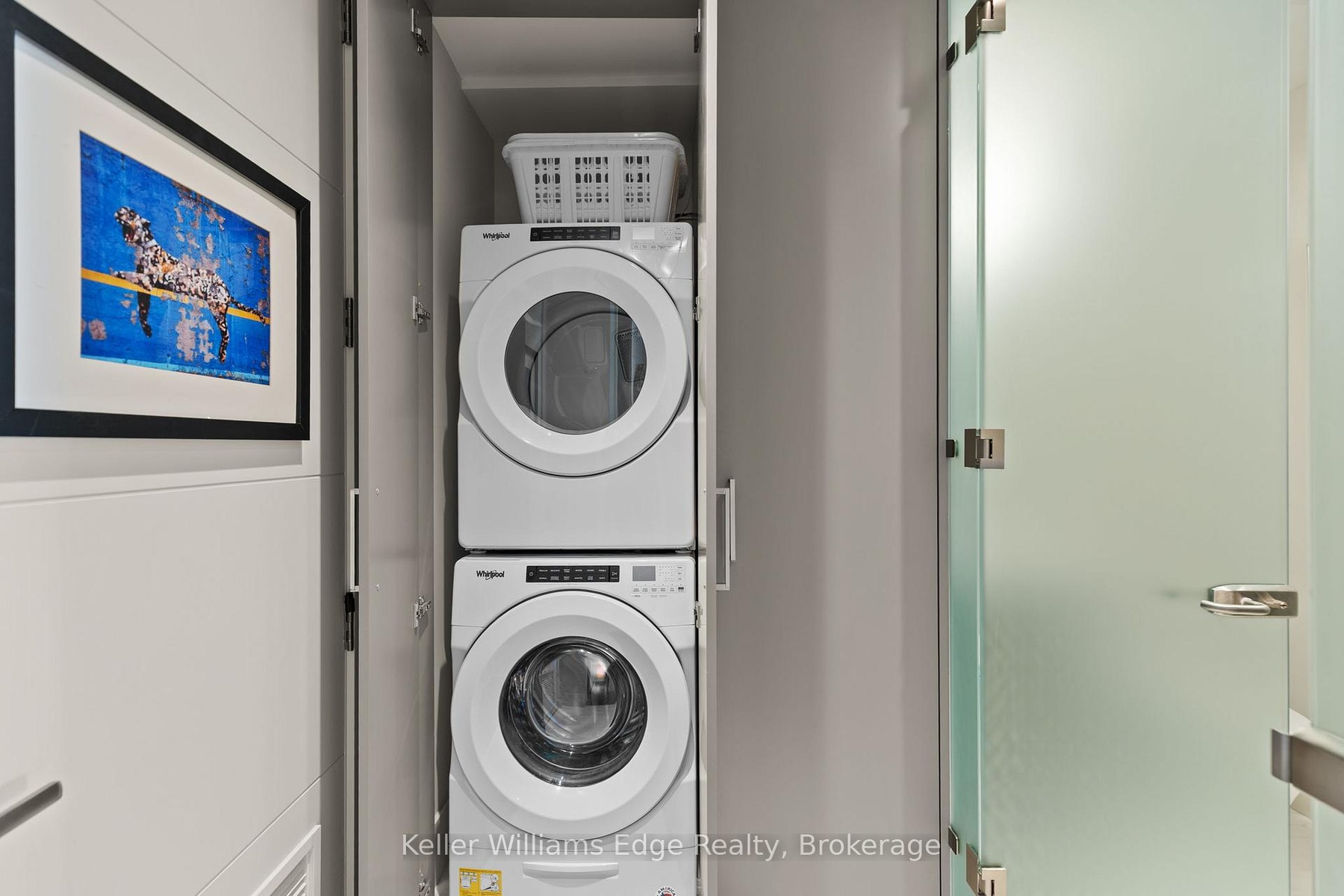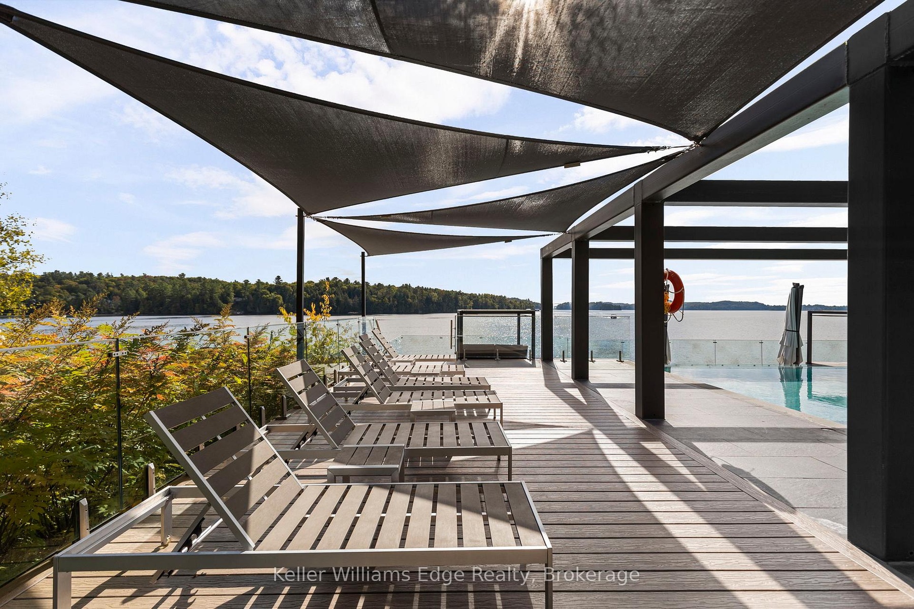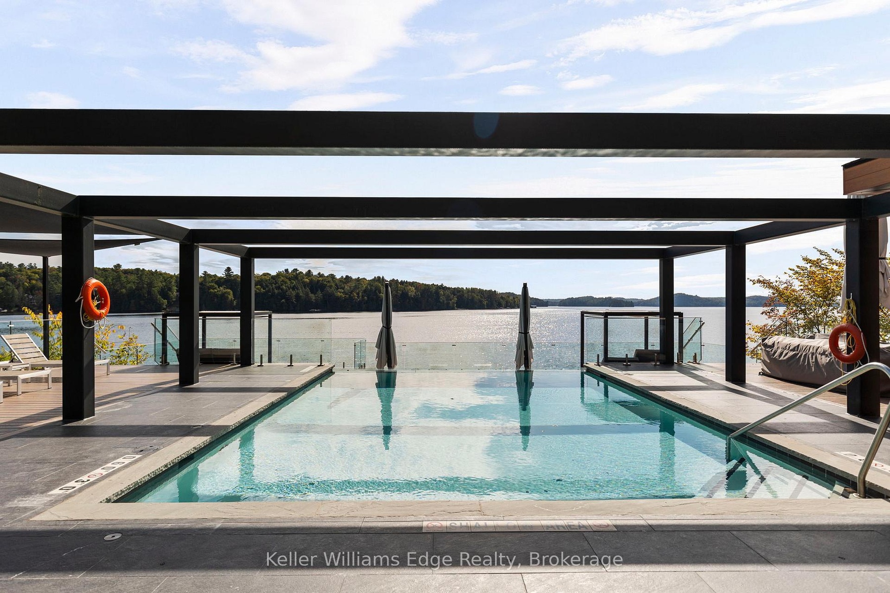 DescriptionWelcome to the exclusive 'Waterfront at Grandview' residences on Fairy Lake. Enjoy lakefront panoramic views from your private balcony, from inside the spacious and well laid out space, or enjoyed with friends and family from the exclusive rooftop patio. The exterior private amenities of this residence include a stunning infinity pool and patio with kitchen. Walk the well manicured grounds and you can enjoy your private lakefront sand beach access, lakeside fit pit, waterfront dock as well as private boat slips*. Inside the residence you'll have access to a gym, party room and use of a rental guest suite*. (*Subject to availability. See prop. mngr. for details) The condo itself has an excellent open floorplan with ample built in custom cabinetry. Modern design elements perfectly merge with the natural rustic surroundings. The large floor to ceiling windows in the main living area allow unimpeded views of the surrounding natural beauty. A BBQ with venting and lighting are built into your exclusive balcony without taking up valuable lounging space. Underground parking is equipped with an EV charger along with a large storage unit. Enjoy all that lakefront cottage country living has to offer without the hassle of maintaining a cottage!Amenities- Alarm system