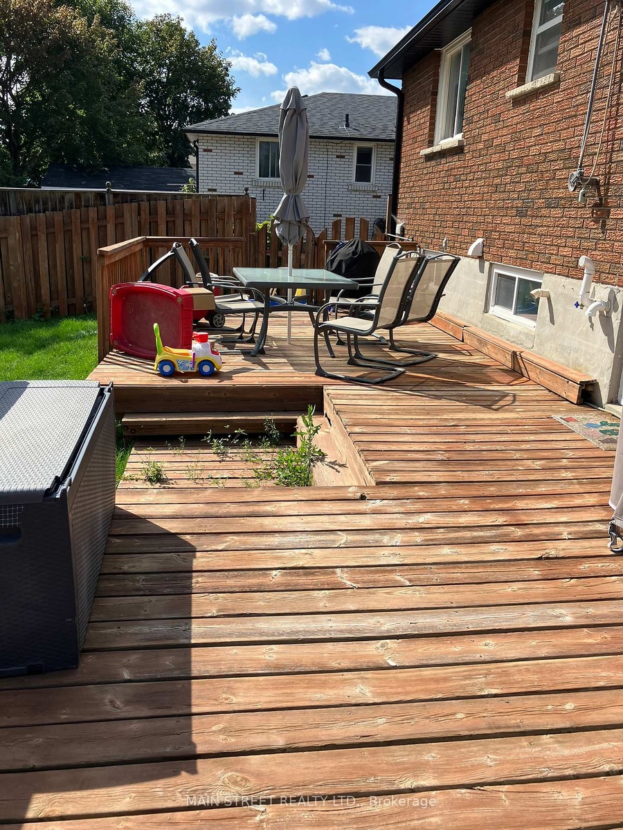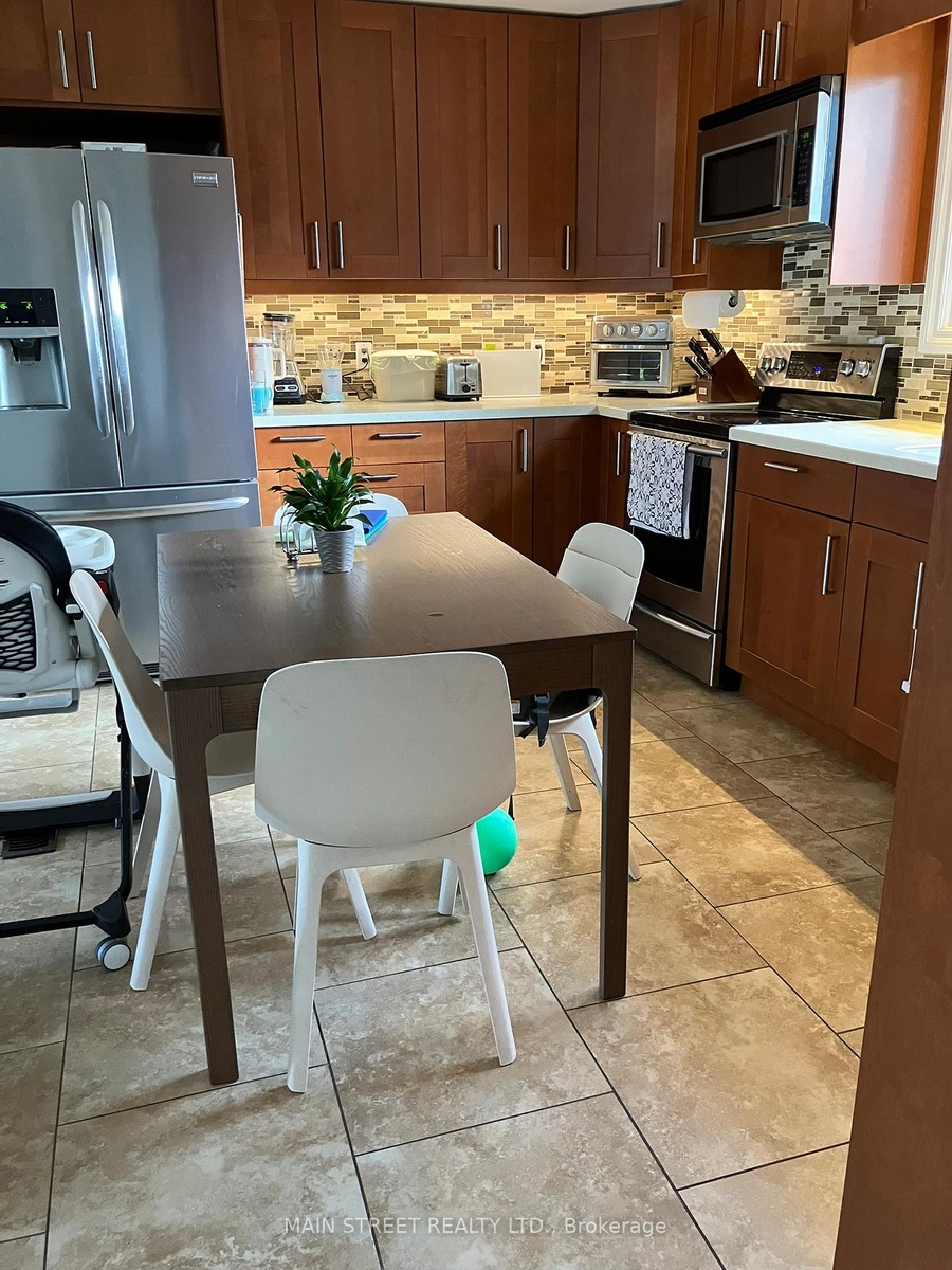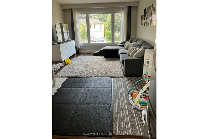 DescriptionRaised Bungalow with lots of light. Spacious & bright 3 bedroom main floor. Well maintained. Kitchen has ceramic floor and ceramic backsplash with updated counters and lots of cupboards. 4 appliances -> SS Fridge, Stove, B/I dishwasher, B/I microwave. Open concept living rm., Dining rm, kitchen. Walkout to raised deck from back entrance. Tandem Parking for 2 cars on driveway. Two entrances Front and back. Laundry is shared and is in garage.Amenities- Carpet Free