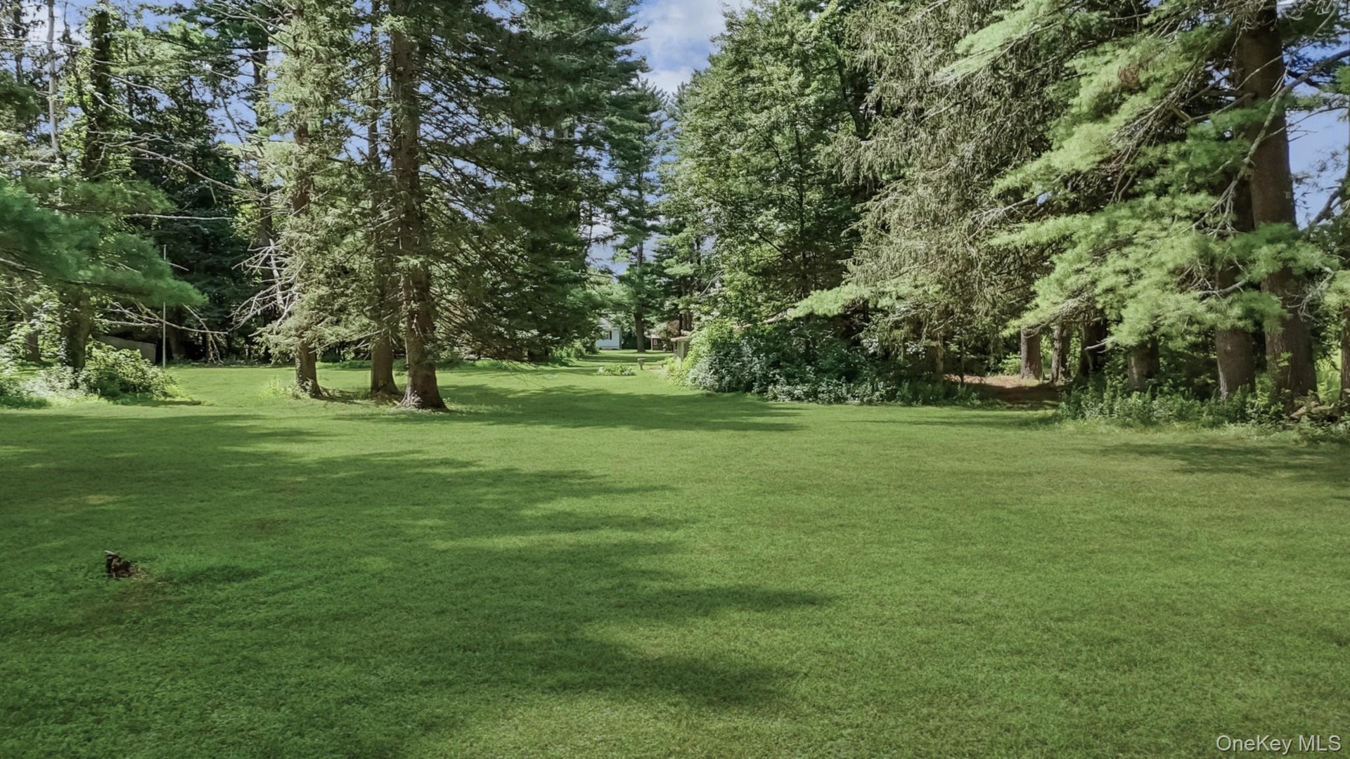 - View of lawn going to Main House drive between Pine trees