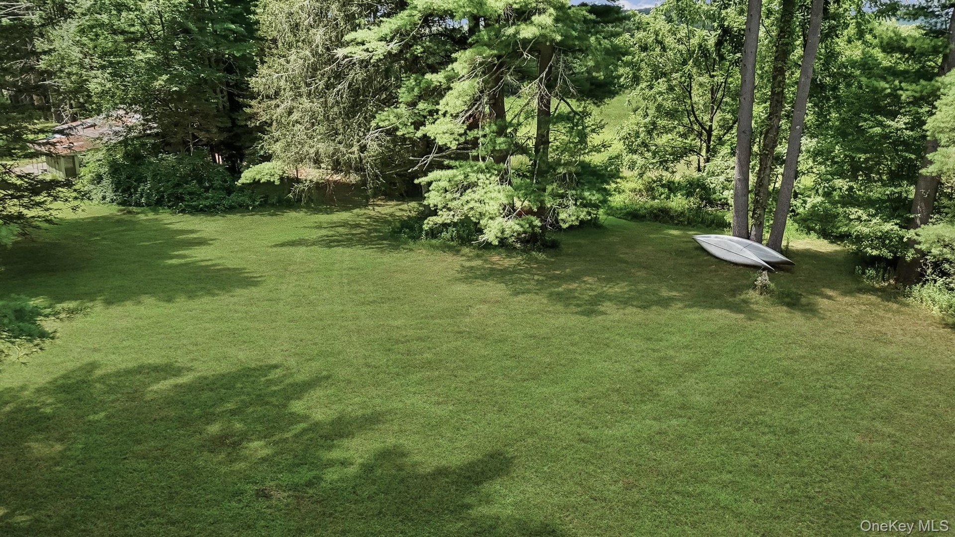 - View of green lawn with view of lightly treed area nice shade toward Main House