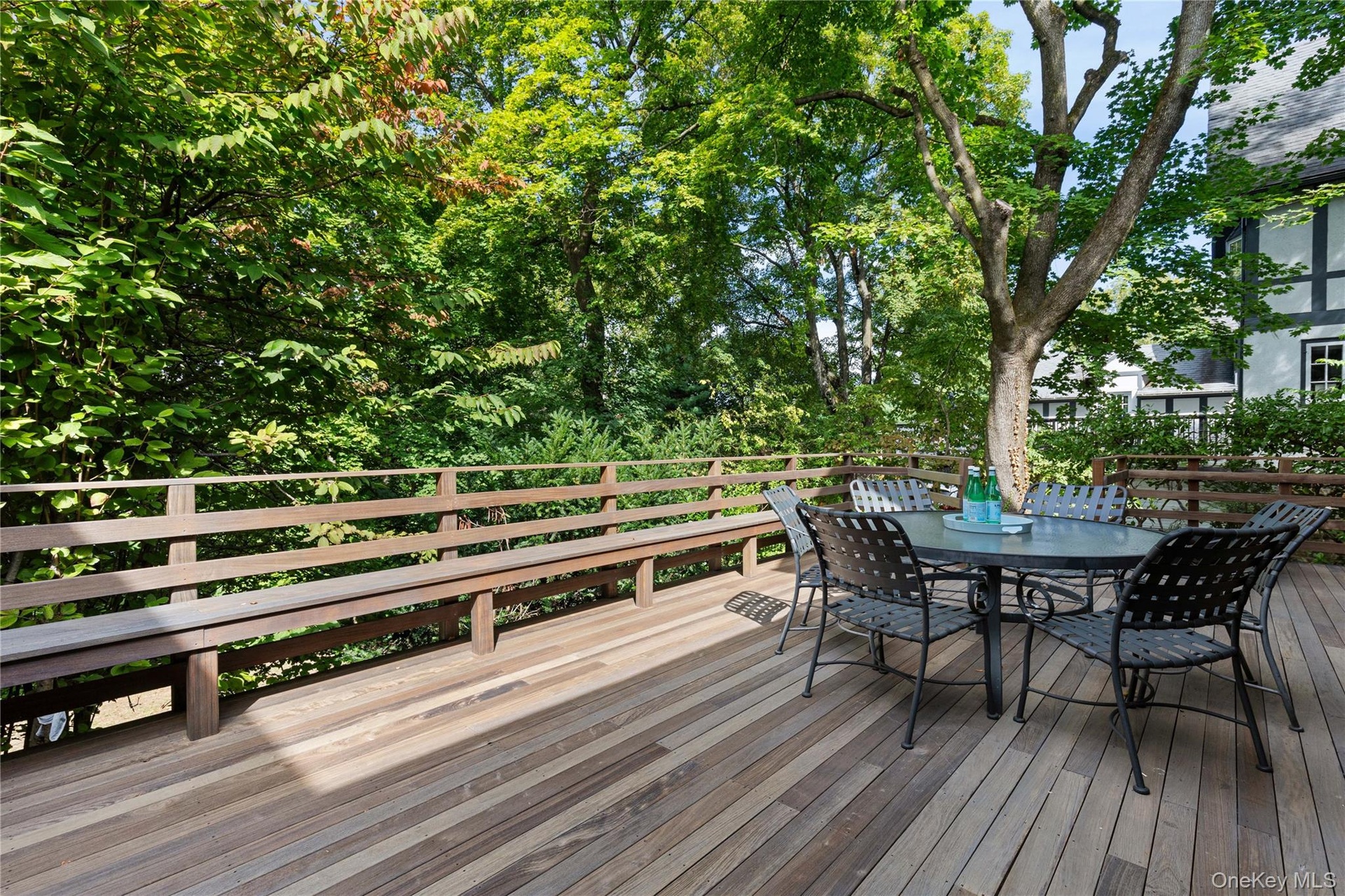- The spacious deck is located off the kitchen and ideal for outdoor dining with view of the private backyard setting.