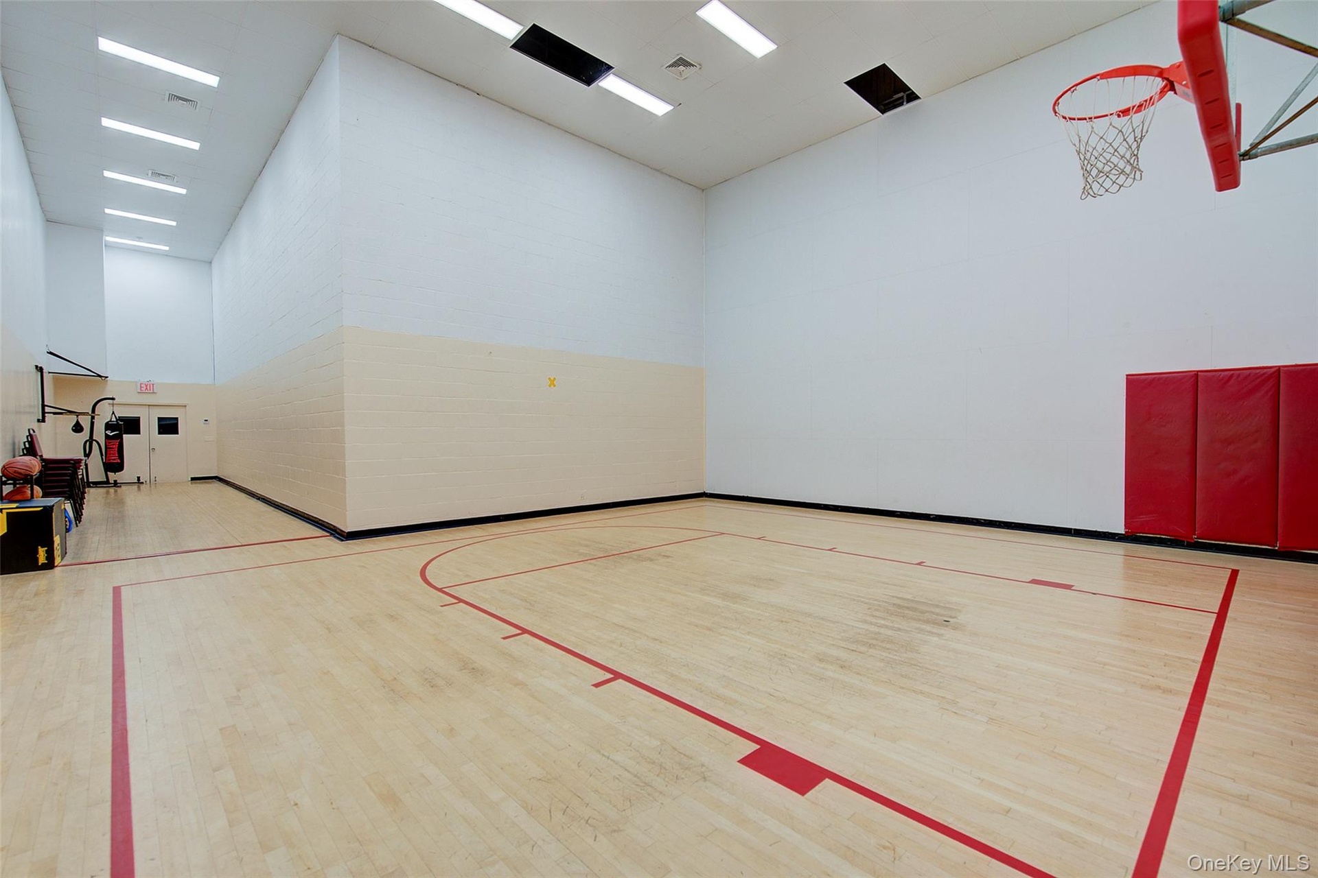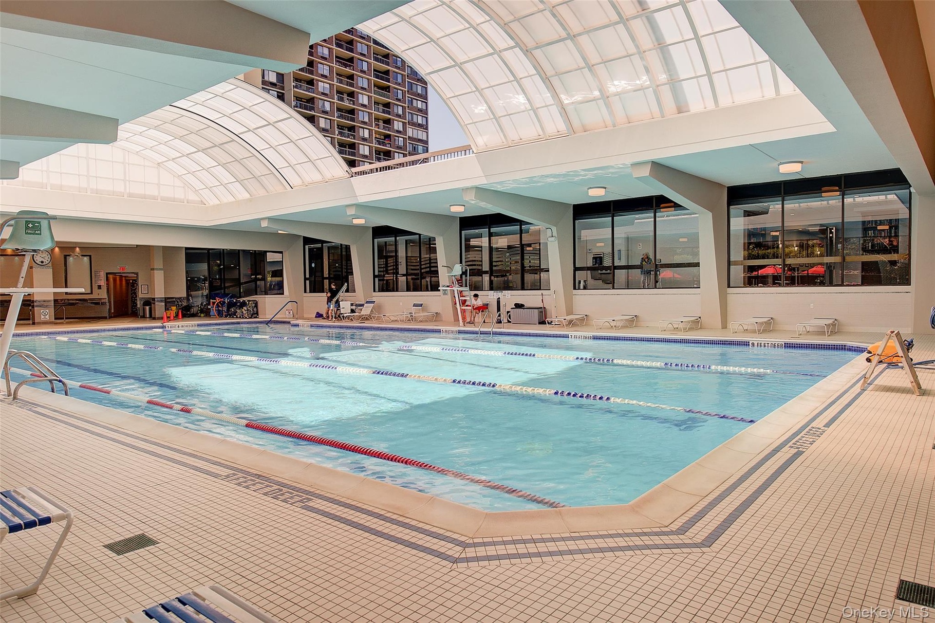 - Building lobby with a high ceiling, stairs, and recessed lighting
