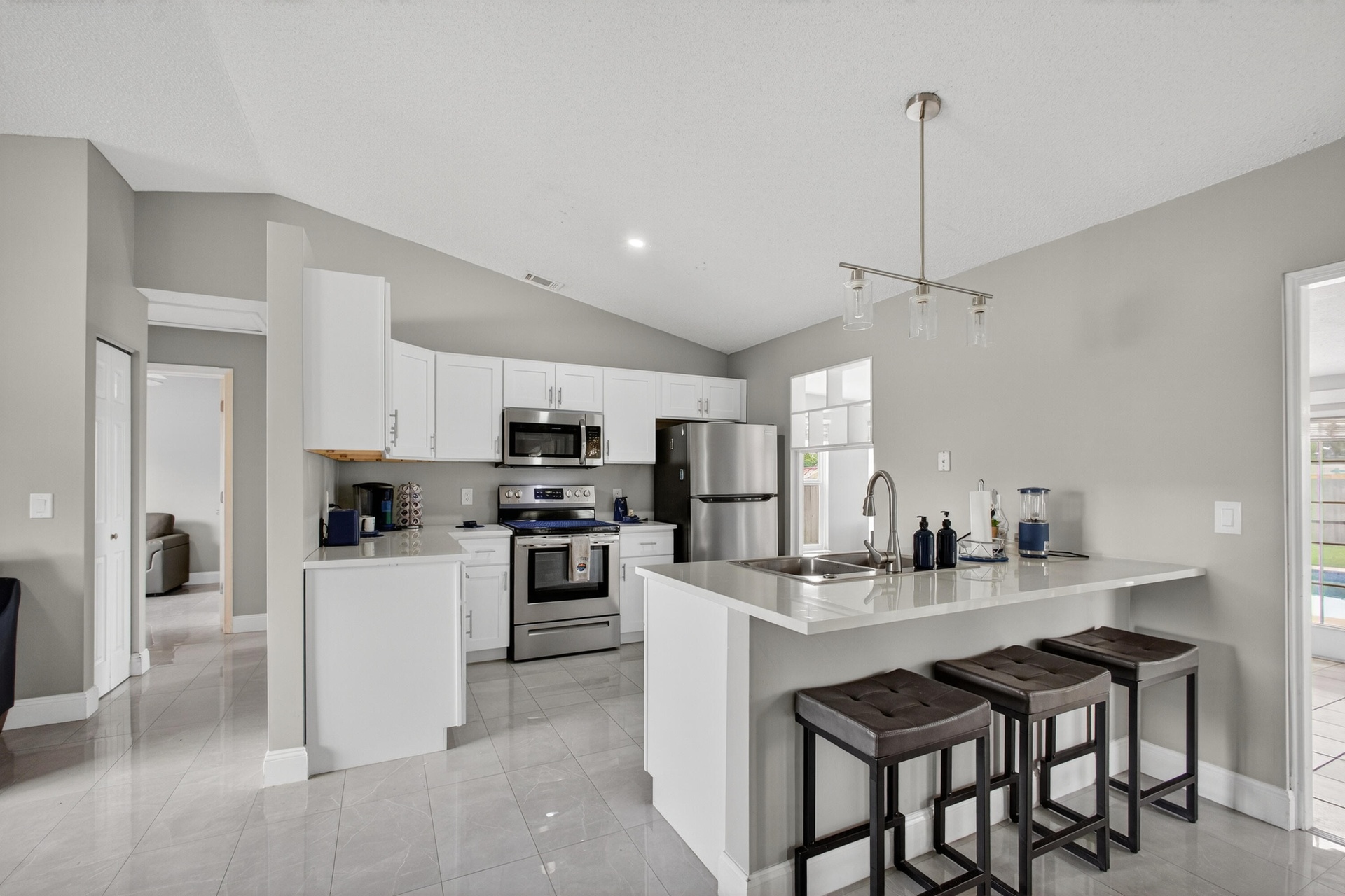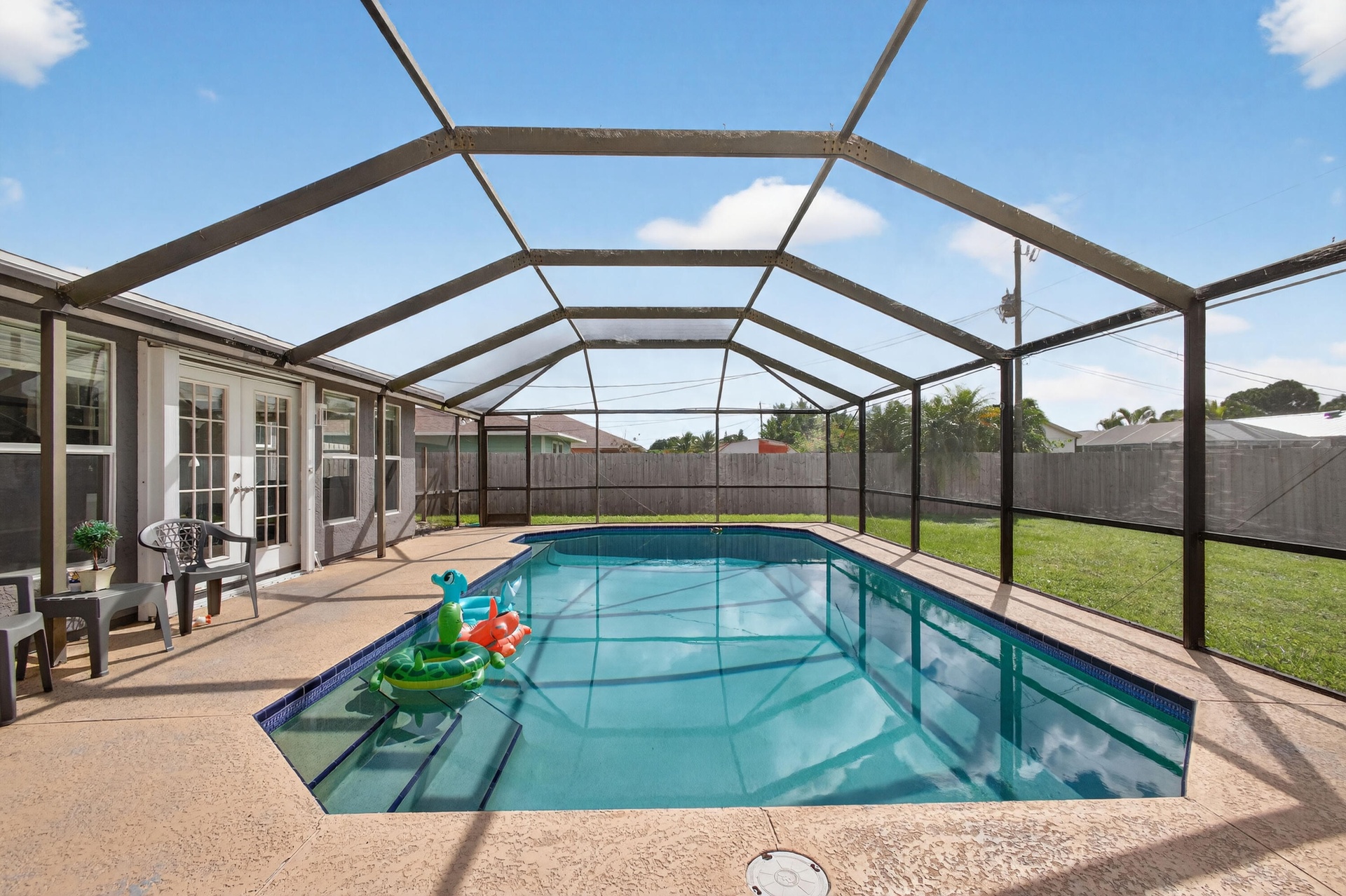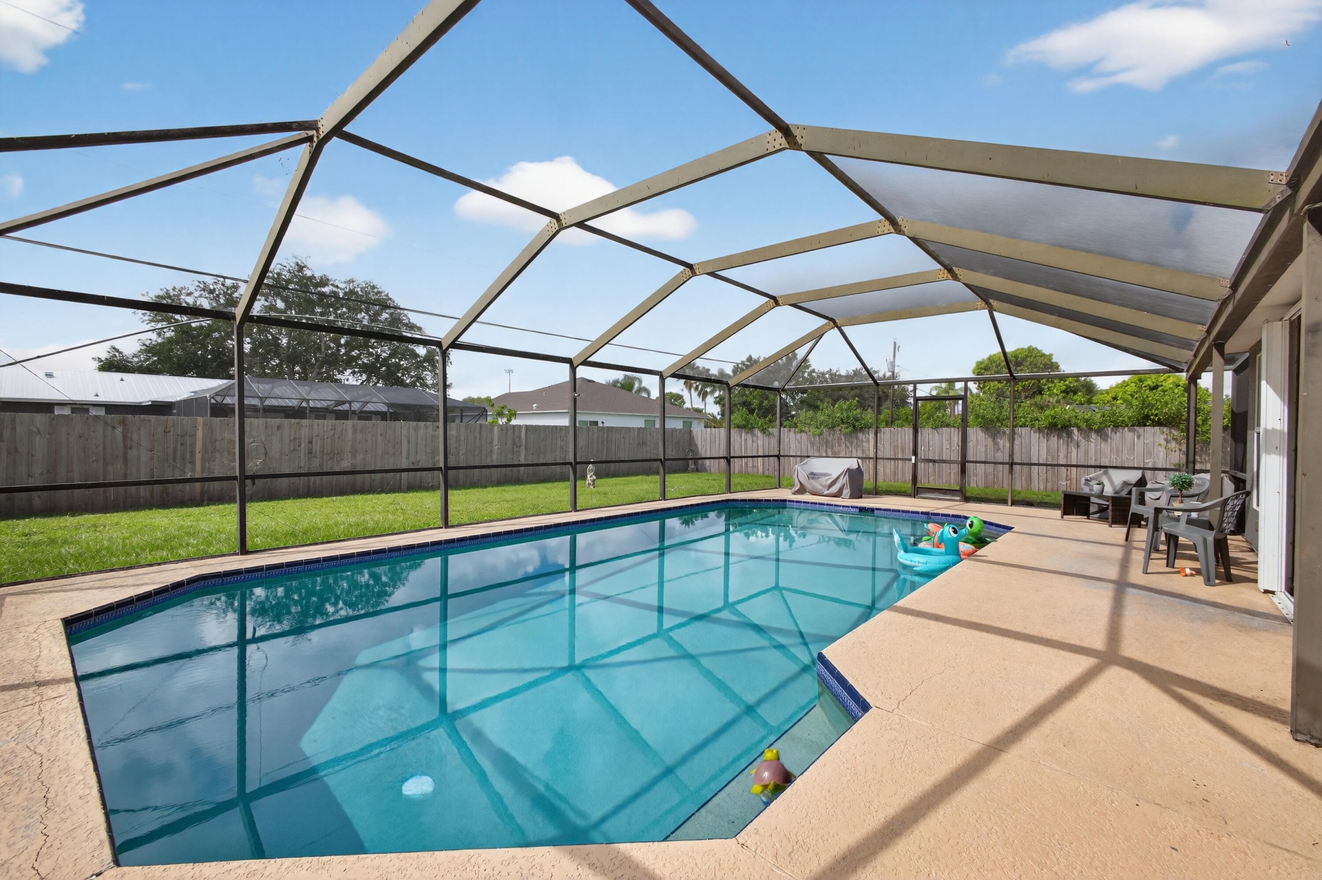 Welcome to this completely updated 3-bedroom, 2-bath FULL impact Glass (doors not included) FUlly Irrigated sprinklers installed on well (will need new irrigation Pump) Brand new Maynard Screen enclosure pool home on a spacious 1/4 acre lot in the heart of Port St. Lucie. The home features an extra-deep pool, a brand-new privacy fence, ideal for kids, pets, boats, RVs, Inside, enjoy a turnkey interior with stylish updates throughout. The kitchen boasts quartz countertops, modern cabinetry, and a bright open layout perfect for entertaining. Both bathrooms have been completley renovated and the split floor plan offers privacy and comfort.
