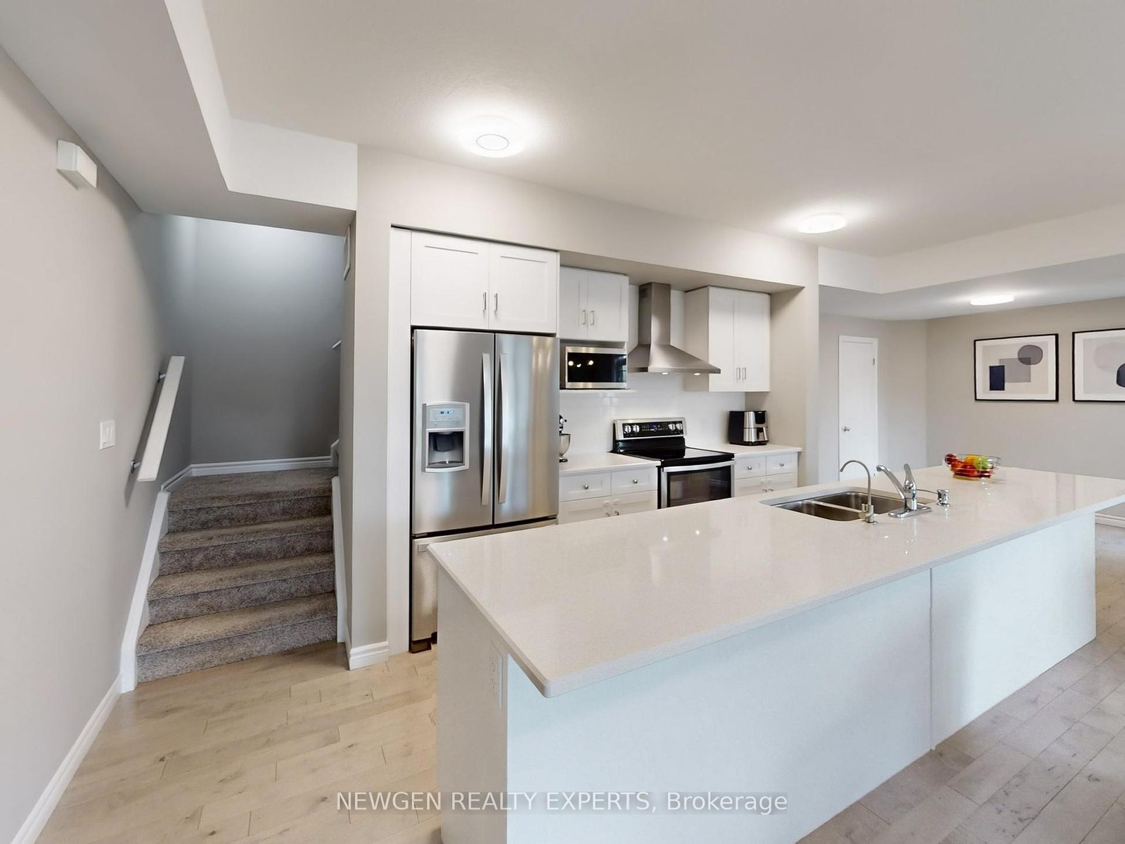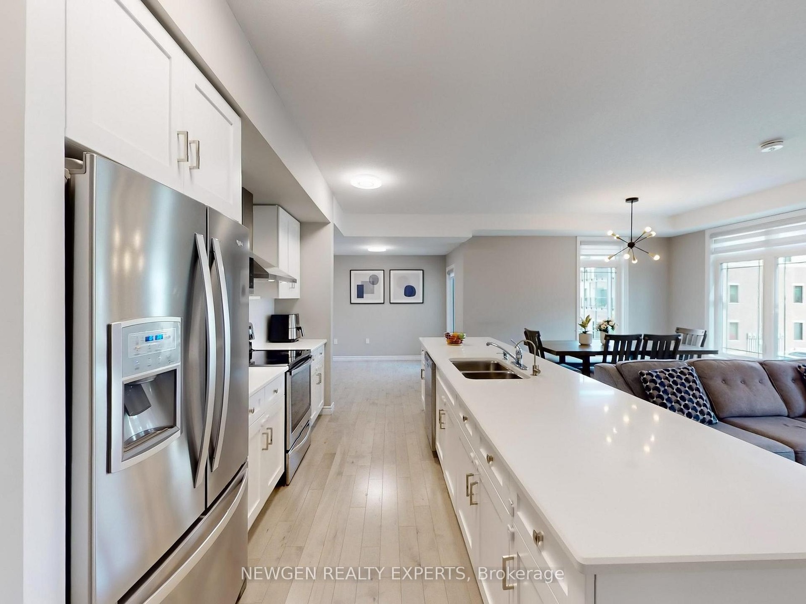 Welcome home to this beautifully upgraded 3 bedroom, 3 bath condo townhome in the peaceful and family-friendly West Willow Woods neighbourhood in Guelph. Built in 2021 with $20,000 worth of upgrades, this unit offers incredible space, functionality, and luxury finishes throughout. Step inside and be greeted by a spacious foyer and a versatile main-floor room that is perfect as a guest suite, home office, or private retreat. With direct garage access and a large mudroom/storage area, everyday convenience is built right in. Upstairs, the open-concept living area features rich hardwood flooring. The chefs kitchen impresses with quartz countertops, ample cabinetry, and a massive island with seating for everyone. Enjoy summer evenings on the private balcony overlooking peaceful farmland, or cozy up in the bright study nook with a good book. The upper level features two spacious bedrooms, each with its own ensuite bathroom. The primary suite also includes a private balcony and walk-in closet. Top it all off with a stunning rooftop terrace offering unobstructed views for your perfect spot to unwind or host friends under the stars. Your new home is close to shopping, schools, parks, and all amenities, this home truly has it all. Don't miss your chance to make this your new family home!