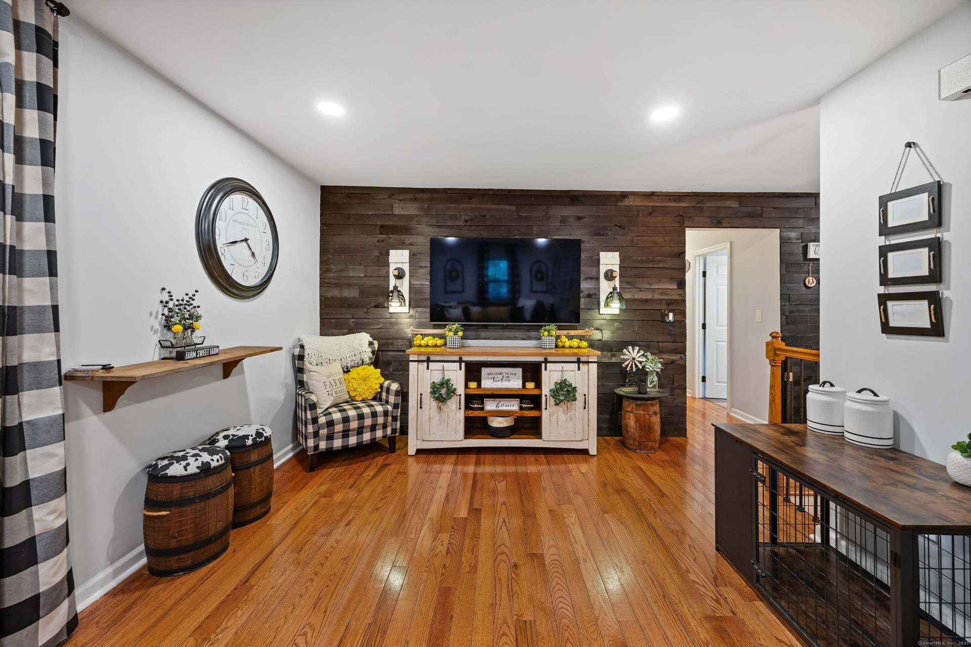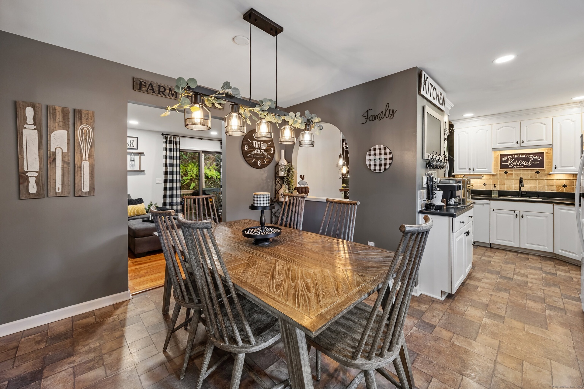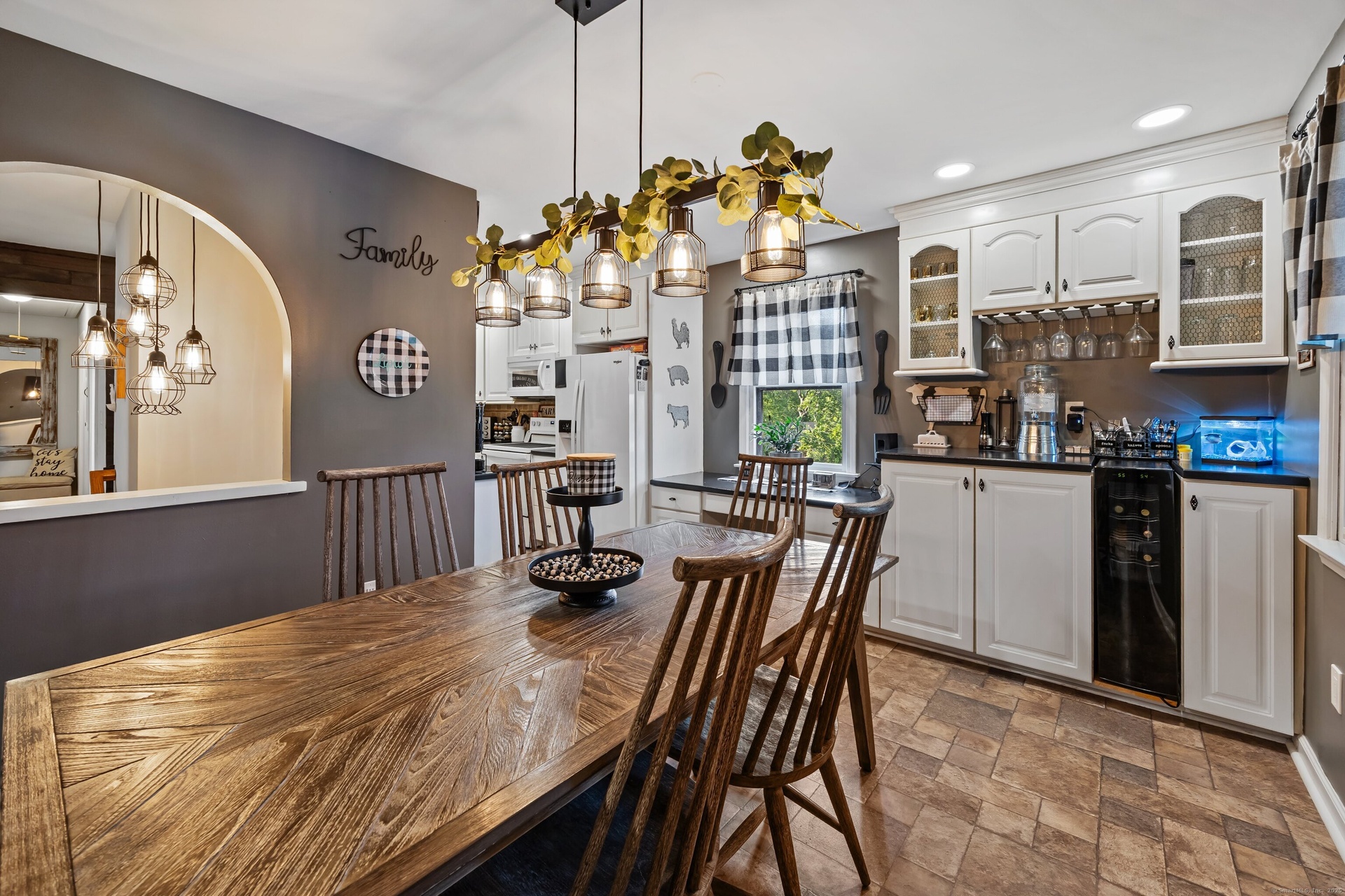 This gorgeous home offers the perfect blend of modern comfort and farmhouse charm. This 3-bedroom, 1.5-bath raised ranch is a true gem, designed with a flexible layout for comfortable living and future expansion. Inside, you'll find elegant living spaces defined by new flooring and freshly paint. The first floor is bright and airy, currently used as a home gym and sitting area, complete with a half bath and a convenient laundry room. The layout flows seamlessly to the second level, where the main living area awaits. This level boasts a comfortable living room, a formal dining room with a built-in bar and coffee bar, and down the hall, three bedrooms and a full bath. The gorgeous updated primary bathroom provides a luxurious, modern retreat. From the living room, step out to the back deck to find a secluded back yard and a relaxing hot tub. The true untapped potential is in the space above the 2-car garage. Approximately 500 square feet of prime area is ready to be easily finished into an office, a billiards room, or whatever your imagination can dream up. See the photos for virtual examples of this space transformed! Beyond its style and expansion potential, this home offers valuable peace-of-mind upgrades that include the efficiency of natural gas mechanicals, public water and sewer, and a brand-new roof! All of this and tons of storage space in the large attic and easily accessible lower level. This is your chance to own a home where beauty, function, collide