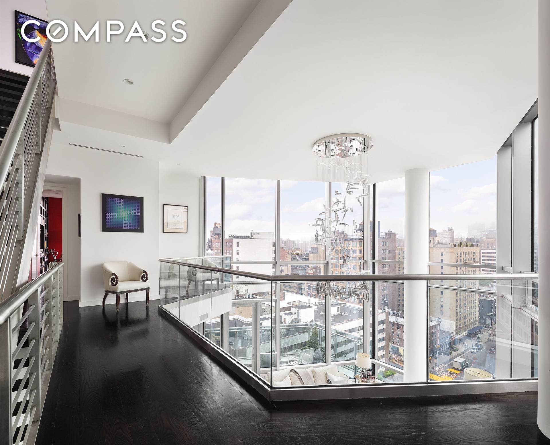 Conveniently positioned high above Central Chelsea, equidistant to West Chelsea/Hudson Yards, the Flatiron District/Union Square, and Greenwich Village just four streets south, this impressive Triplex penthouse delivers unprecedented volume, light, and big views. While the building is boutique-scaled, it boasts an impressive array of amenities, including a 24-hour doorman, swimming pool, and fitness center.