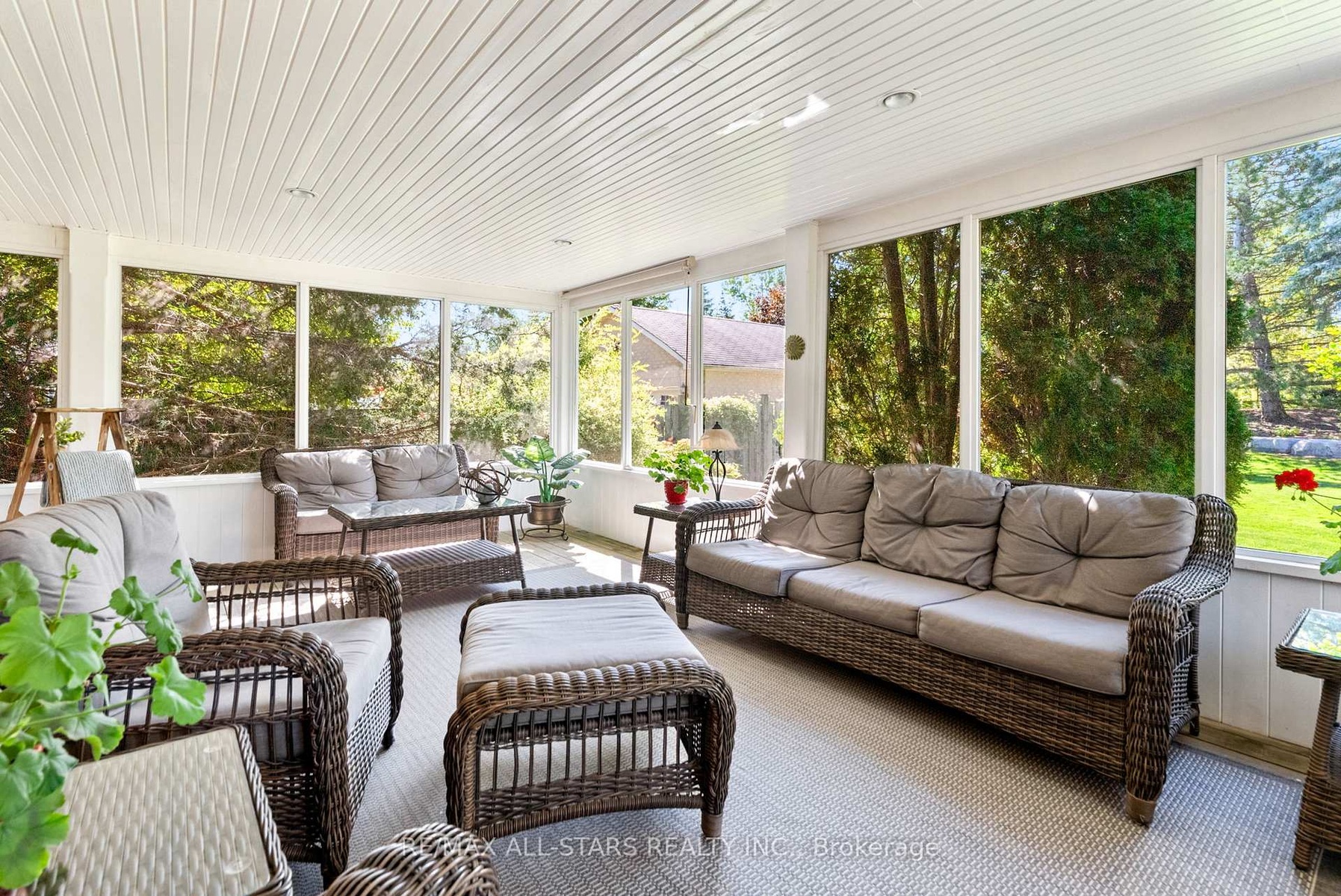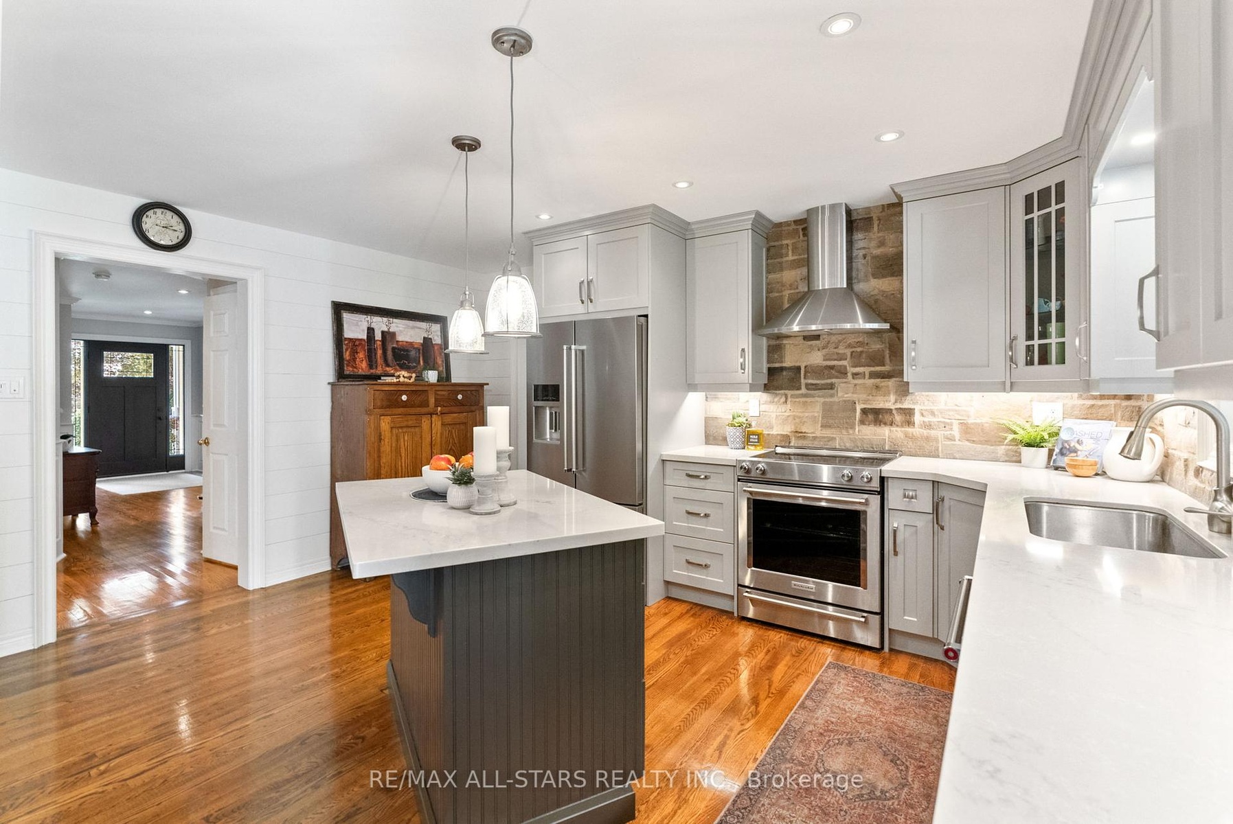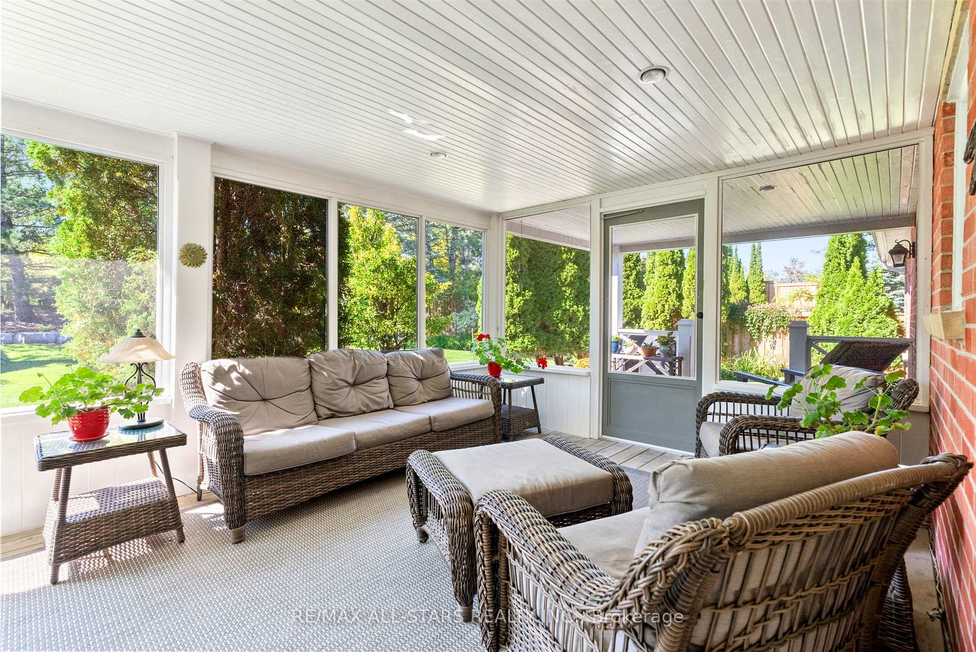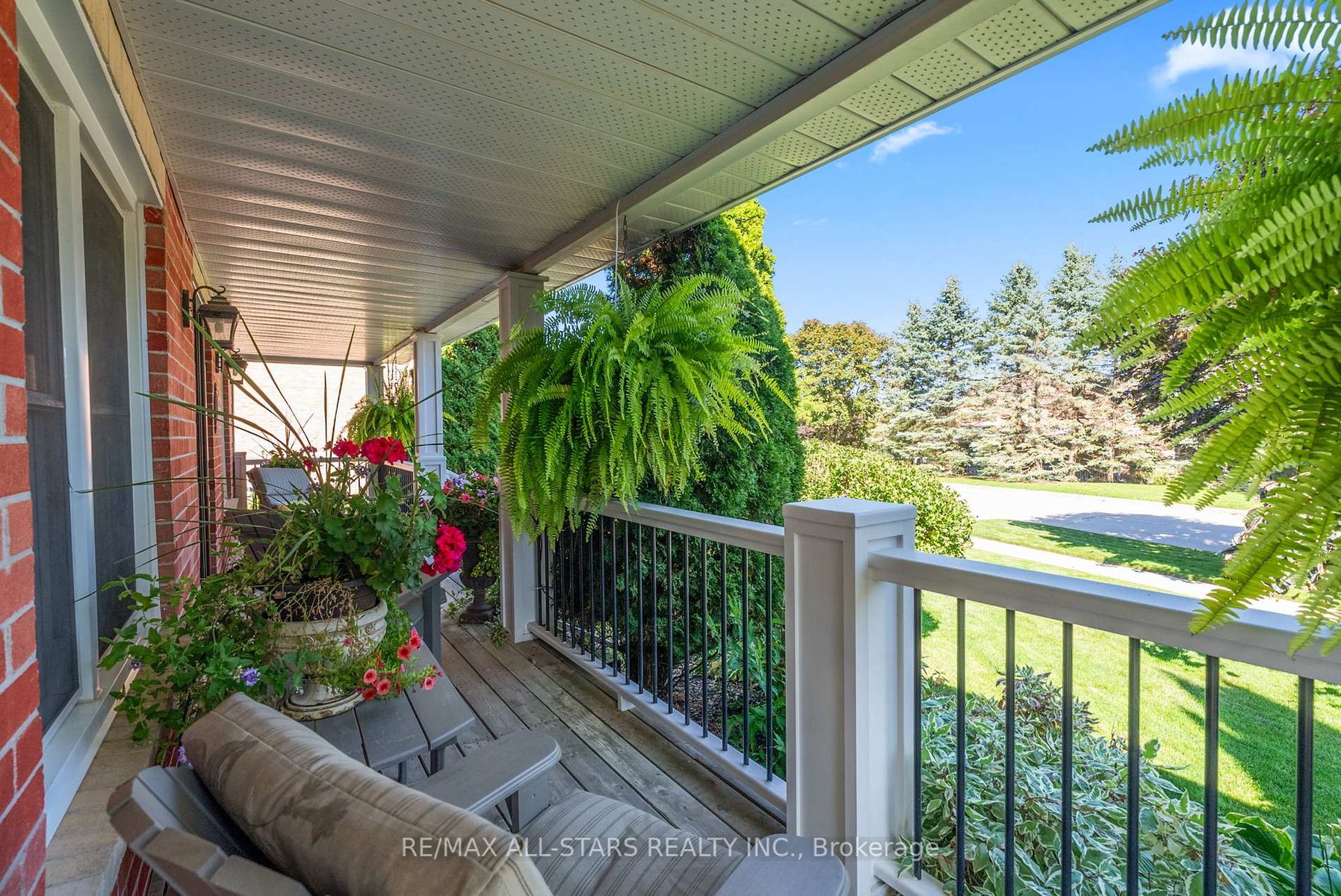 DescriptionFirst time offered, this exceptional home, set on a quiet crescent is a picture of sophistication with beautiful updates, a deep covered wraparound porch, 3 season sunroom, meticulous landscaping and custom layout. Nestled on a rare 70 x 169 ft lot backing onto town-designated parkland, enjoy premium privacy and a serene natural backdrop in a sought-after, family-friendly neighbourhood. This elegant home has unmatched curb appeal that hints at the quiet elegance within offering 4 bedrooms, 4 bathrooms and 2,751 sq ft (per MPAC, plus a finished lower level). A beautiful farmhouse kitchen anchors the home with quartz counters, real stone backsplash and breakfast area with patio doors to the deck overlooking perennial gardens enveloped by trees. Refined finishes shine including hardwood floors, crown moulding, smooth ceilings and wainscoting. Off the foyer, a bright office overlooks the front gardens, while the formal living room features a radiant heat gas fireplace for cozy evenings. French doors in the formal dining room open to a 3-season screened sunroom, extending the use of outdoor enjoyment and entertaining, perfect for relaxing while enjoying views of the landscaped, pool-sized backyard and flagstone patio. Upstairs, the principal suite offers hardwood floors, three closets, and a serene ensuite with heated floors, glass shower, and soaker tub. Three additional bedrooms and a stylishly updated main bath complete the upper level. The finished lower level adds valuable space with a den, wet bar, 3-pc bath, and ample storage. Additional features include RainBird irrigation and quality updates including: 2025 Freshly Painted Foyer, Office, Living Room & Upper Hall, 2024 Flagstone Side Walkway, 2023 Furnace & A/C, Lower Level Reno, 2021 Appliances, 2020 Kitchen, Roof Shingles 2019 (Front), 2016 (Rear), Approx. 2014 Windows. Original laundry plumbing remains in mudroom. Steps to schools, parks, and the Uxbridge trail system - this is a rare and refined offering.Amenities- Auto Garage Door Remote