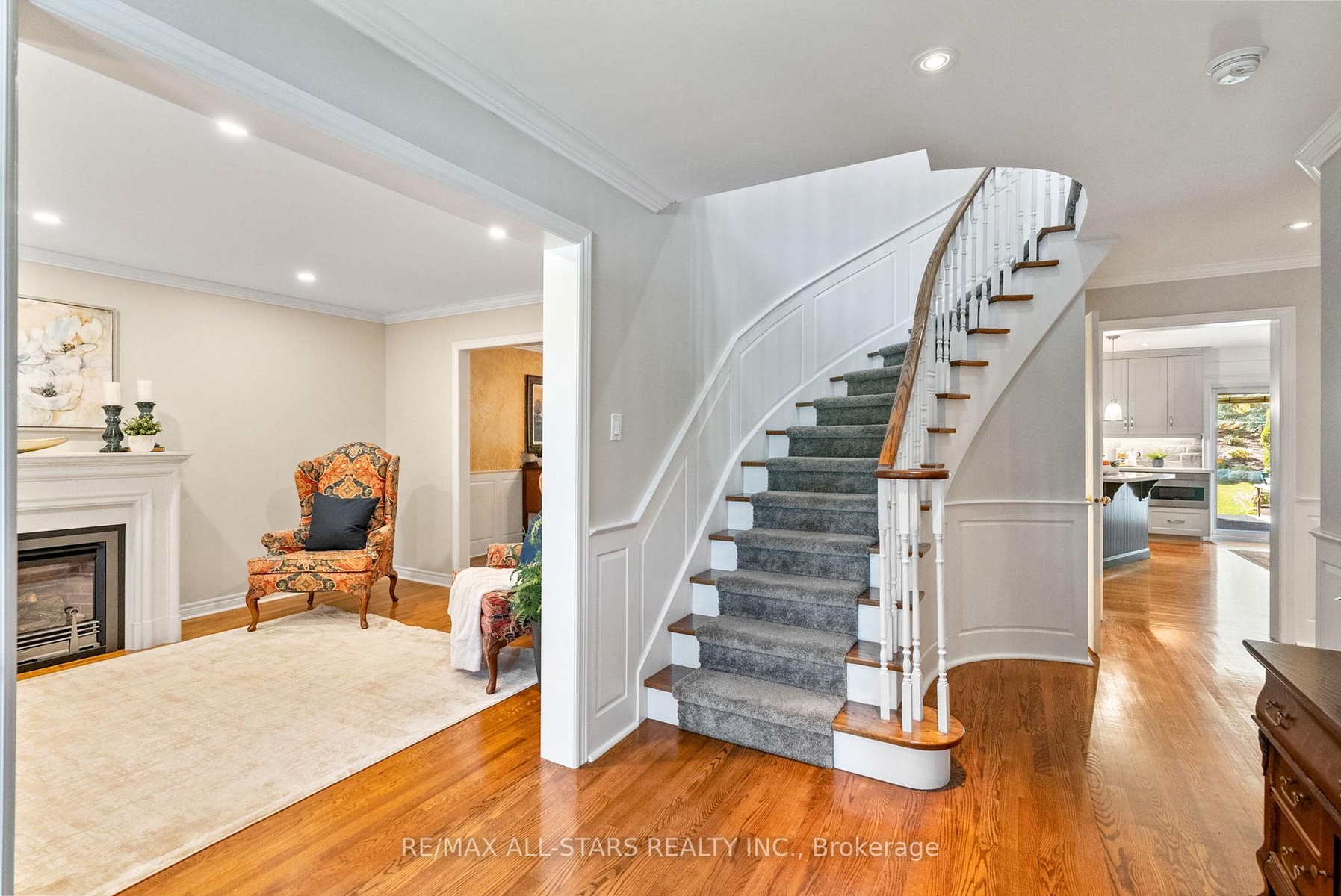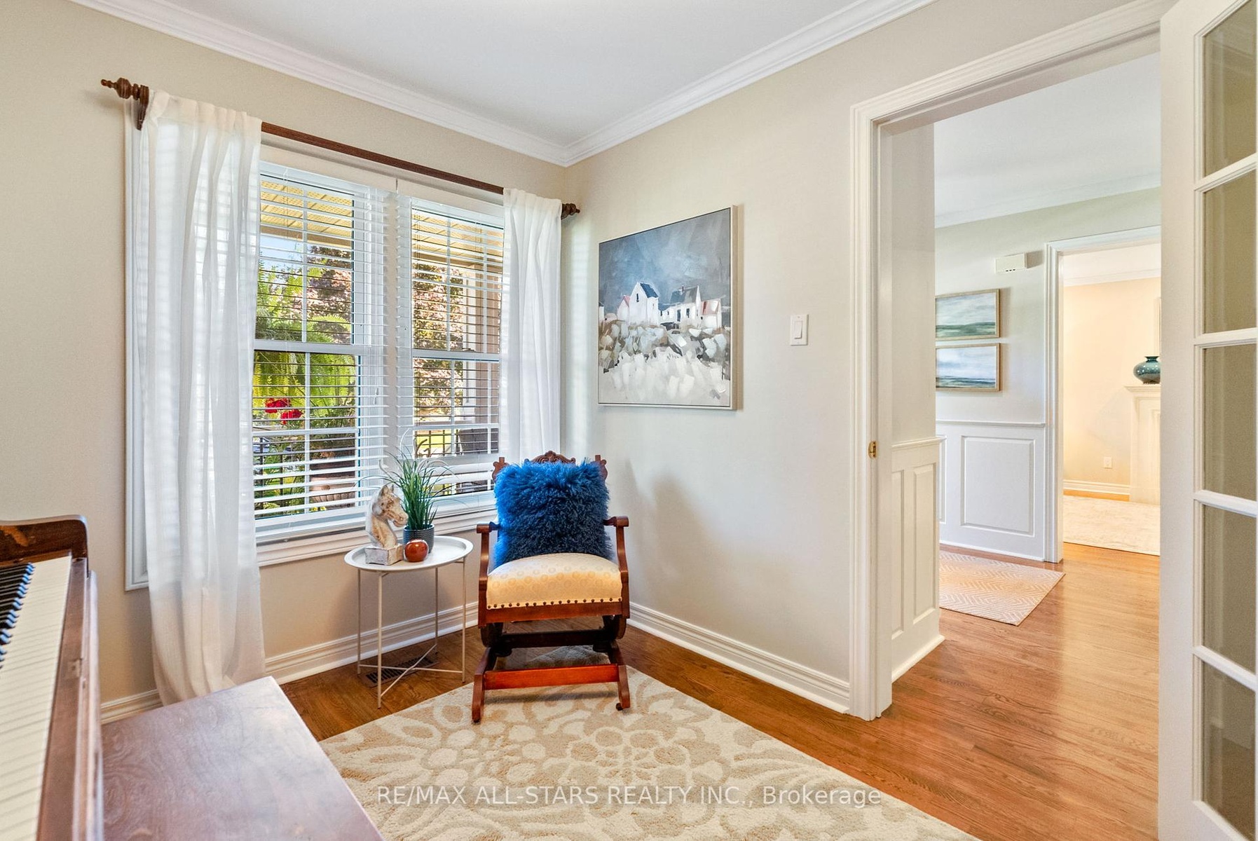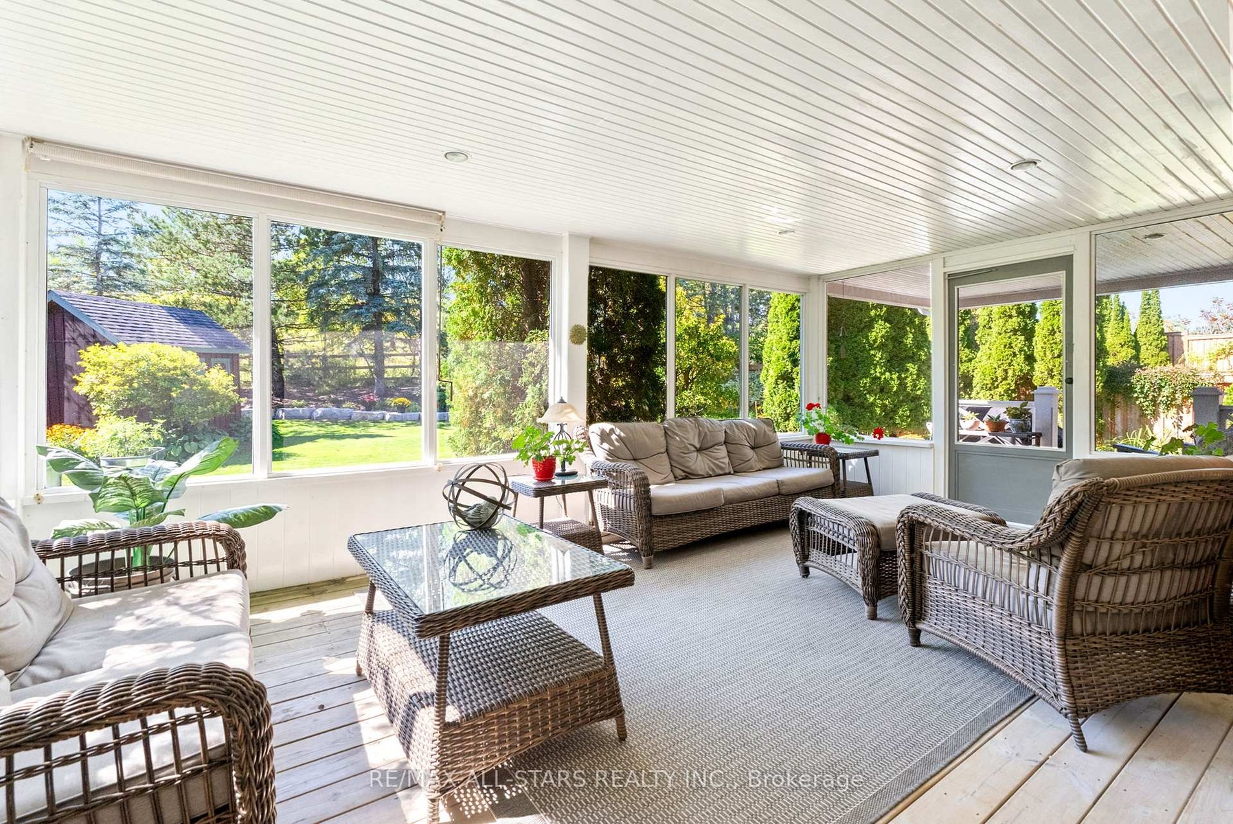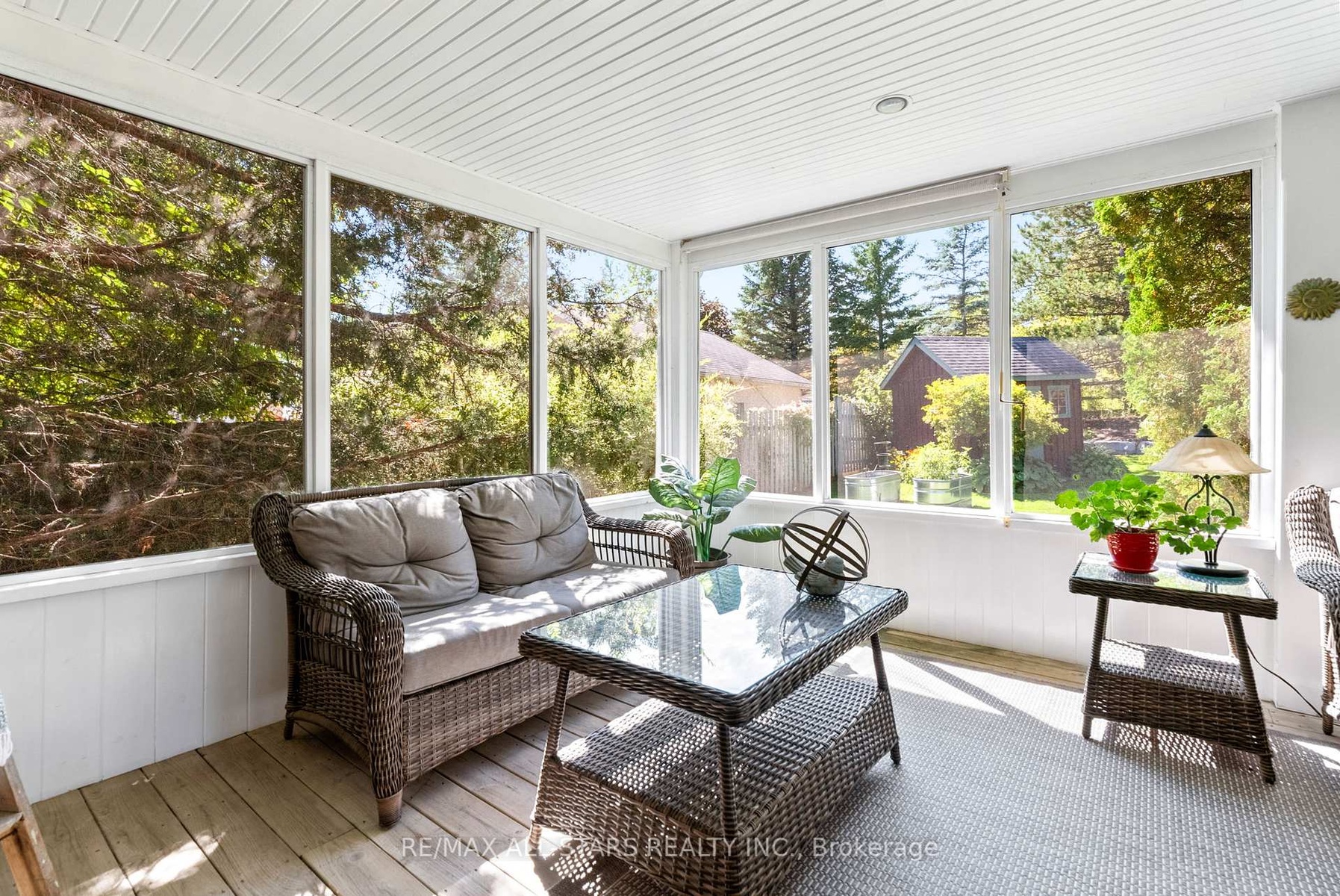 DescriptionFirst time offered, this exceptional home, set on a quiet crescent is a picture of sophistication with beautiful updates, a deep covered wraparound porch, 3 season sunroom, meticulous landscaping and custom layout. Nestled on a rare 70 x 169 ft lot backing onto town-designated parkland, enjoy premium privacy and a serene natural backdrop in a sought-after, family-friendly neighbourhood. This elegant home has unmatched curb appeal that hints at the quiet elegance within offering 4 bedrooms, 4 bathrooms and 2,751 sq ft (per MPAC, plus a finished lower level). A beautiful farmhouse kitchen anchors the home with quartz counters, real stone backsplash and breakfast area with patio doors to the deck overlooking perennial gardens enveloped by trees. Refined finishes shine including hardwood floors, crown moulding, smooth ceilings and wainscoting. Off the foyer, a bright office overlooks the front gardens, while the formal living room features a radiant heat gas fireplace for cozy evenings. French doors in the formal dining room open to a 3-season screened sunroom, extending the use of outdoor enjoyment and entertaining, perfect for relaxing while enjoying views of the landscaped, pool-sized backyard and flagstone patio. Upstairs, the principal suite offers hardwood floors, three closets, and a serene ensuite with heated floors, glass shower, and soaker tub. Three additional bedrooms and a stylishly updated main bath complete the upper level. The finished lower level adds valuable space with a den, wet bar, 3-pc bath, and ample storage. Additional features include RainBird irrigation and quality updates including: 2025 Freshly Painted Foyer, Office, Living Room & Upper Hall, 2024 Flagstone Side Walkway, 2023 Furnace & A/C, Lower Level Reno, 2021 Appliances, 2020 Kitchen, Roof Shingles 2019 (Front), 2016 (Rear), Approx. 2014 Windows. Original laundry plumbing remains in mudroom. Steps to schools, parks, and the Uxbridge trail system - this is a rare and refined offering.Amenities- Auto Garage Door Remote