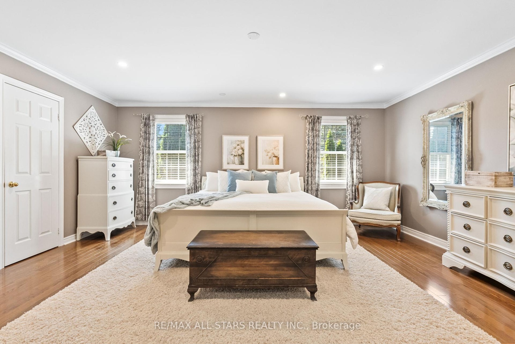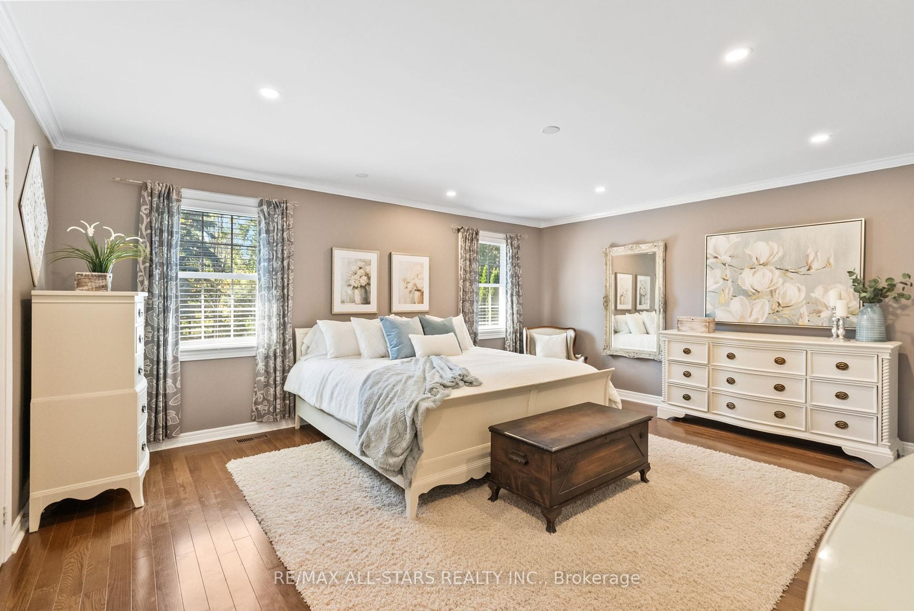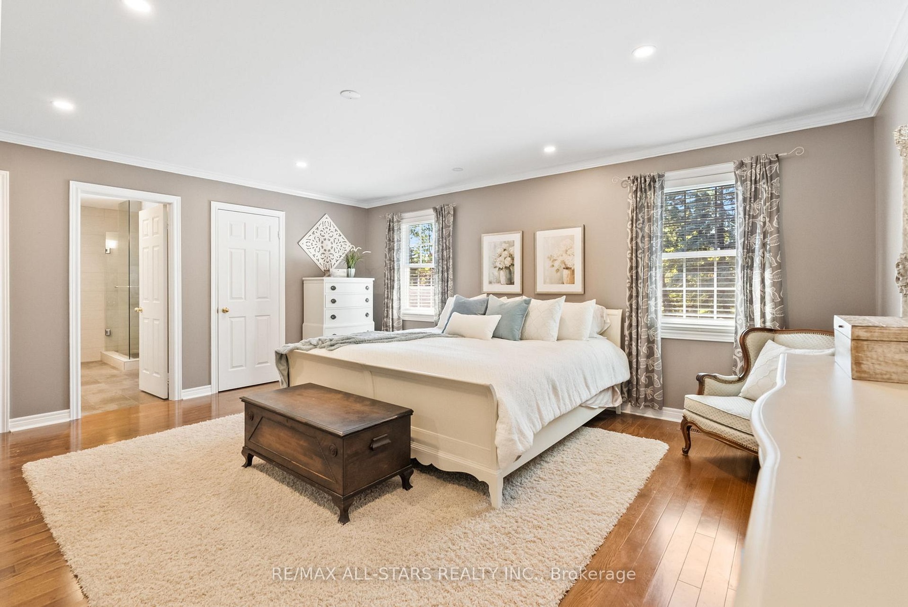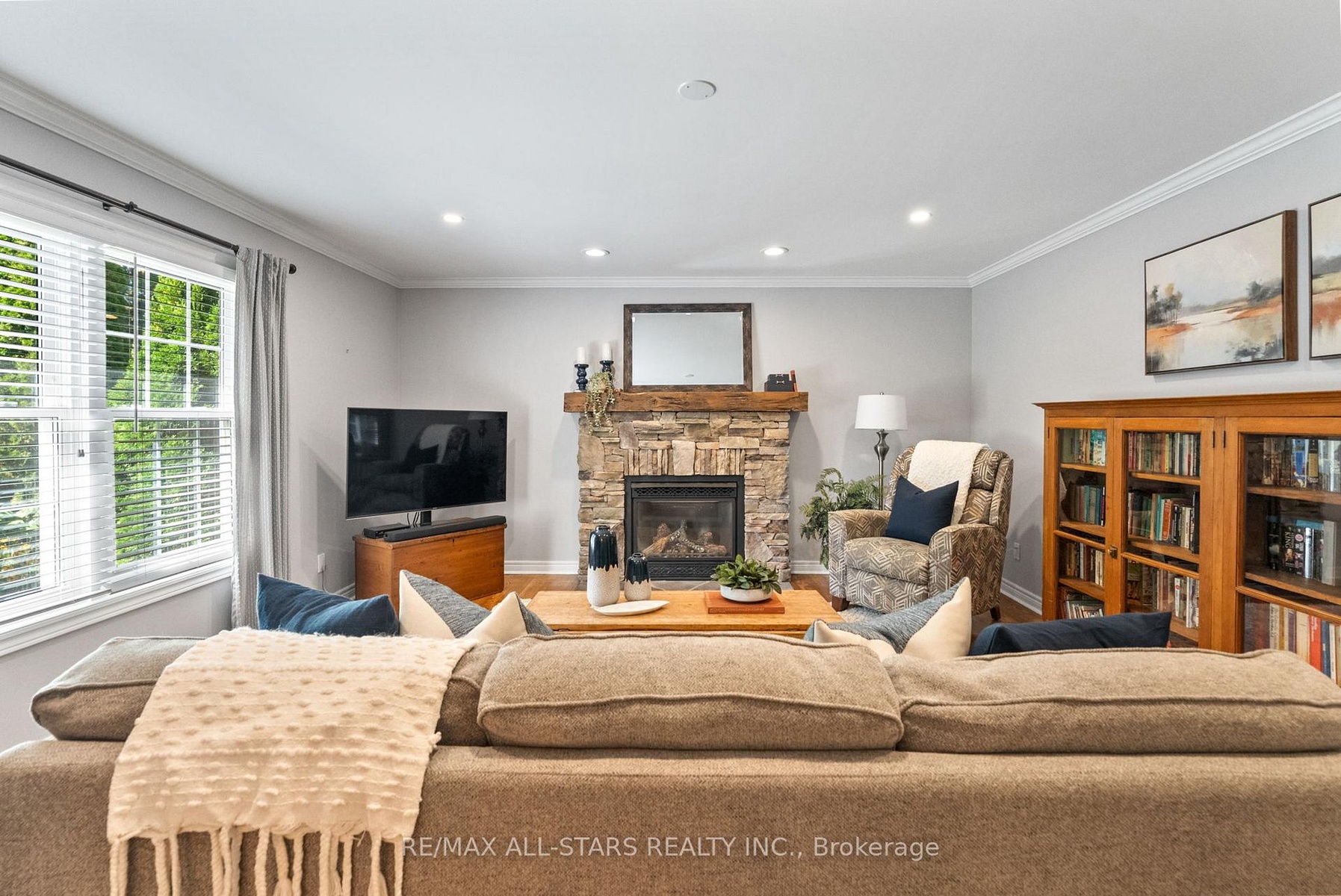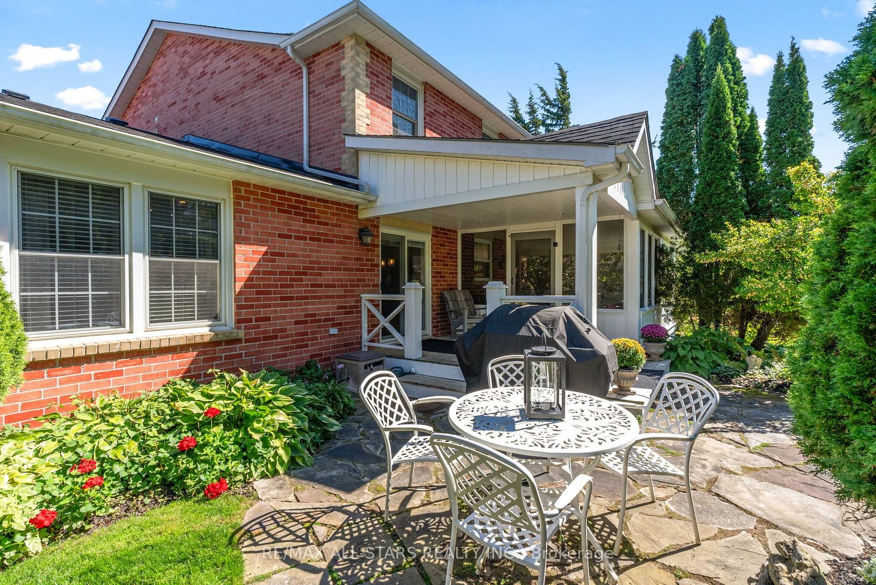 First time offered, this exceptional home, set on a quiet crescent is a picture of sophistication with beautiful updates, a deep covered wraparound porch, 3 season sunroom, meticulous landscaping and custom layout. Nestled on a rare 70 x 169 ft lot backing onto town-designated parkland, enjoy premium privacy and a serene natural backdrop in a sought-after, family-friendly neighbourhood. This elegant home has unmatched curb appeal that hints at the quiet elegance within offering 4 bedrooms, 4 bathrooms and 2,751 sq ft (per MPAC, plus a finished lower level). A beautiful farmhouse kitchen anchors the home with quartz counters, real stone backsplash and breakfast area with patio doors to the deck overlooking perennial gardens enveloped by trees. Refined finishes shine including hardwood floors, crown moulding, smooth ceilings and wainscoting. Off the foyer, a bright office overlooks the front gardens, while the formal living room features a radiant heat gas fireplace for cozy evenings. French doors in the formal dining room open to a 3-season screened sunroom, extending the use of outdoor enjoyment and entertaining, perfect for relaxing while enjoying views of the landscaped, pool-sized backyard and flagstone patio. Upstairs, the principal suite offers hardwood floors, three closets, and a serene ensuite with heated floors, glass shower, and soaker tub. Three additional bedrooms and a stylishly updated main bath complete the upper level. The finished lower level adds valuable space with a den, wet bar, 3-pc bath, and ample storage. Additional features include RainBird irrigation and quality updates including: 2025 Freshly Painted Foyer, Office, Living Room & Upper Hall, 2024 Flagstone Side Walkway, 2023 Furnace & A/C, Lower Level Reno, 2021 Appliances, 2020 Kitchen, Roof Shingles 2019 (Front), 2016 (Rear), Approx. 2014 Windows. Original laundry plumbing remains in mudroom. Steps to schools, parks, and the Uxbridge trail system - this is a rare and refined offering.