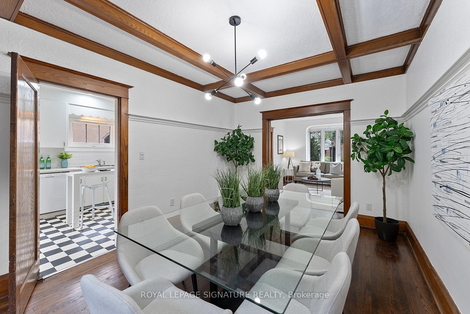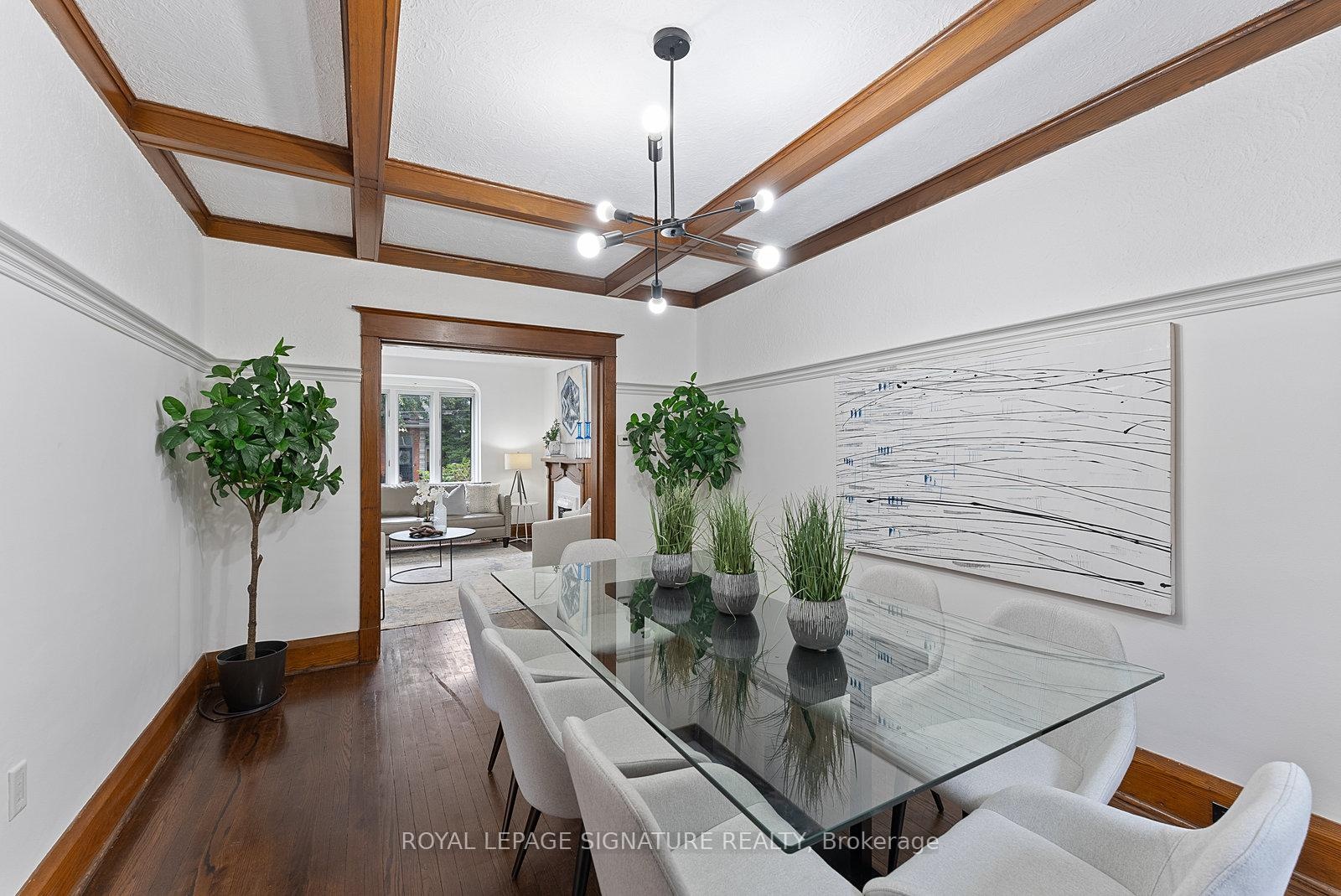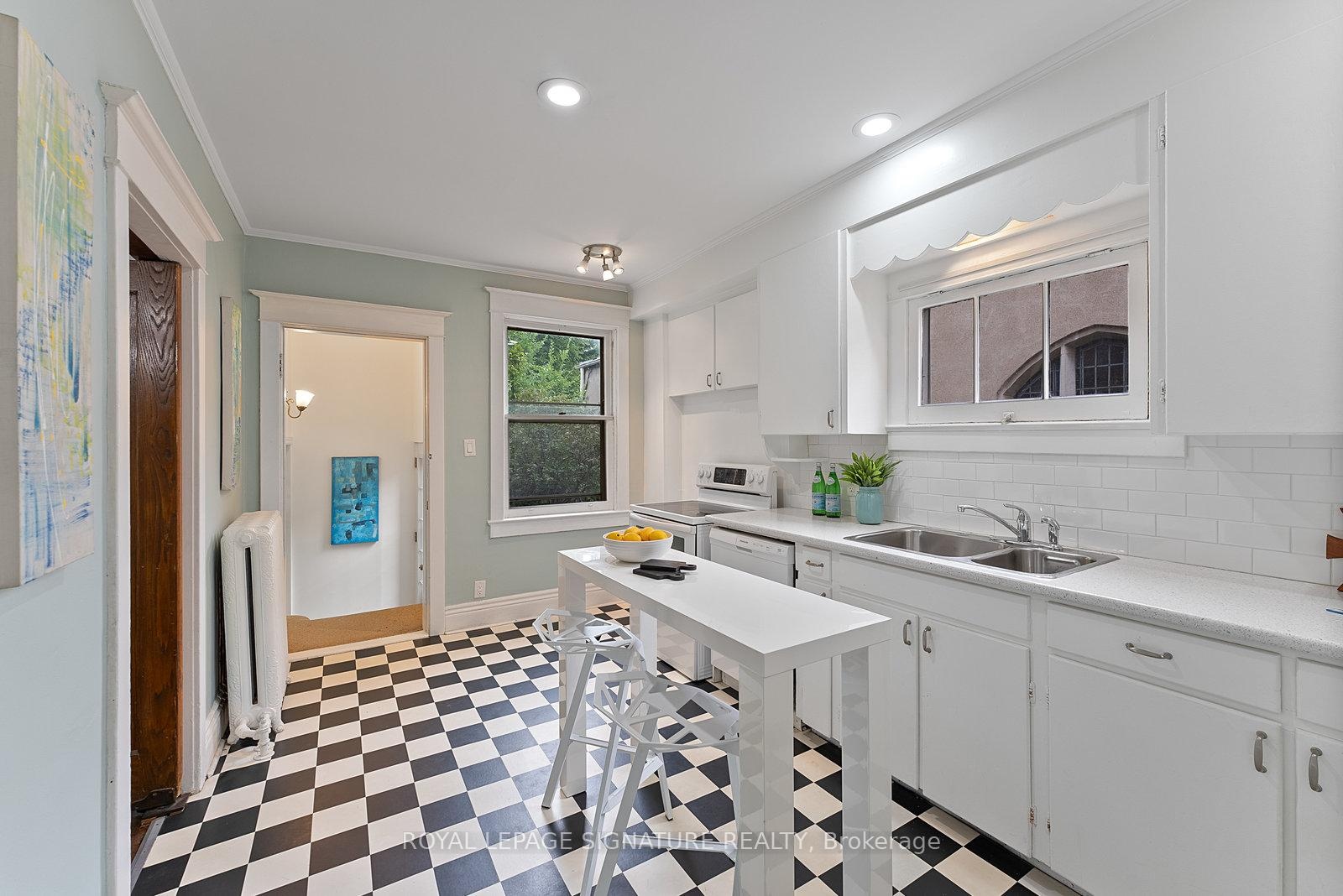 Welcome to 9 Kennedy Avenue, in beautiful Swansea! This century home (built in 1914) is loaded with character and fitted with all the convenience of a family home! The traditional layout of the main floor combines living and dining rooms with a closed kitchen to conceal meal prep when hosting dinners. Currently boasting 3 bedrooms and 1.5 bathrooms on the main and second floor, the finished basement is equipped with a bedroom, living room, a third bathroom, a second kitchen and a separate entrance. The house is loaded with elegant Arts and Crafts details such as the carved wooden staircase, stained glass windows, hand stuccoed ceilings, coffered ceiling of the dining room, an antique fireplace front cover and ornate cast iron radiators throughout the property. Hardwood flooring throughout makes the home allergy-friendly and provides for easy upkeep. The East-West orientation of the house and the unobstructed Southern exposure on the second floor allow for generous natural light to flood the property from sunrise until sunset. A large, bright backyard with mature magnolia trees provides outdoor entertainment options and scope for gardening projects. Two sheds provide added storage. Nestled on a quiet, family-friendly street, this home provides a peaceful oasis just 2 blocks from Bloor Street West. High Park is only steps away and a quick walk takes you to Lake Ontario. All of your amenities from groceries, pharmacy, gym, restaurants and more are easily accessible in a neighbourhood that boasts some of the best schools in the city. The location is close to the Gardiner Expressway and very well serviced by public transit. Runnymede subway station is quickly accessible by foot, and a bus route circling through the neighbourhood connects to The Queensway, allowing you to be Downtown within 30 minutes. This is your perfect opportunity to make your forever home in a community that has it all!