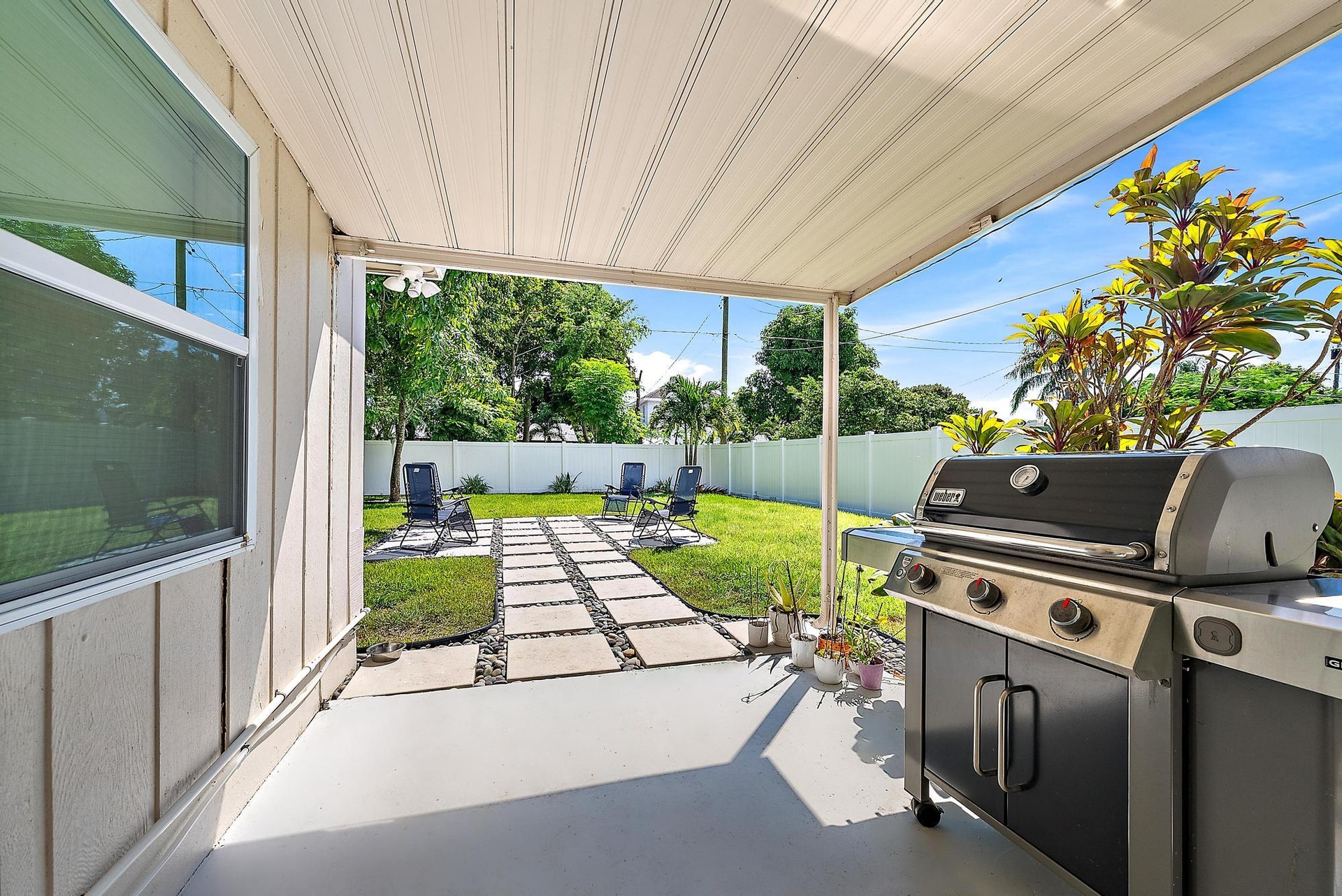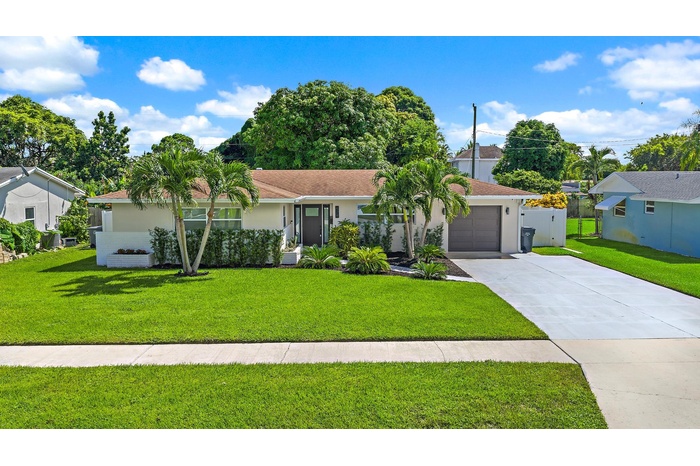 Stylishly updated and move-in ready! This 3BR/2BA home features new porcelain tile flooring (2024), recessed and track lighting, and custom built-out closets. Stay comfortable year-round with central A/C plus a split unit for added efficiency. Recent upgrades include updated plumbing (2023), a tankless water heater, and an A/C system (2020). For peace of mind, the home is equipped with full impact windows, impact doors, and an impact garage door.Step outside to a newly landscaped backyard with fresh fencing, new gutters (2023), and a convenient storage shed.Perfectly located, this home offers quick access to beaches, marinas, and waterfront dining, along with shopping at The Gardens Mall and other major retailers.