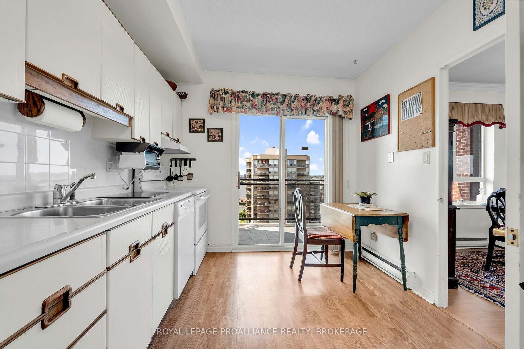 Welcome to #1201-1000 King Street West, a fabulous 12th - floor corner unit offering expansive, unobstructed views of the Cataraqui Golf Course, Lake Ontario, and beyond. Situated on the sought-after Northwest side of this prestigious high - rise, this bright and spacious two-bedroom, two-bathroom condo is full of potential and ready for your personal touches. The thoughtfully designed layout features a generous kitchen that opens onto the main living space, where you will find dual balconies - facing both west and north - perfect for enjoying sunsets and the serene landscape. Featuring in suite laundry and separate dining room - this unit provides a welcoming sense of space, natural light, and privacy. Located in the desirable Fairway Hills neighbourhood, just steps from historic Portsmouth Village, this well-maintained 94-unit building combines executive and luxury features with the charm of Kingston's scenic surroundings. Youll enjoy easy access to downtown Kingston, local shops, parks, hospitals, and waterfront trails - all while being connected via public transit right outside your door. Building amenities include Secure underground parking with a car wash bay, Ample visitor parking, Indoor pool, Jacuzzi, Sauna, fully equipped Fitness Centre, tennis/pickle ball court, Games room, Library, and Garden Centre, beautifully landscaped outdoor gardens with streams and sitting areas, Guest suite, common room with kitchen, and lovely patios for social gatherings. With a welcoming community atmosphere and a wide variety of resident activities and gatherings, this property offers the perfect blend of urban convenience and natural beauty. Don't miss the opportunity to make this exceptional condo your own.