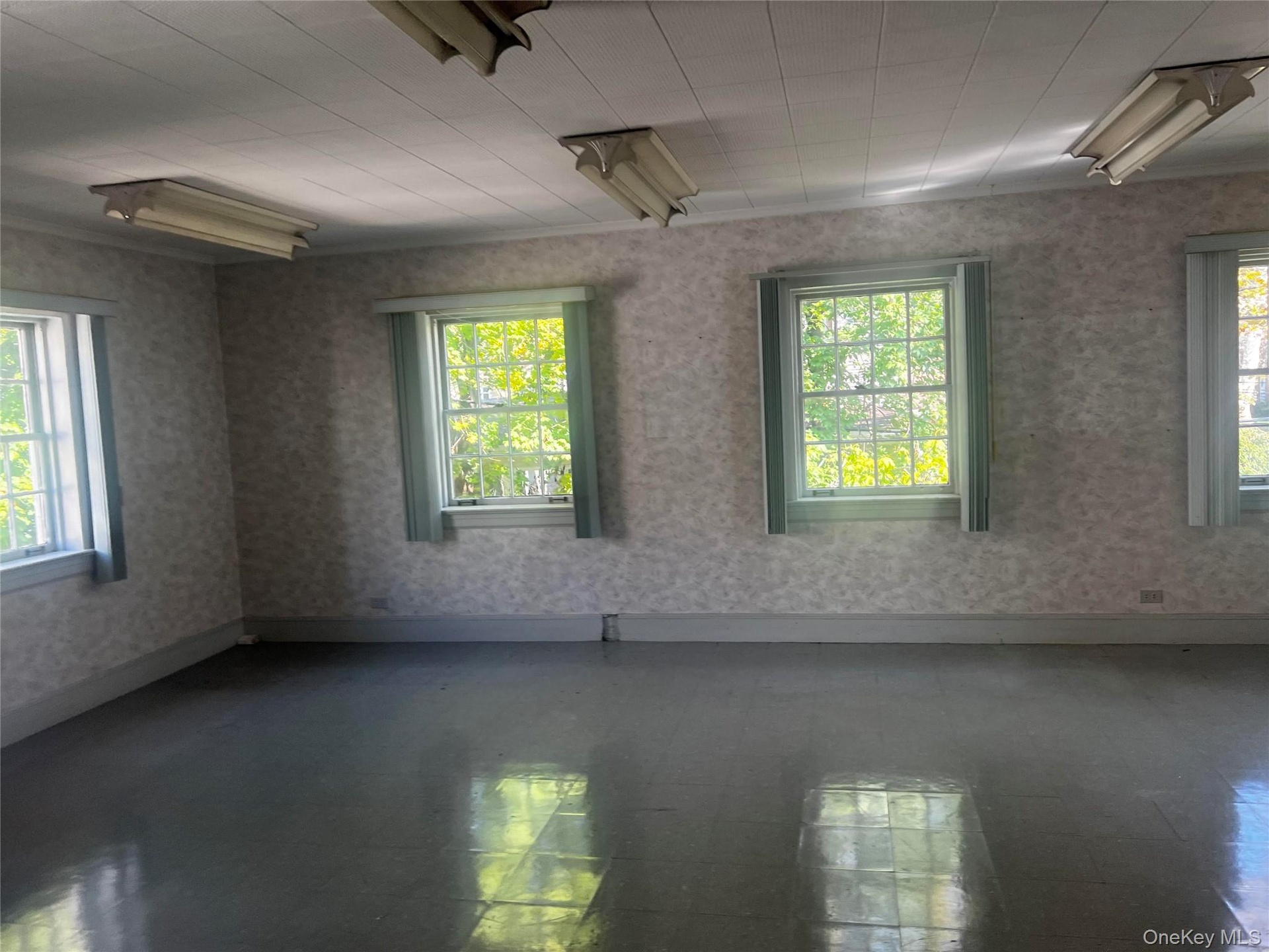 - Unfurnished room featuring plenty of natural light and wallpapered walls