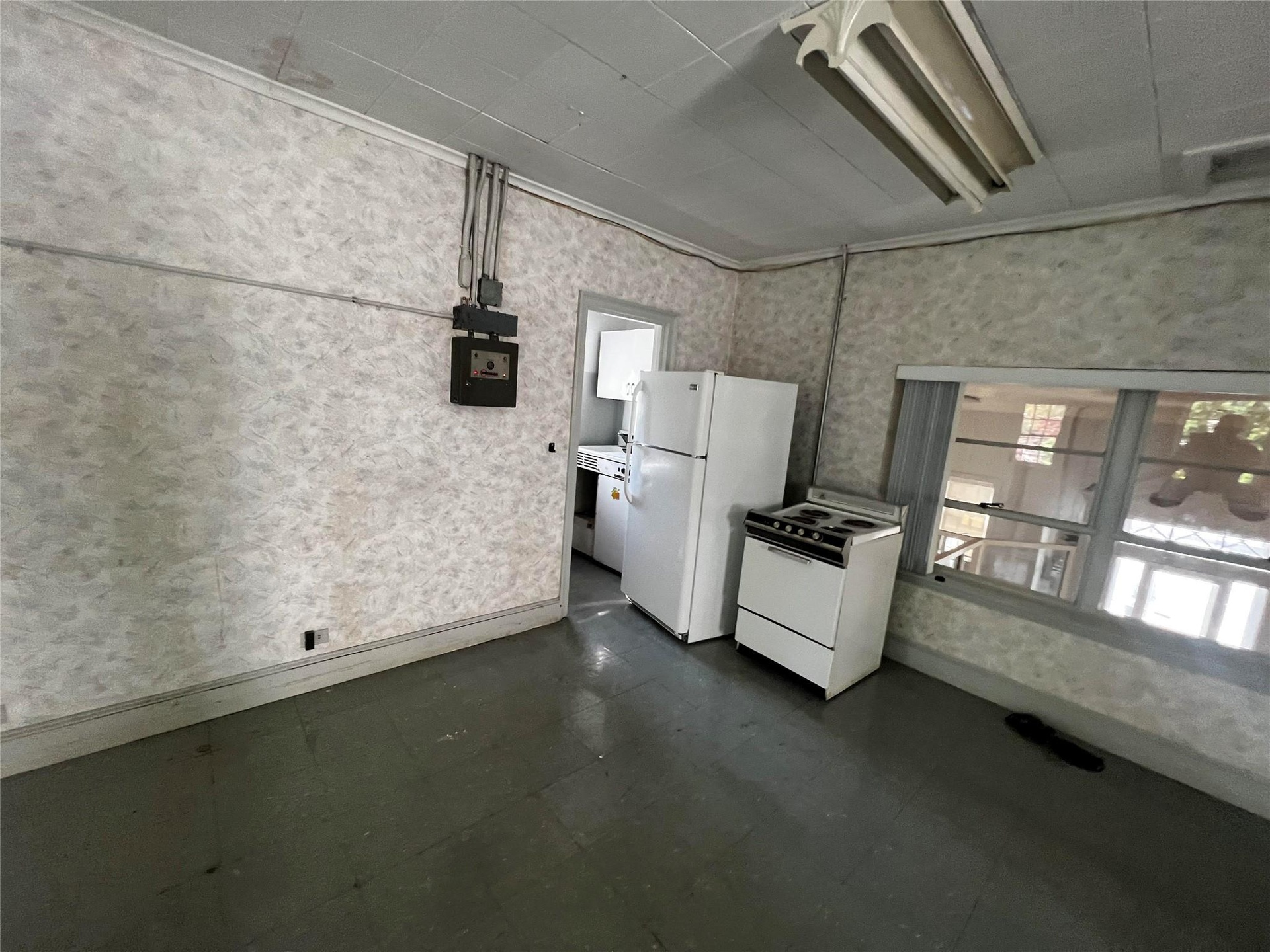 - Unfurnished room featuring wallpapered walls and tile patterned floors