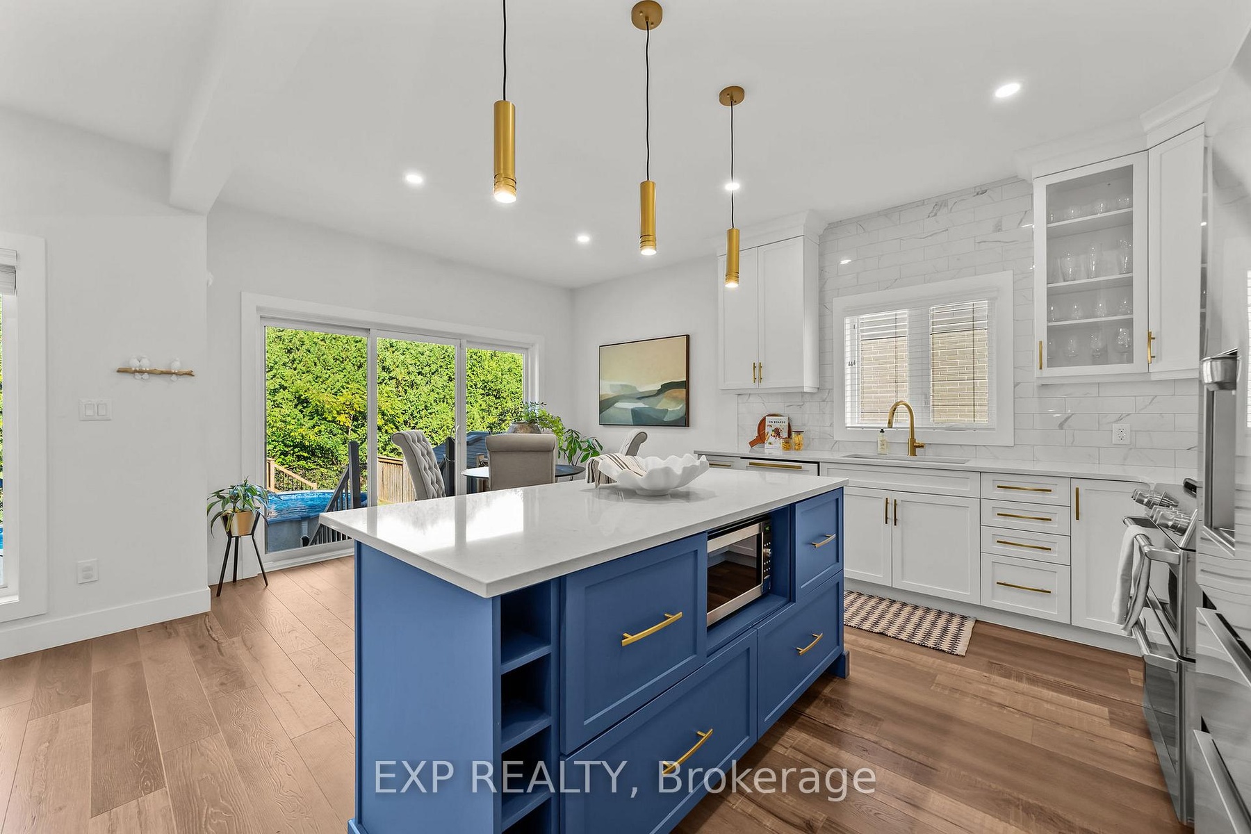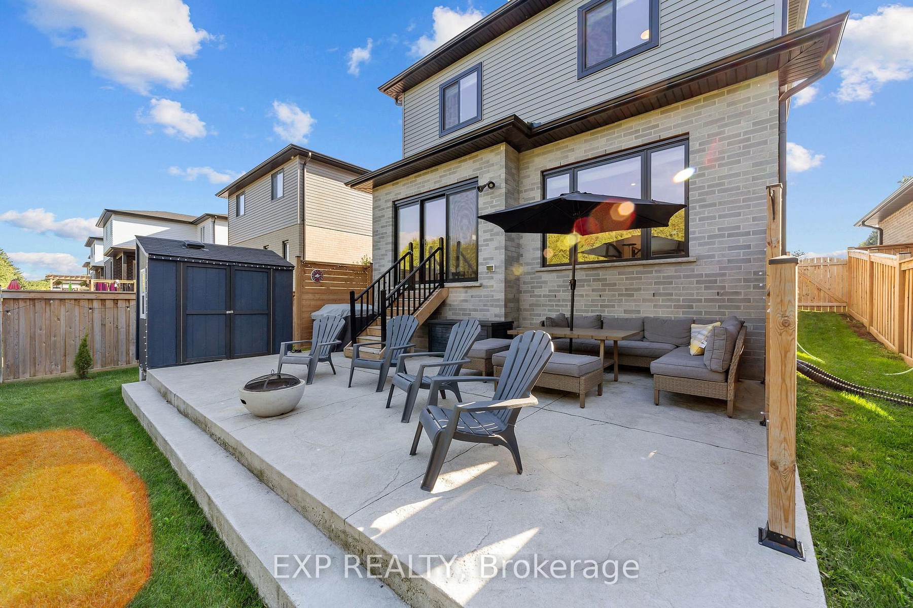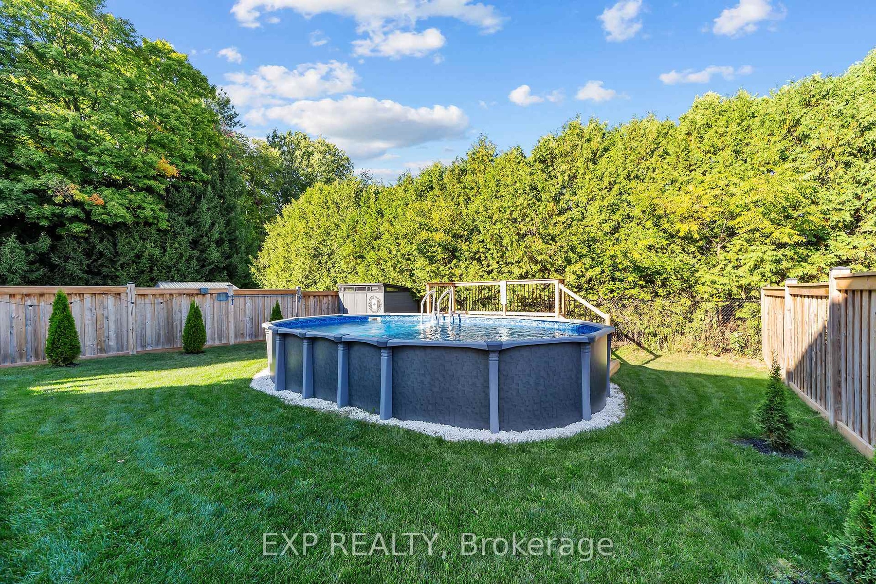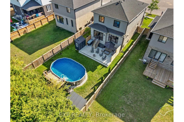 DescriptionSet on a premium court lot with a backyard oasis backing onto mature cedars and greenspace with no rear neighbours, this move-in ready family home blends modern finishes with lifestyle appeal, offering 9 ft ceilings on every level. The chefs kitchen showcases 9 ft cabinetry, quartz countertops, a custom island and range hood, Café gas double oven, built-in dishwasher within custom cabinetry, a walk-in pantry, and soft-close drawers and vanities throughout, while a custom mantel frames the gas fireplace for a warm focal point. Bright, spacious bedrooms and bathrooms are enhanced by large windows, including an added stairwell window that fills the hallway with natural light. The garage features an electric heater (2021). Outside, enjoy a heated pool (2021) with a new pool deck (2024), stamped concrete patio (2021), fence (2022), privacy walls, and two sheds; the pool benefits from all-day sun with no leaves to skim, and the court is ideal for basketball, hockey, biking, and rollerblading, with trails, parks, and fields close by. An added bonus is offered by oversized basement windows (48" x 30") plus larger windows in the back bedrooms, waterproof vinyl plank flooring on the main and upper floors, abundant pot lights inside and out, and thoughtful touches like 9 ft-high closets, added outlets, and custom built-ins for excellent storage. In a desirable Mount Brydges location, you're within walking distance to Lions Park, soccer and baseball fields, community events, and great schools with bus service, and only 10 minutes to Strathroy.Amenities- Natural Gas