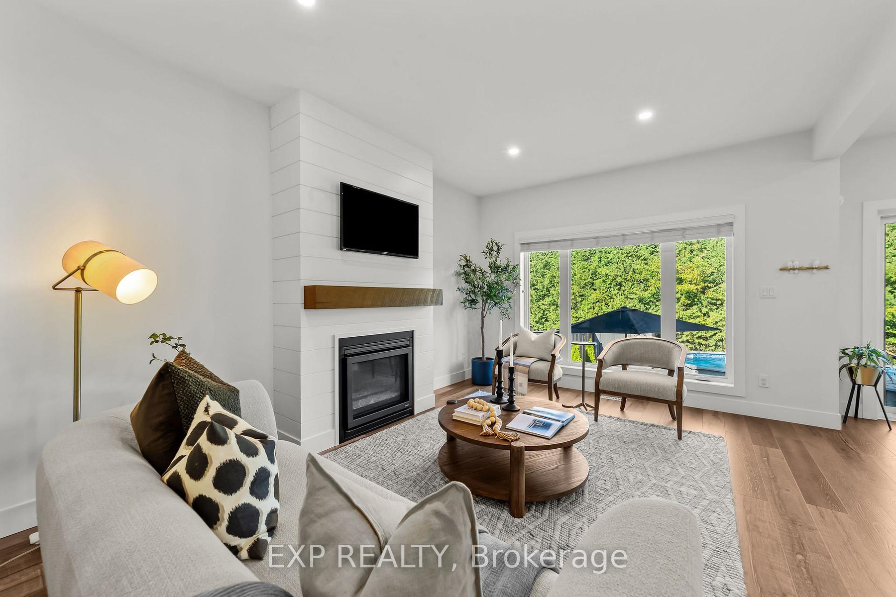 Set on a premium court lot with a backyard oasis backing onto mature cedars and greenspace with no rear neighbours, this move-in ready family home blends modern finishes with lifestyle appeal, offering 9 ft ceilings on every level. The chefs kitchen showcases 9 ft cabinetry, quartz countertops, a custom island and range hood, Café gas double oven, built-in dishwasher within custom cabinetry, a walk-in pantry, and soft-close drawers and vanities throughout, while a custom mantel frames the gas fireplace for a warm focal point. Bright, spacious bedrooms and bathrooms are enhanced by large windows, including an added stairwell window that fills the hallway with natural light. The garage features an electric heater (2021). Outside, enjoy a heated pool (2021) with a new pool deck (2024), stamped concrete patio (2021), fence (2022), privacy walls, and two sheds; the pool benefits from all-day sun with no leaves to skim, and the court is ideal for basketball, hockey, biking, and rollerblading, with trails, parks, and fields close by. An added bonus is offered by oversized basement windows (48" x 30") plus larger windows in the back bedrooms, waterproof vinyl plank flooring on the main and upper floors, abundant pot lights inside and out, and thoughtful touches like 9 ft-high closets, added outlets, and custom built-ins for excellent storage. In a desirable Mount Brydges location, you're within walking distance to Lions Park, soccer and baseball fields, community events, and great schools with bus service, and only 10 minutes to Strathroy.