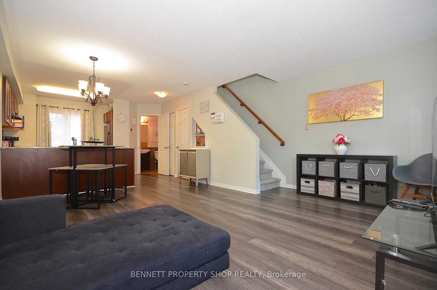Fresh and bright freehold 3-storey townhome offering 3 bedrooms + den and 3 bathrooms in the family-friendly community of Arbeatha Park in Bells Corners, just minutes from the peaceful Stony Swamp forest and trails. The first level features a spacious den with access to the backyard and spacious deck, as well as inside entry from the single-car garage with automatic door. The light-filled second floor showcases an open-concept layout with living and dining area, a powder room, a modern kitchen with granite counters, and the convenience of second-floor laundry. Upstairs, three bedrooms and two full bathrooms provide comfort and privacy. The basement offers multiple areas for storage, adding functionality and convenience. Recent upgrades include luxury vinyl flooring (2022), smart thermostat (2022), central air (2022), and new eavestroughs (2024). The $76.31/month HOA covers landscaping and snow removal - no condo fees! Ideally located in Bells Corners, in close proximity to schools, shops, parks, amenities, transit, and just a short drive to DND Headquarters on Carling Avenue.