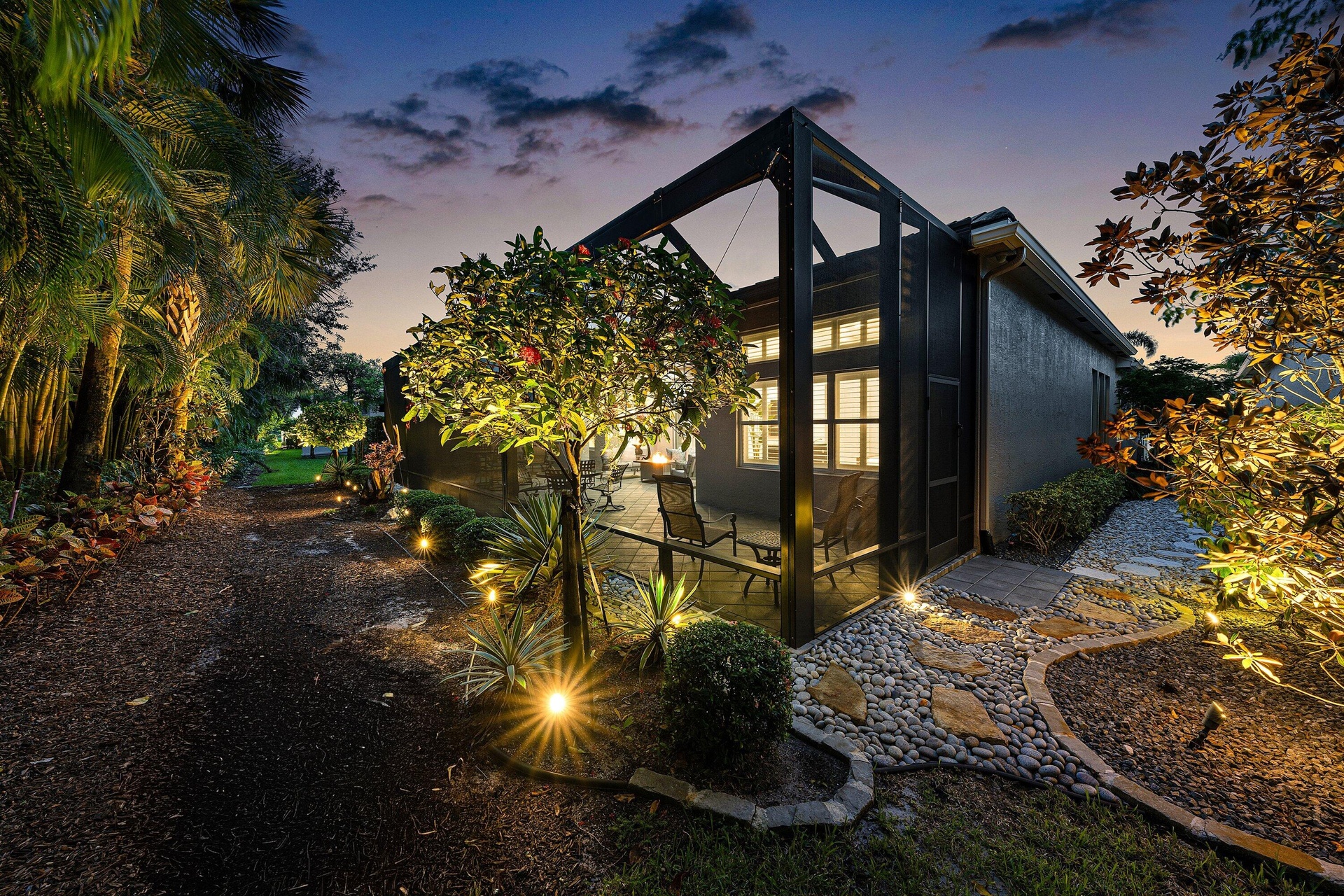 This beautifully appointed Caroline model sits on a lushly landscaped private lot backing south.