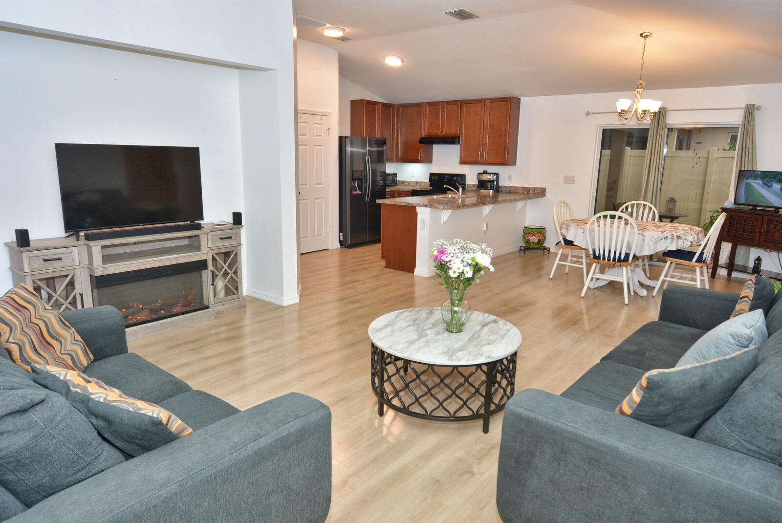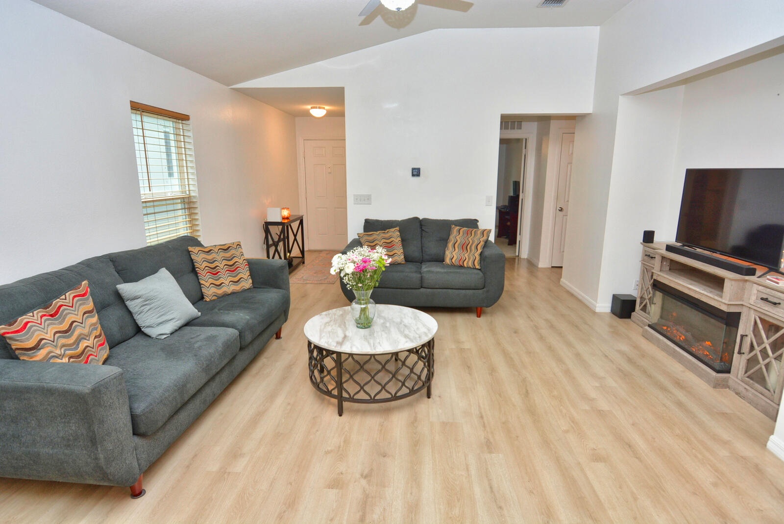 Exceptionally maintained 3-bedroom, 2-bath home on a corner lot with serene preserve views. Expansive great room includes an extra-large living and dining area, ideal for entertaining. Special features are the very spacious open floor plan, cook friendly kitchen with abundant counter space, and all appliances included. Situated on a corner lot across from preserve land, this home boasts a covered patio with serene views. Thoughtful extras include security system, washer and dryer, and built in garage shelving.