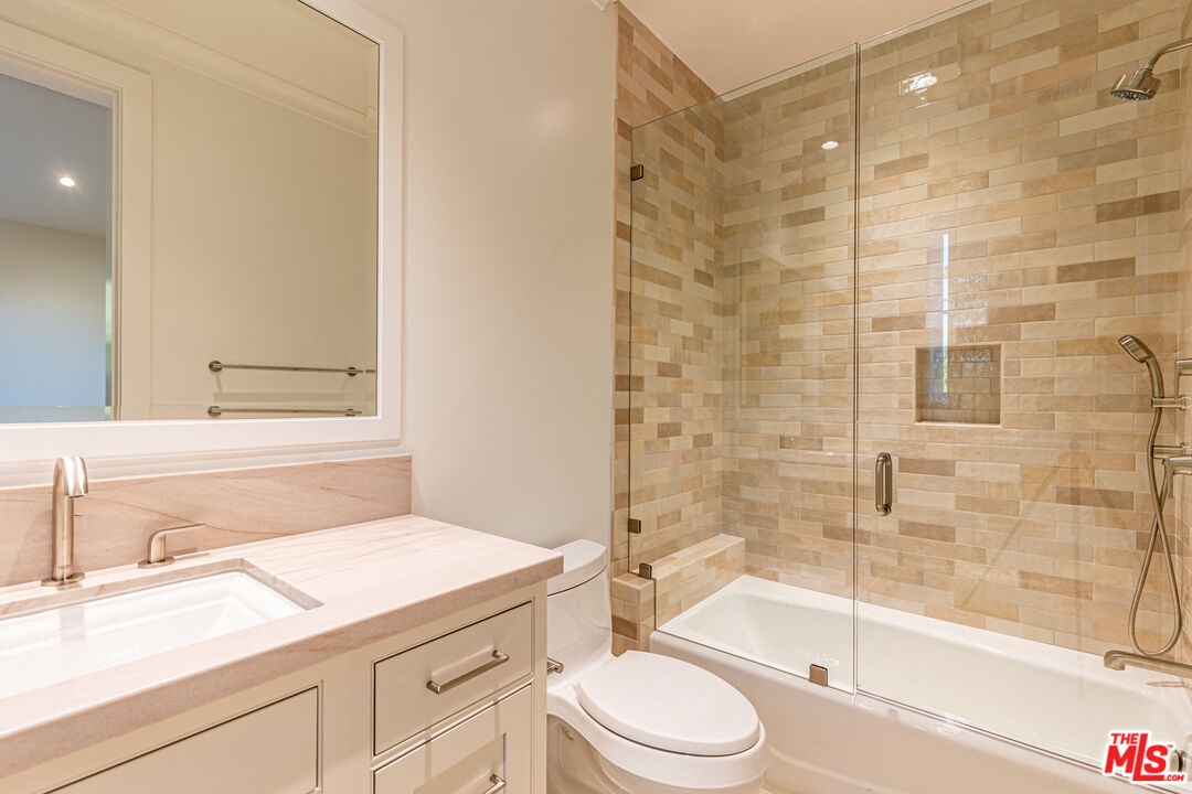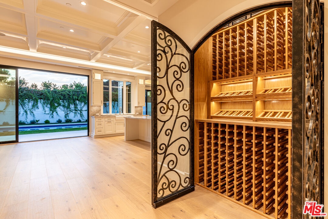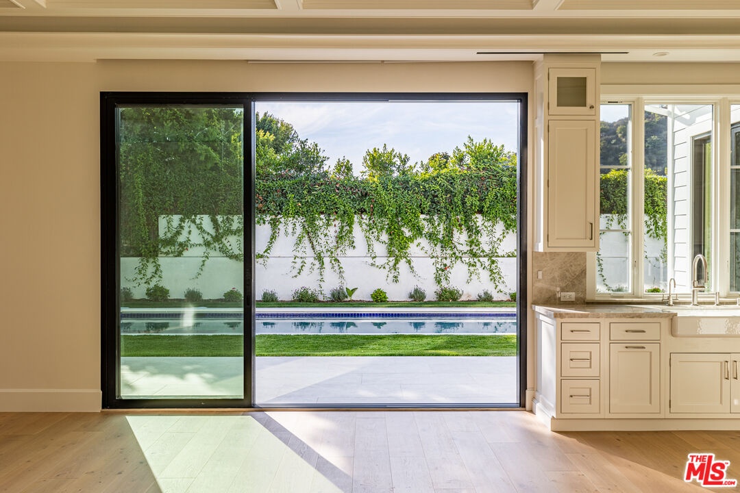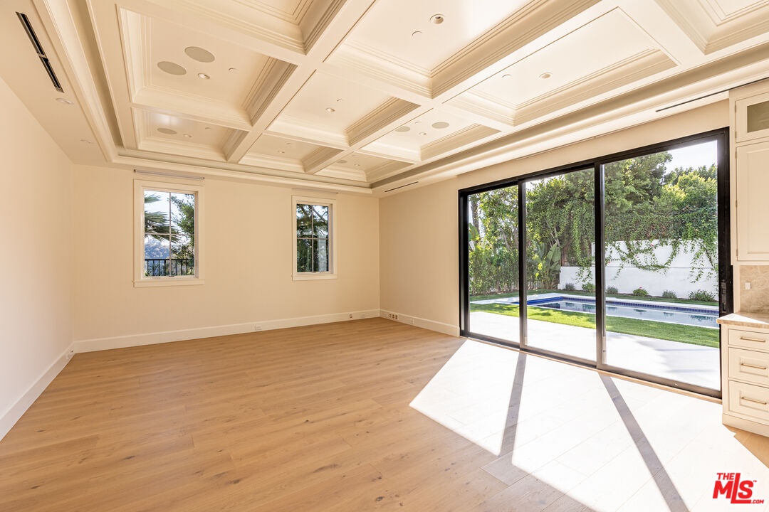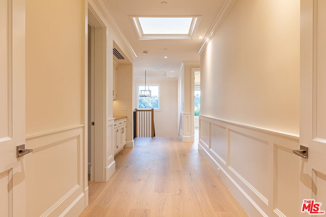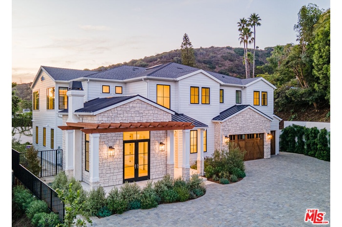 Privately set on a gated flag lot in Beverly Crest, this newly built Beverly Hills home blends timeless California Craftsman style with Cape Cod elegance. Elevated above the street for added seclusion, it features top-of-the-line finishes including hardwood floors, marble surfaces, designer lighting, custom millwork, and surround sound. The open floor plan includes a gourmet kitchen with dual islands, breakfast nook, and premium appliances, flowing into a spacious living area with large sliding doors that open to a private backyard with a pool, spa, lawn, and patio. A flexible office or guest room with fireplace sits near the entry, and a detached bonus space offers use as a gym, studio, or guest suite. Upstairs, the luxurious primary suite includes a fireplace, balcony with canyon views, spa-like bath, and walk-in closet. Located minutes from top-tier shopping, dining, and entertainment, this home offers luxury, privacy, and exceptional design in a coveted location.