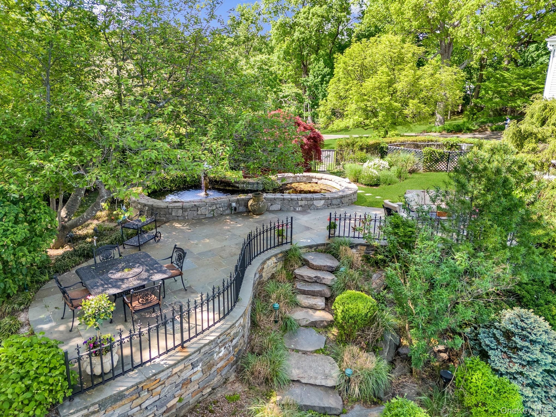 - Outdoor dining area, Koi pond and garden