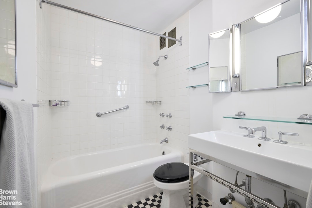 The bedroom suite is equally impressive, with a custom floor-to-ceiling dressing room, Louis Poulsen lighting, and tranquil northern view. The restored original black and white bathroom honors the apartment's heritage with a restored mirrored medicine cabinet and oversized sink.