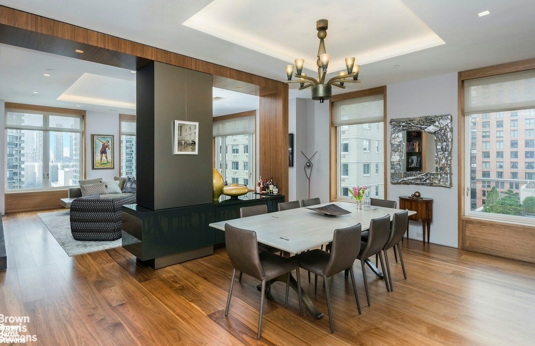 Welcome to the expertly designed, triple mint renovated Residence 15K. Completely reimagined from the ground up by HS2 Architecture, you are greeted with a large entry foyer adorned with Maya Romanoff red lacquered walls standing in beautiful contrast to the honey-colored wide plank walnut hardwood floors. This once traditionally designed apartment has now been carefully crafted with an eye towards understated elegance.
