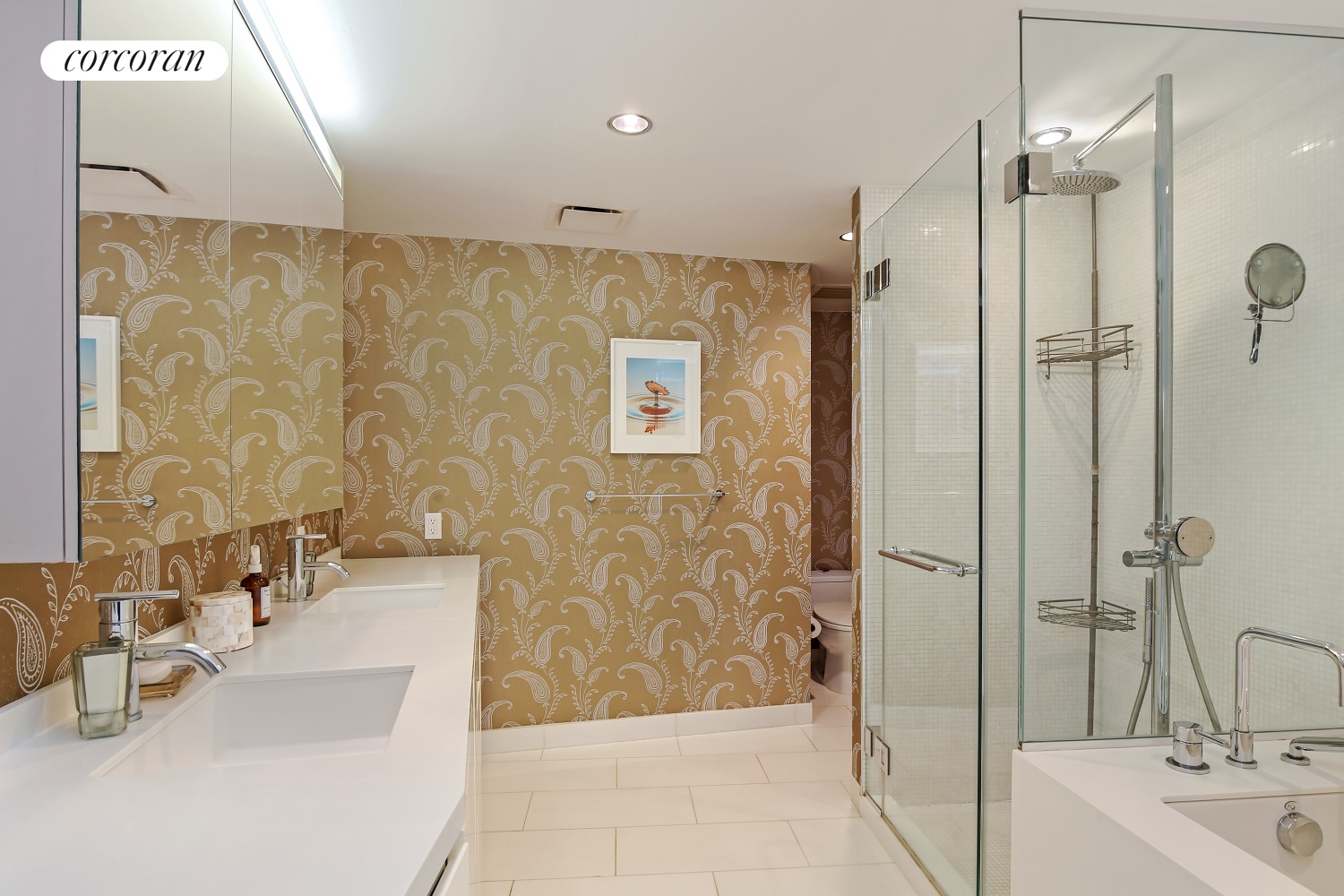 Other features of the apartment include wide plank oak flooring throughout, recessed lighting, thermostat-controlled central A/C system offering year round climate control, tons of closet space and a large capacity Bosch Washer and Dryer.
