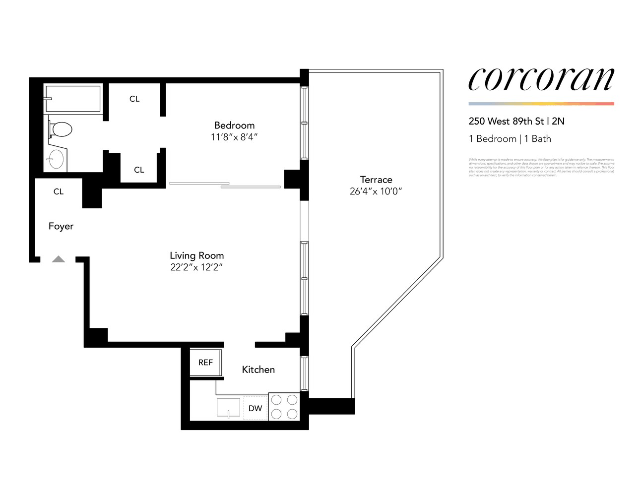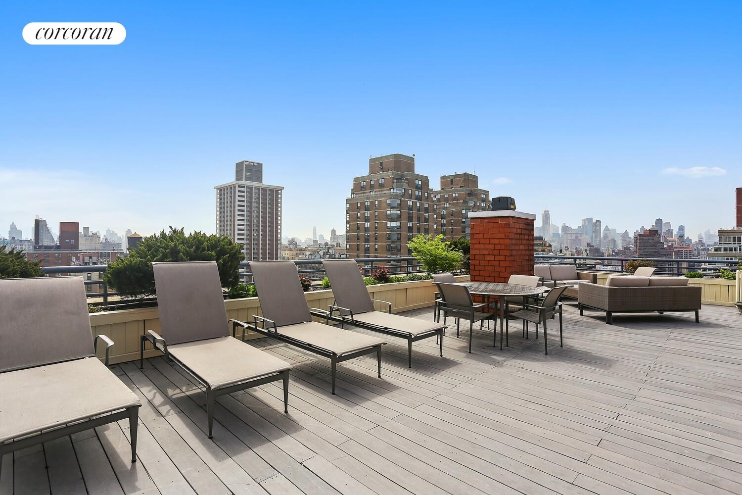 Charming junior one bedroom with 250sqft set back terrace in a prime full service building. The private terrace is large enough for a sitting area and a table with six chairs and has electrical outlets and a water spigot. The separate windowed kitchen has full sized appliances. Apartment features include ample closet space, hardwood floors throughout and a marble bathroom.