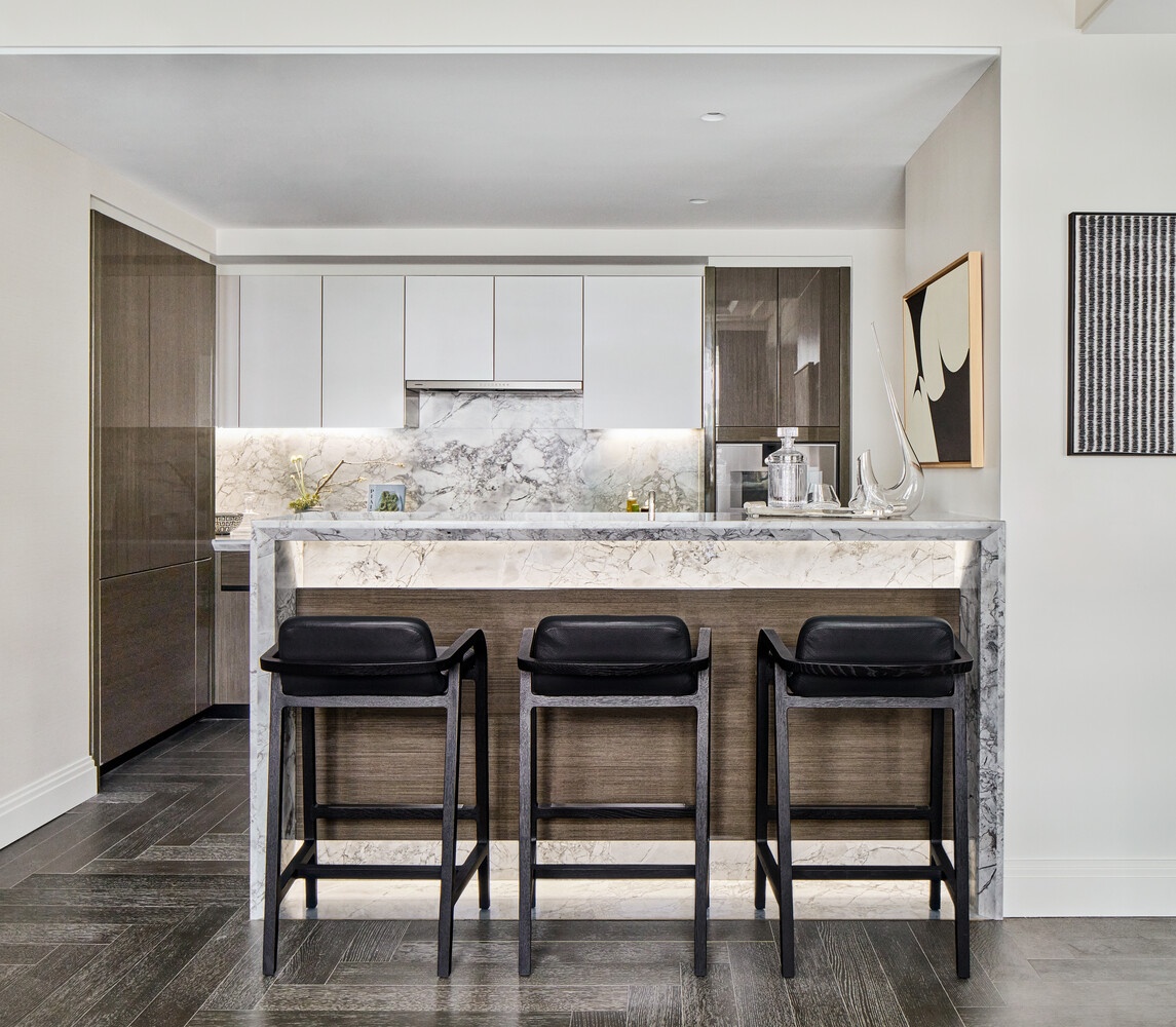 Waldorf Astoria Residences New York offers an exclusive partnership with B&B Italia, offering curated, fully furnished residences available only to residents. Residents have the option to purchase furnishings in two color declinations, "Chiaro" or "Scuro," for both warm or cool palettes, and an elevated arrangement of accents and accessories to complement the furnishings.