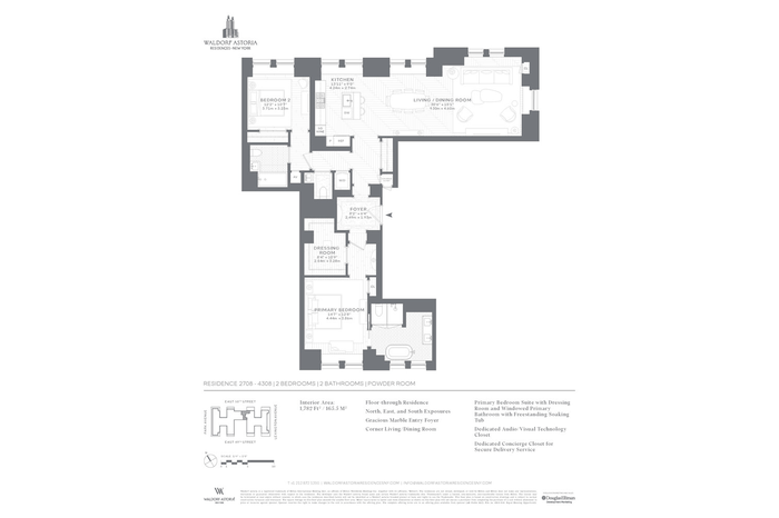 Own a piece of the legacy at Waldorf Astoria Residences New York. Residence 2808 showcases sweeping city views of the East Side, Park Avenue, and the Chrysler Building. Designed by internationally acclaimed designer Jean-Louis Deniot, residences combine modern comfort with signature features such as a dedicated Concierge Closet and keyless entry with opulent details like ceiling coves, herringbone floors, oversized custom-paneled doors, spacious walk-in closets, and grand entry foyers with marble floors and brass inlays.