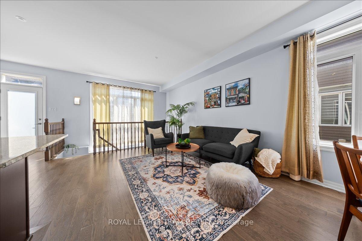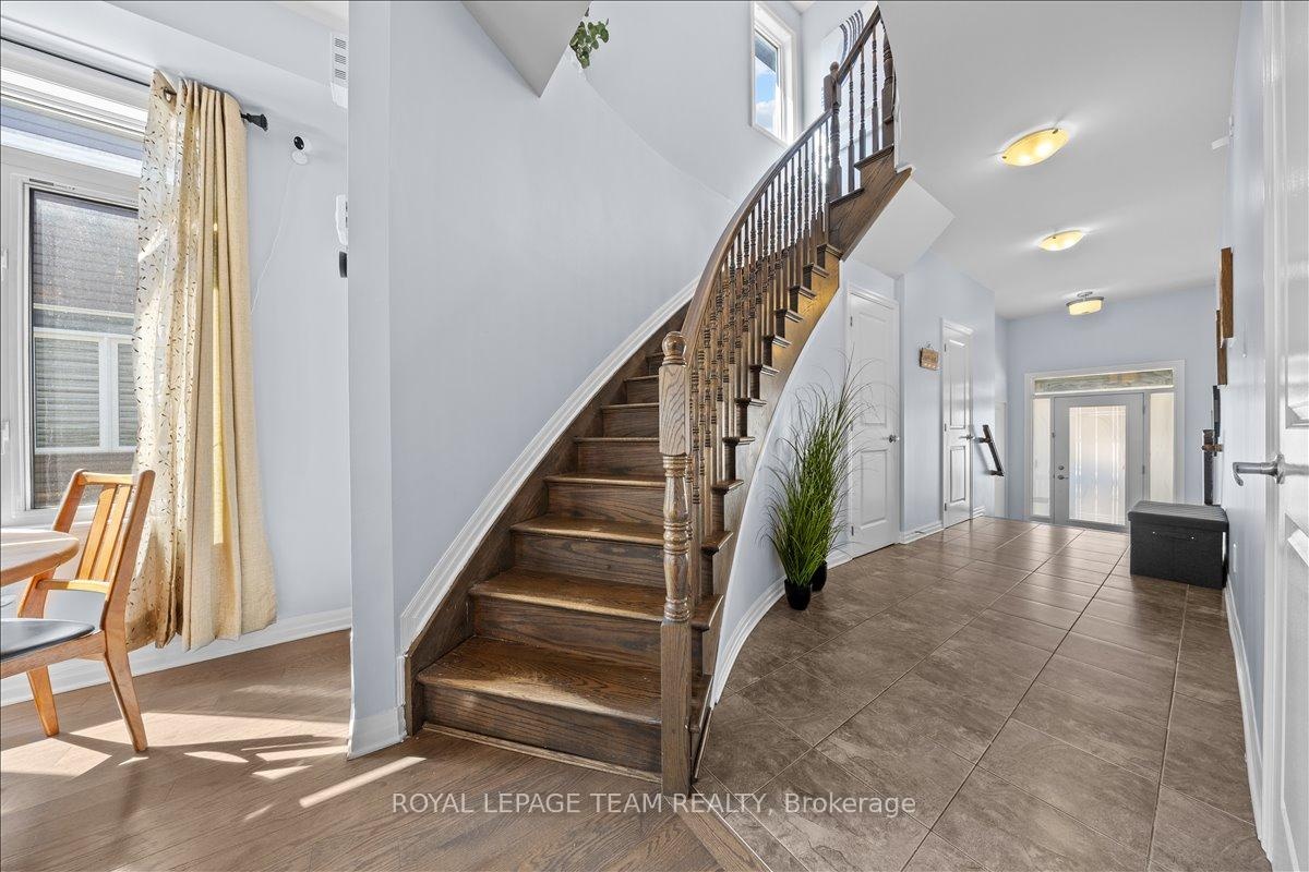 Located in the highly desirable Trailwest community of South Kanata, this sun-filled 4 bedroom, 3.5 bathroom end-unit townhouse offers the perfect balance of style, space, and convenience. Set on an extra-wide lot, the home boasts a carpet-free design, soaring 9-ft ceilings, elegant hardwood floors, and oversized windows that fill every level with natural light. The modern kitchen features granite countertops, a center island, stainless steel appliances, and abundant cabinetry, opening seamlessly to bright and spacious living and dining areas perfect for entertaining or everyday family living. A convenient powder room, mudroom with laundry, and a hardwood spiral staircase complete the main level. Upstairs, discover four generous bedrooms, including a primary retreat with a walk-in closet and private ensuite, along with a second full bathroom. The fully finished basement adds even more living space with a large recreation room, full bath, and generous storage, ideal for a home office, gym, or family gatherings. Freshly painted in 2025 and move-in ready, this home is ideally located just steps from schools, parks, shopping, and public transit.
