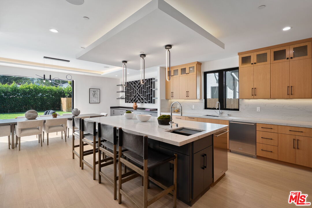This exquisite 5-bedroom, 7-bath contemporary masterpiece in Beverlywood's exclusive HOA with 24-hour armed security patrols, blends high quality craftsmanship with modern luxury. This newly built estate offers a large sparkling pool, expansive grassy yard, and ficus trees that will only grow more mature and add even greater privacy. Inside, wide-plank white oak floors, custom millwork, and designer finishes elevate every space. The open-concept design, with disappearing Fleetwood sliding glass doors, seamlessly connects the interior to a private backyard oasis featuring a sunlit patio and built-in gas line for outdoor cooking. The chef's kitchen shines with Sub-Zero and Wolf appliances, white oak cabinetry, an oversized island, walk-in pantry, and a wine fridge with custom shelving. Each spacious bedroom includes an en-suite bathroom and bespoke closet, with all four upstairs bedrooms opening to private balconies. The primary suite stuns with a spa-like bath, dual vanities, soaking tub, oversized shower, and a tailored walk-in closet. Additional highlights include a sunlit office, Control4 smart home automation, LED lighting, a fully fenced yard with ficus hedges, and lush landscaping with irrigation. A rare gem where luxury and comfort converge in the heart of Beverlywood.