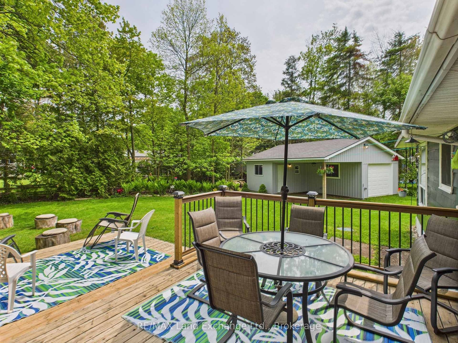 IMPROVED Price, HOT Opportunity !! Create the life you've always wanted in beautiful Point Clark. A versatile year round home or cottage, perfect for family getaways, first time buyers or those looking to enjoy a relaxed retirement lifestyle. Nestled on a quiet cul-de-sac, just a short stroll from sandy beach access, this move in ready and turnkey furnished home or cottage features convenient forced air heating, laundry, 3 bedrooms, 1.5 bathrooms and a beautifully updated kitchen, complete with stunning cabinetry and a functional island ideal for gathering and entertaining. Relax and unwind on the spacious front and rear decks, surrounded by meticulously landscaped grounds that provide both beauty and privacy. One of many great features is the retreat cabin, a fun outbuilding designed for play, creativity and rainy-day escapes for kids or adults. A newer (2020) garage/boathouse adds convenient and secure storage for your vehicle/water toys. Whether you're enjoying lazy summer days on the beach, cozy nights around the fire, or peaceful morning coffee on the deck, this property is the perfect place to unwind, reconnect, and enjoy your best life.
