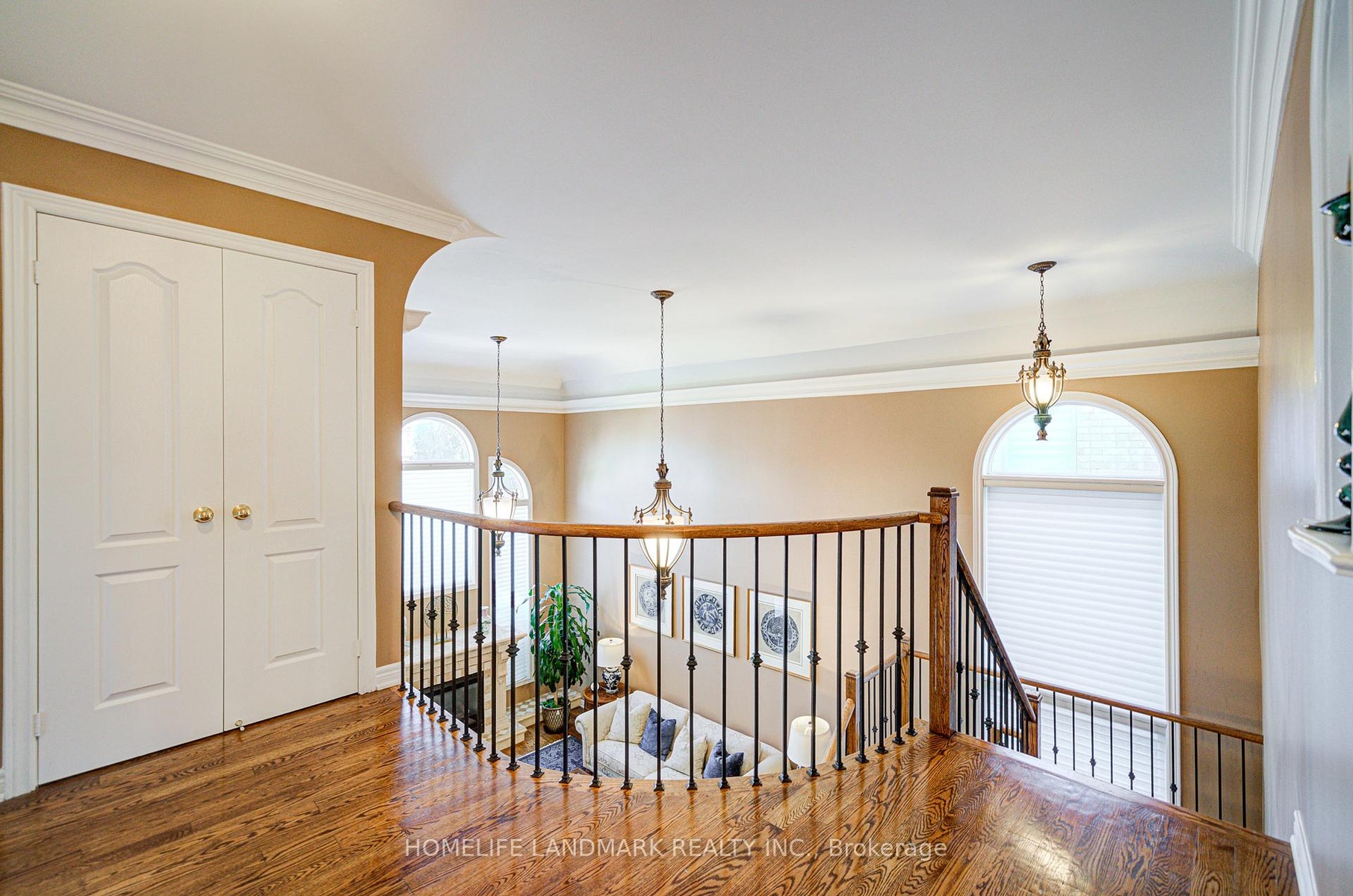 This stunning Spectacular Joshua Creek Fernbrook Home offers over 5,000 sq. ft. of finished living space, featuring 4+1 bedrooms and 4 bathrooms. Exquisitely updated throughout, the home showcases a highly functional layout with seamless flow and beautiful sightlines.Enjoy a private backyard oasis with a saltwater pool and waterfall feature. Inside, the family room boasts 22' cathedral ceilings and a marble-upgraded gas fireplace, while the main floor also offers a library/office.The large master suite includes a luxurious ensuite, and the gourmet kitchen features granite countertops, Miele stainless steel appliances, and California shutters. Other upgrades include crown molding, remote blinds, hardwood throughout, and a fully renovated basement.With its bright west exposure, this home is filled with natural light. Located in the highly sought-after Joshua Creek community, within walking distance to top-rated schools (Joshua Creek Public School and Iroquois Ridge High School). Convenient access to highways, GO Transit, shopping, and all amenities