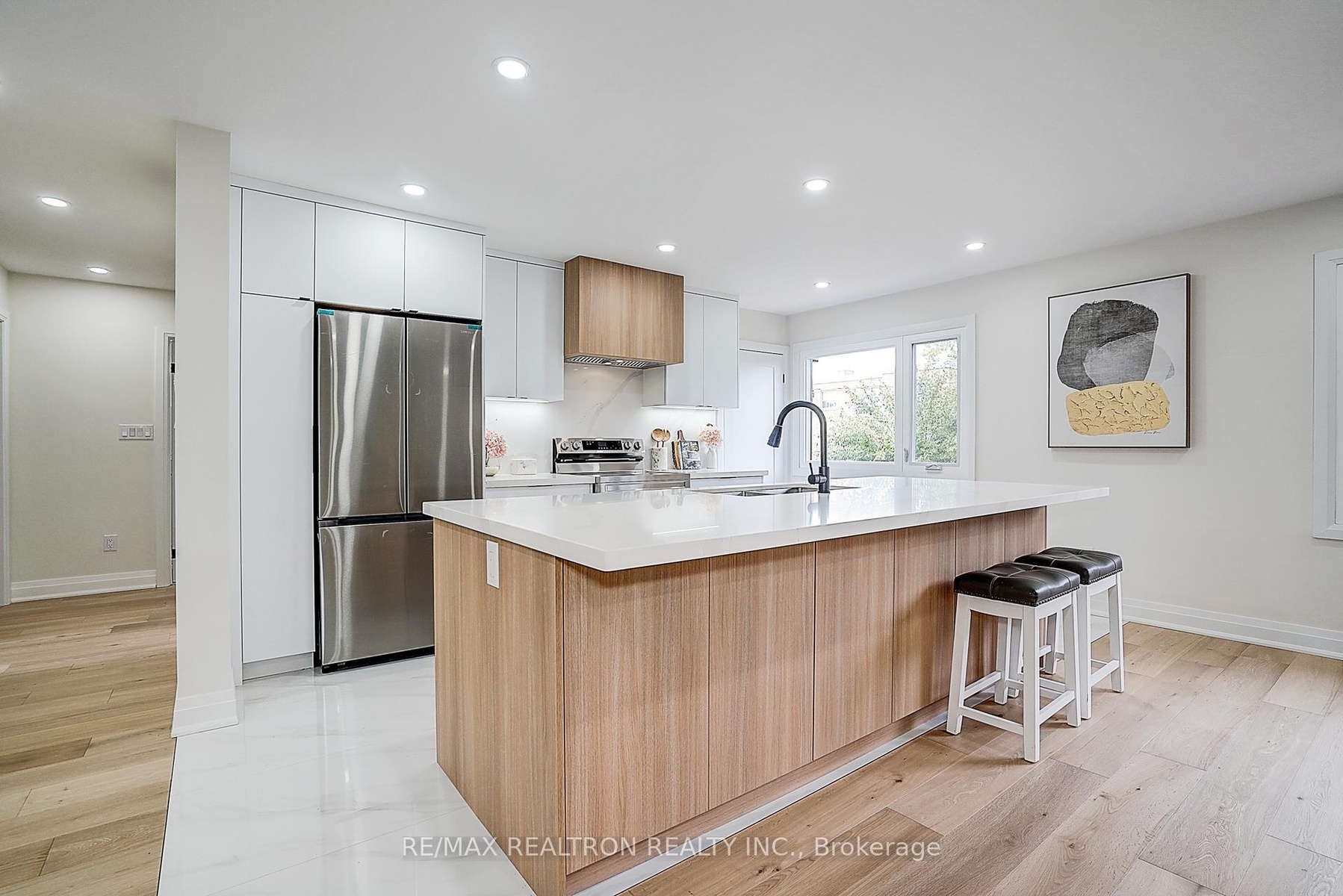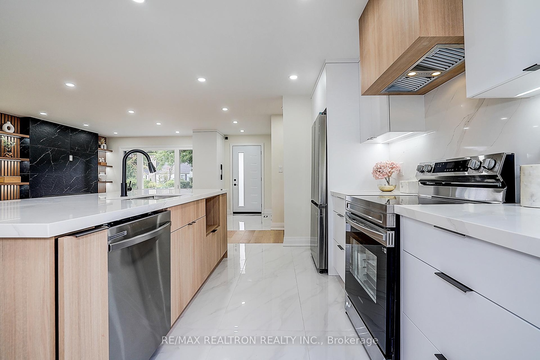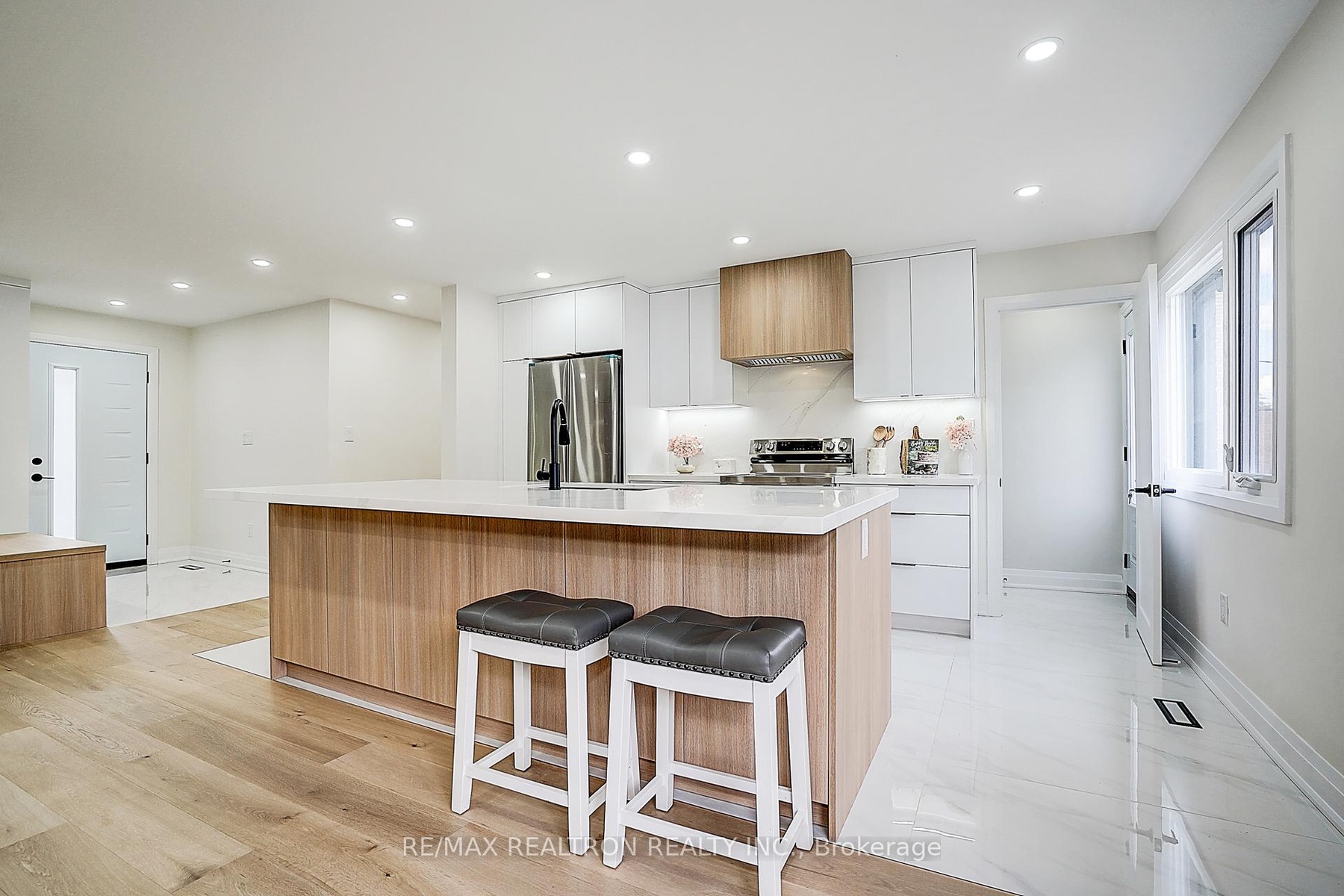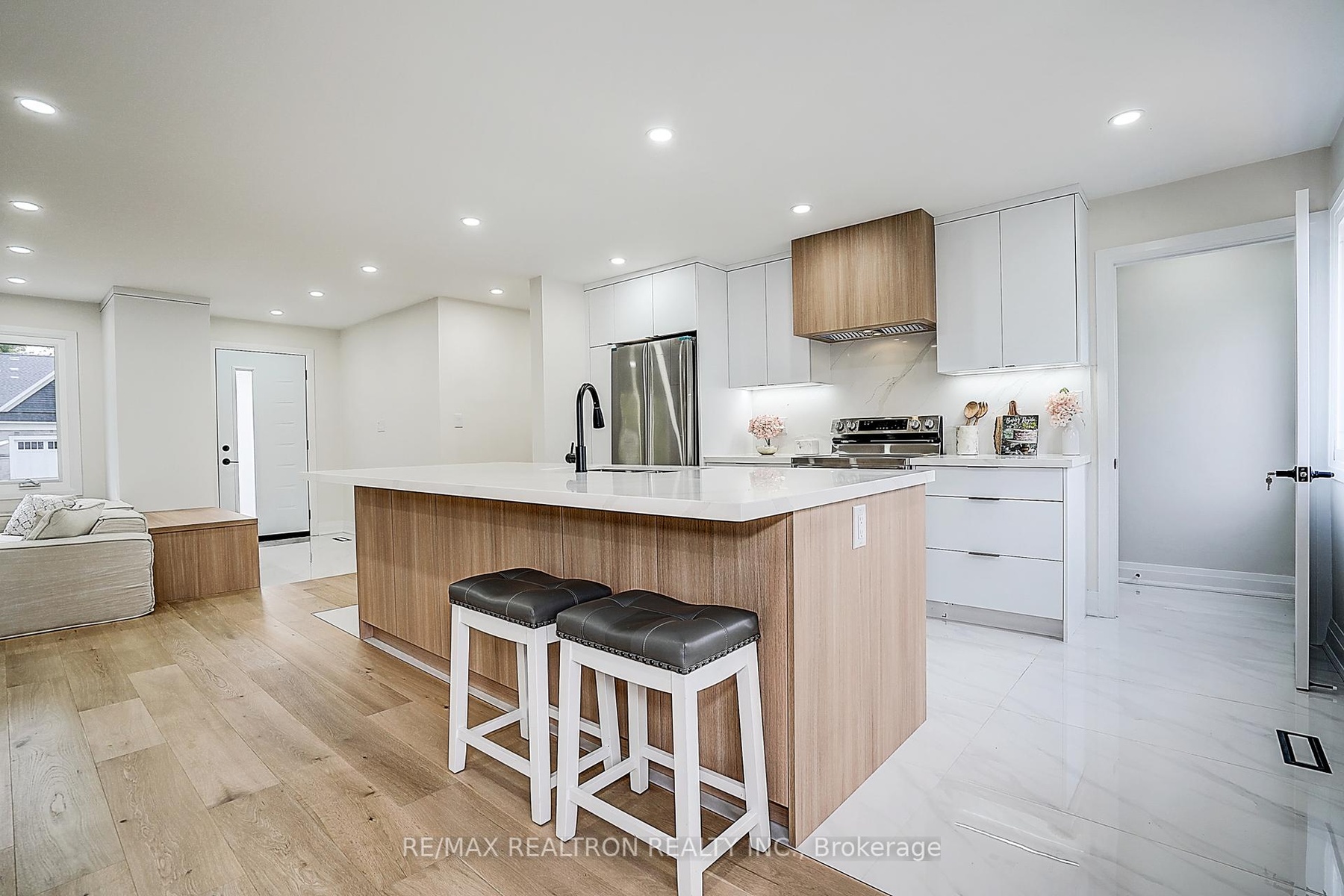 Chic and modern, this beautifully renovated home in Oakvilles sought-after Kerr Village offers style and versatility. Featuring a fluted exterior, open-concept design, pot lights throughout, and new windows, every detail has been thoughtfully curated. The great room is highlighted by a stunning fireplace mantle flanked by modern shelving. The custom chefs kitchen boasts an oversized island, quartz counters, matching backsplash, and stainless steel appliances. Spa-like bathrooms include elegant glass showers and luxury finishes.The finished basement apartment with separate entrance features a designer kitchen, spacious living, and income potential. Outdoors, enjoy a private backyard with wood deck and detached garage. Steps to Lakeshore, downtown Oakville, transit, top schools, shops, and dining, with easy access to the 403/QEW/407.
