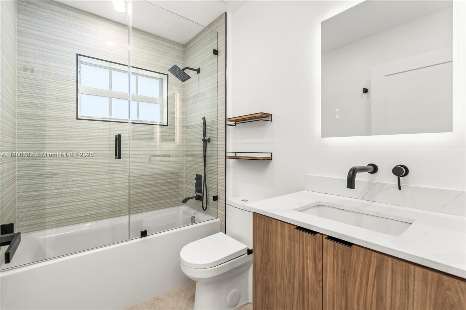 - 8ft Barn Door has a full length mirror on the inside of the bathroom.