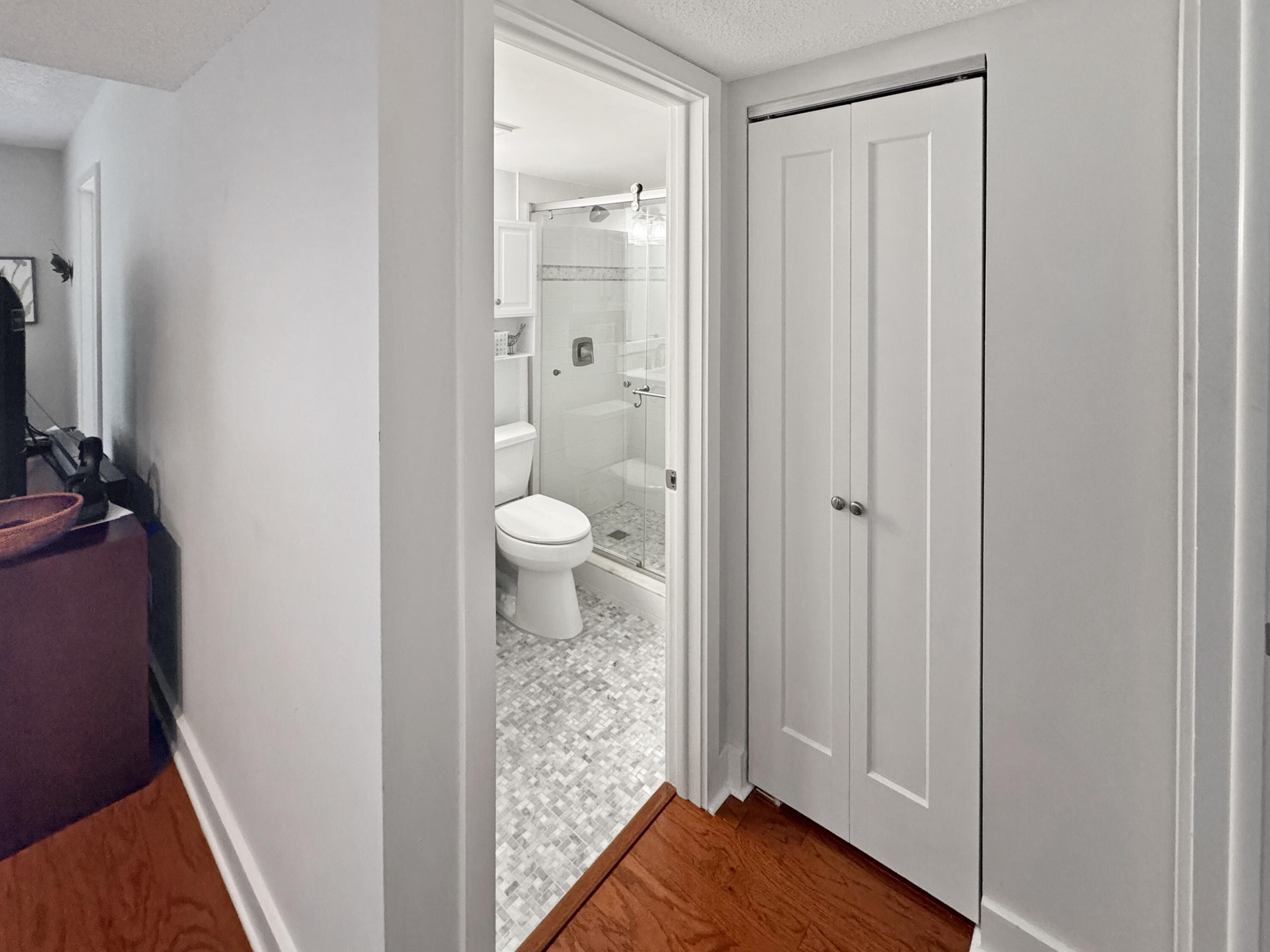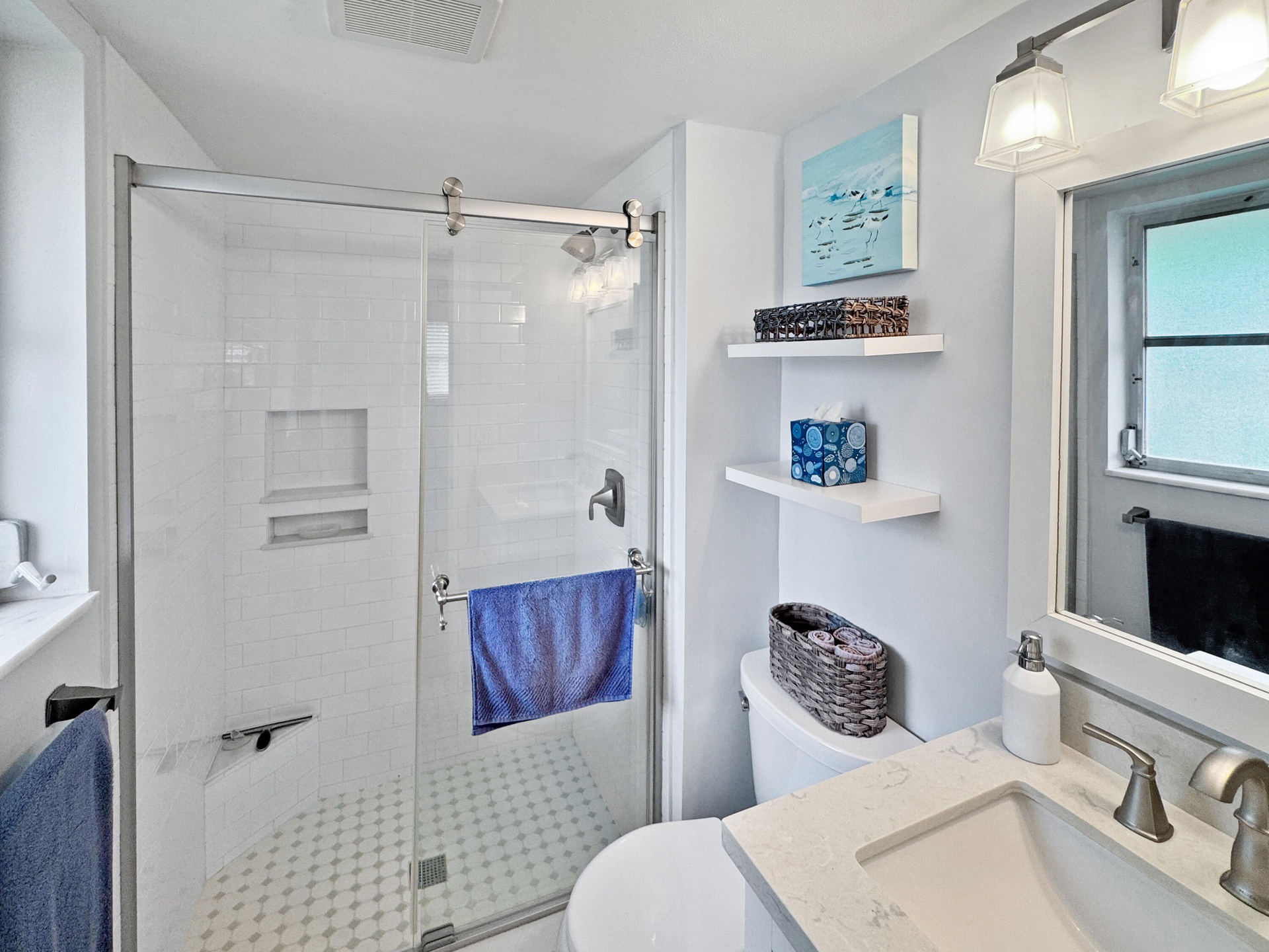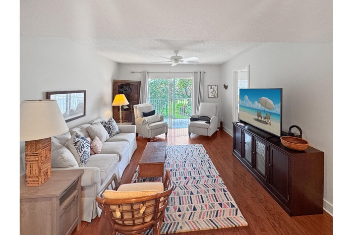 Perfectly priced and move-in ready, this renovated 2-bedroom, 2-bath condo in Little Club offers sweeping views of Jonathan Dickinson State Park, providing an ideal setting for year-round or seasonal enjoyment. The split design offers privacy for guests, while the open layout brings abundant natural light into spacious living and dining areas with wood flooring. The kitchen features white wood cabinetry, stainless steel appliances, vinyl flooring, and generous storage. The primary suite includes a remodeled bath with a glass-enclosed walk-in shower, and the second bedroom accesses another updated bath. A storage closet is located on the balcony for added convenience. Enjoy morning coffee or evening drinks on your private patio. The special assessment has been paid.