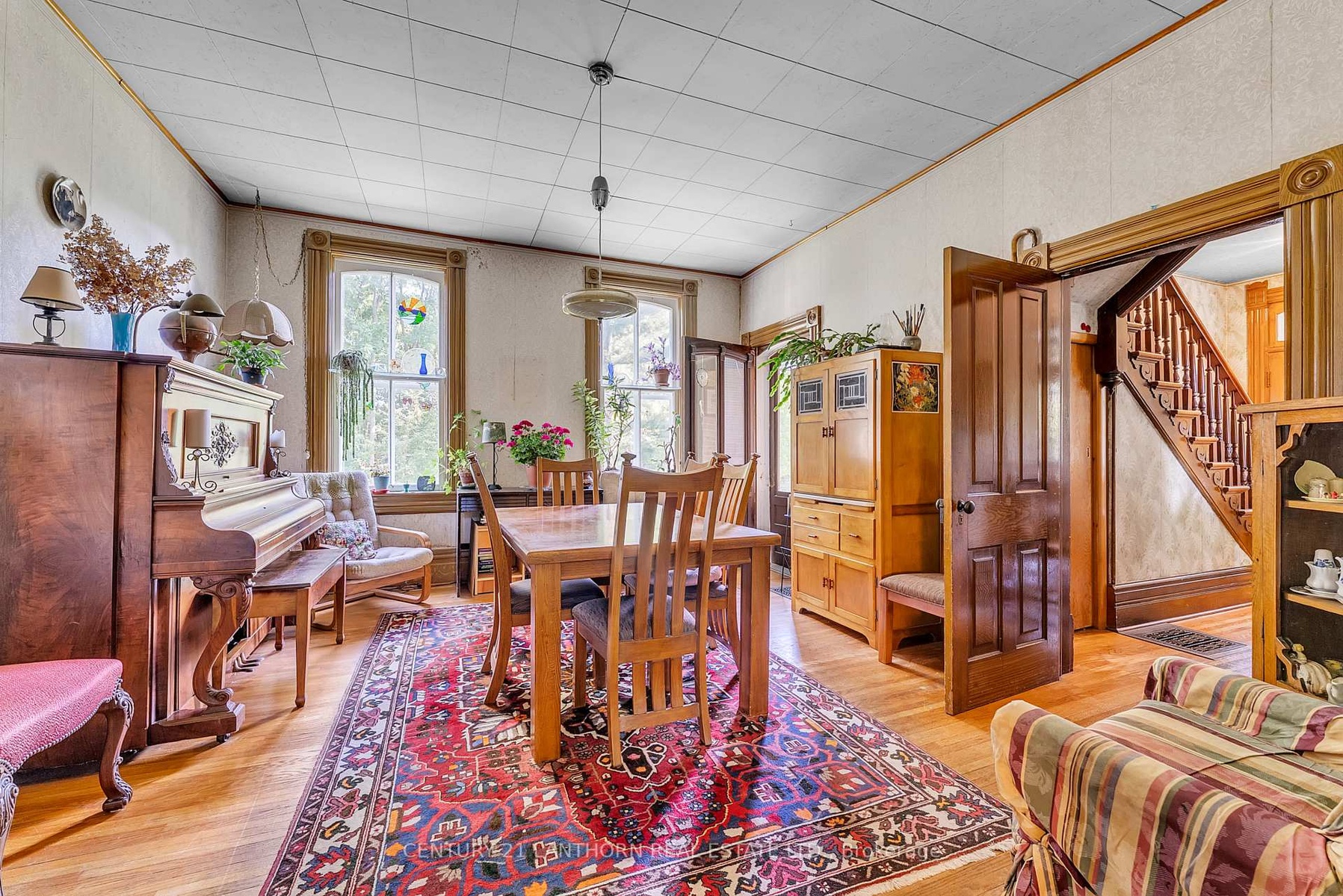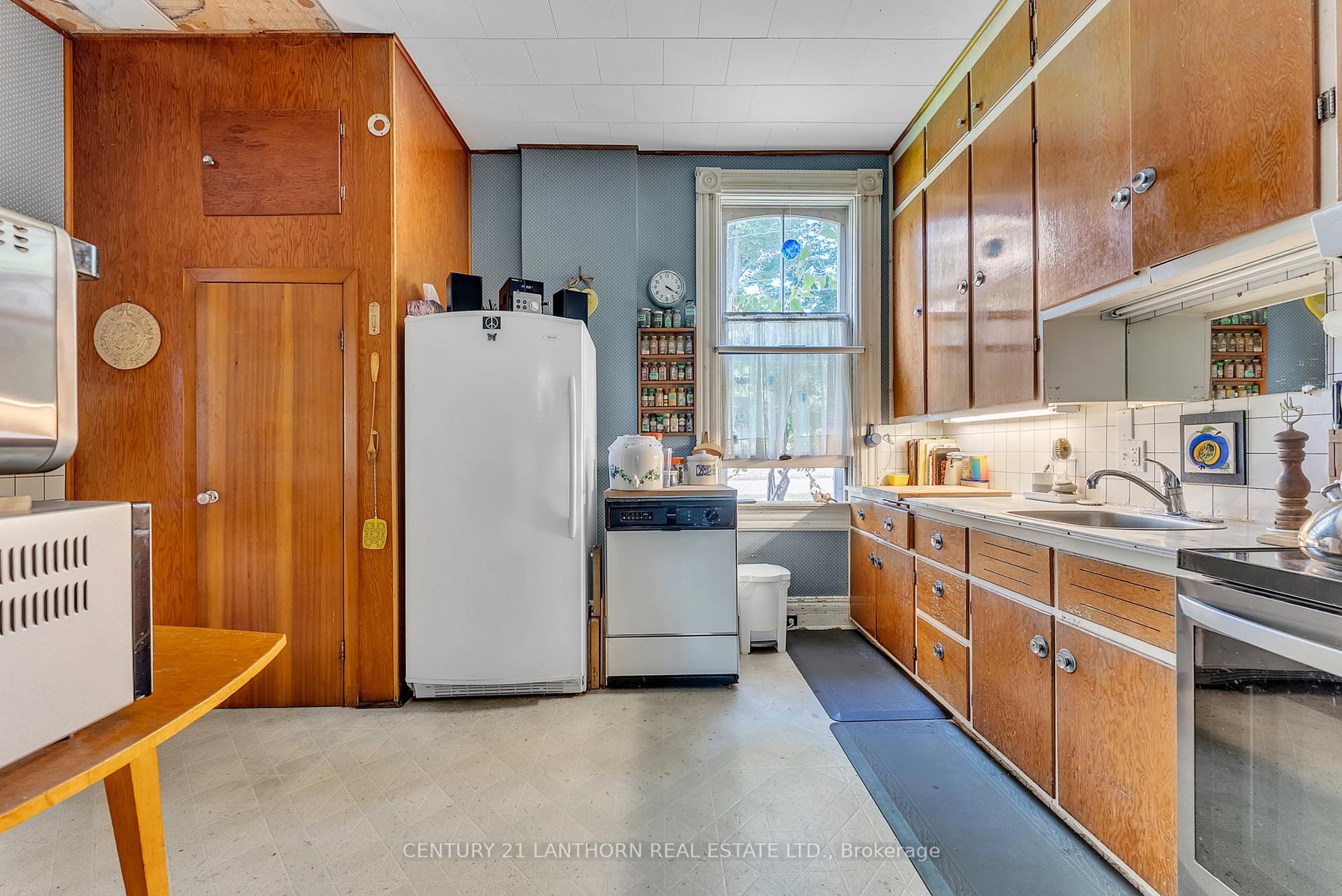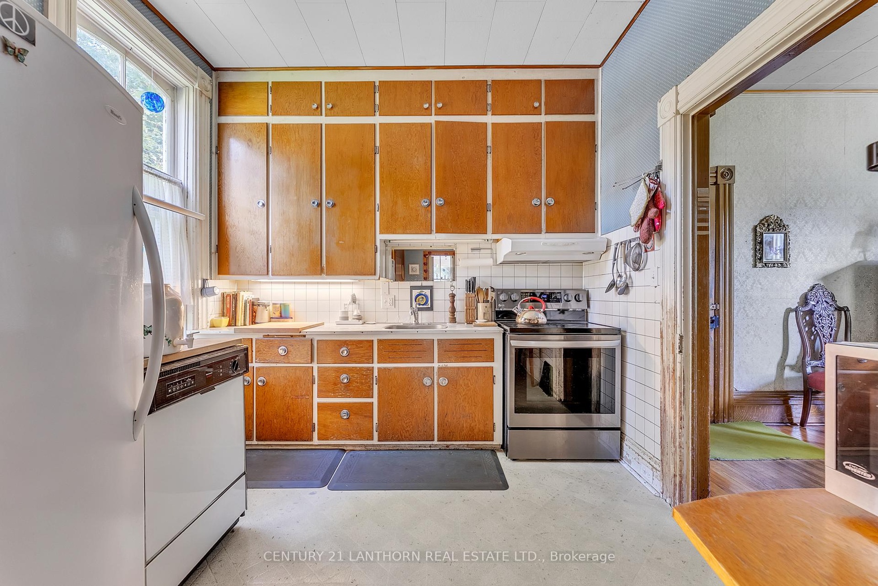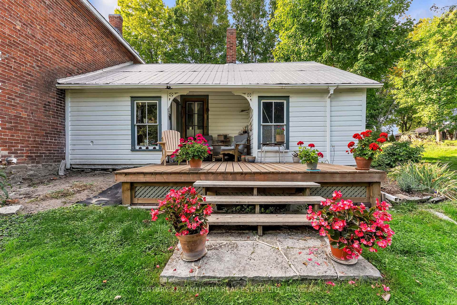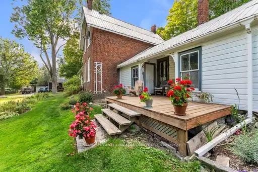 Relax on your veranda in this charming century house, located in the Quaint village of Stirling within walking distance of shops, grocery, bank & parks. This brick two storey 3 bedroom and 1 bath home offers 9ft ceiling on the main floor and architectural features of trim, staircase & hardwood floors. The 2 storey has been upgraded with newer windows & drywall in the bedrooms . Additional features :copper wiring, circuit breaker panel, and metal roof .The "art deco" style kitchen is functional with lots of cabinets & adjoins the original summer kitchen for additional usable space & access to the south facing deck & views of the expansive gardens and mature trees. The seller continues to improve the property with various upgrades. The south & west facing veranda provides ambience, light & privacy to enjoy a cup of tea or coffee at any time of the day or evening. A bonus outbuilding offers storage or create your own studio, workshop of she/he shed. A JOY to show.