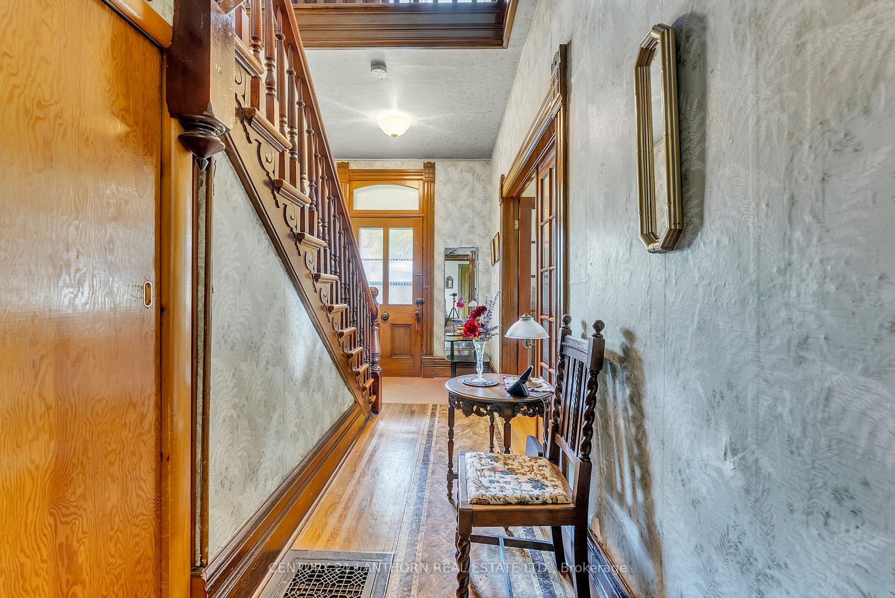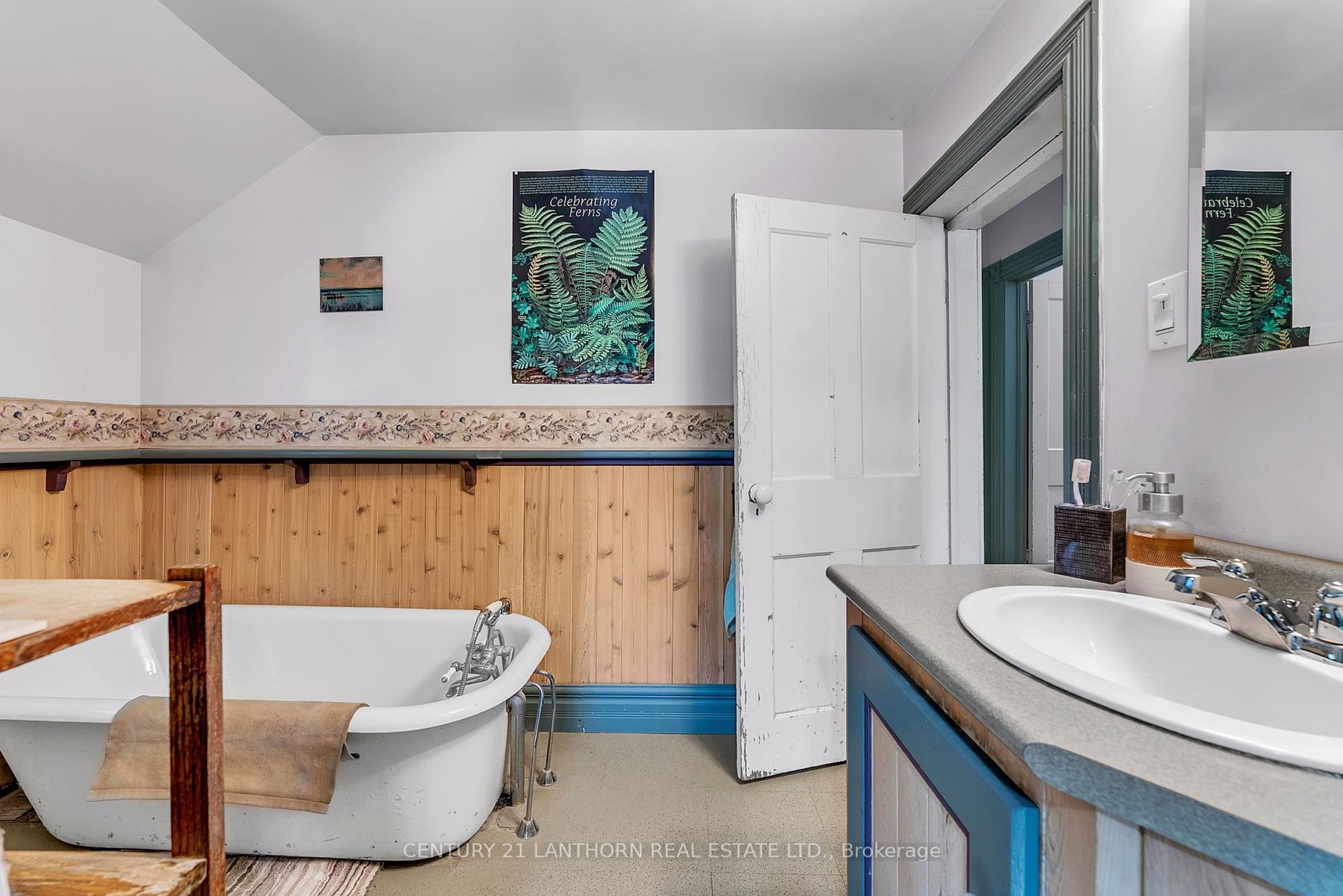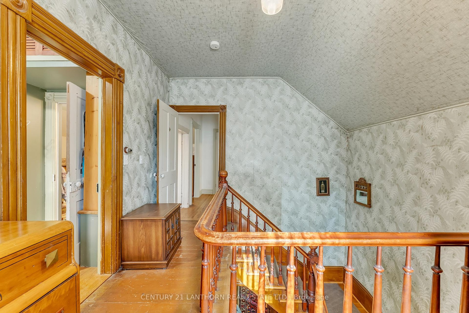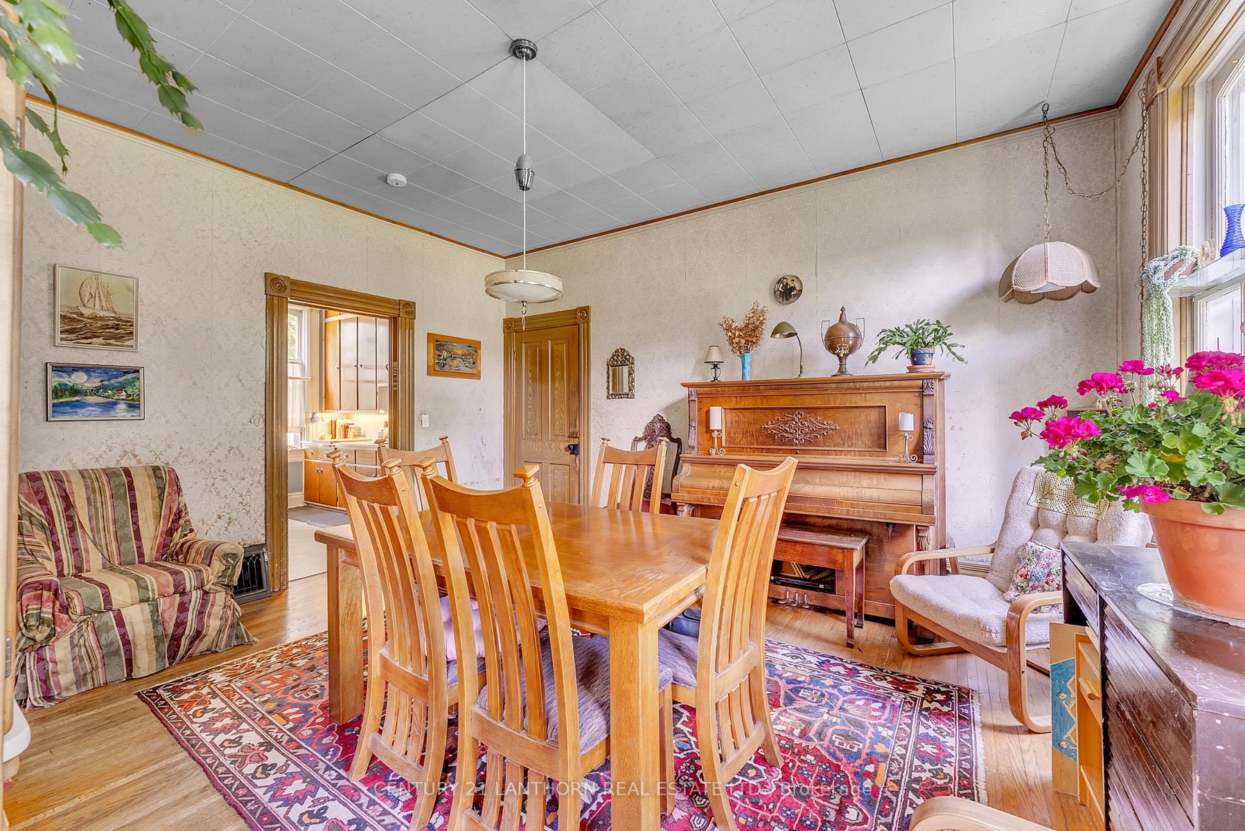 Relax on your veranda in this charming century house, located in the Quaint village of Stirling within walking distance of shops, grocery, bank & parks. This brick two storey 3 bedroom and 1 bath home offers 9ft ceiling on the main floor and architectural features of trim, staircase & hardwood floors. The 2 storey has been upgraded with newer windows & drywall in the bedrooms . Additional features :copper wiring, circuit breaker panel, and metal roof .The "art deco" style kitchen is functional with lots of cabinets & adjoins the original summer kitchen for additional usable space & access to the south facing deck & views of the expansive gardens and mature trees. The seller continues to improve the property with various upgrades. The south & west facing veranda provides ambience, light & privacy to enjoy a cup of tea or coffee at any time of the day or evening. A bonus outbuilding offers storage or create your own studio, workshop of she/he shed. A JOY to show.