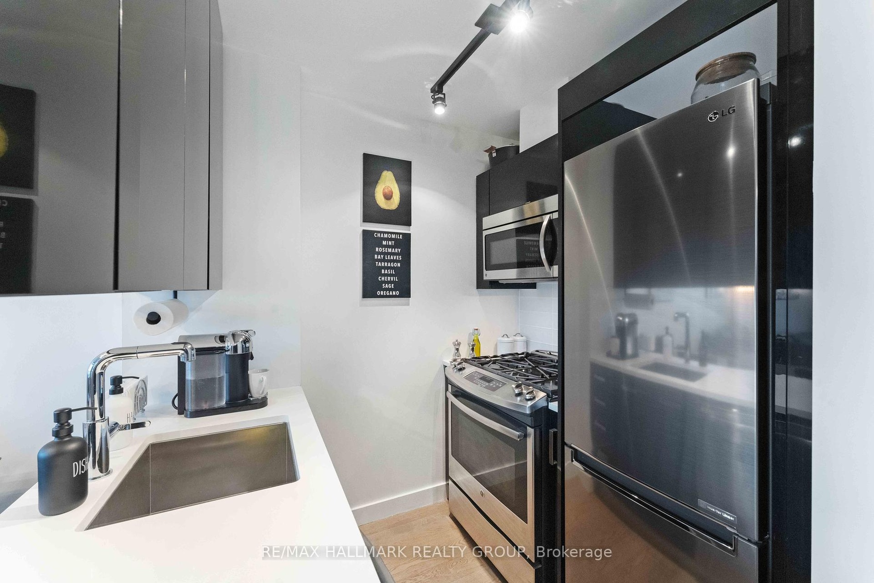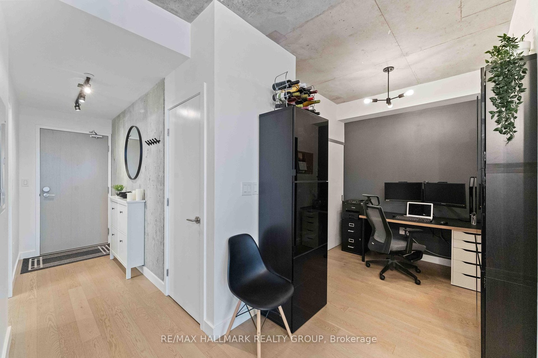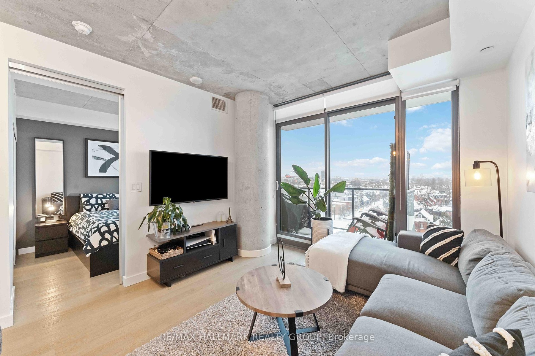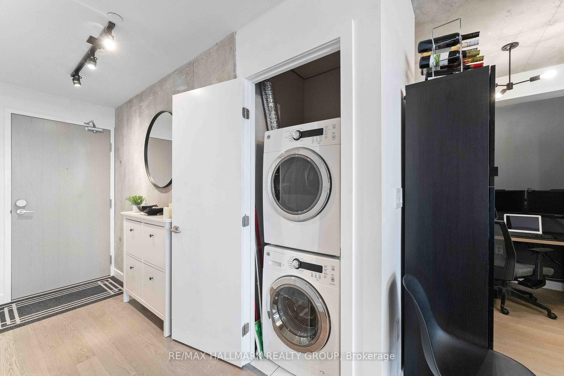 Welcome to the Gotham! This modern and bright executive one plus den condo features state of the art finishes and practical luxury in the heart of the city. The sweeping panoramic glass wall provides an unobstructed southeastern views. This unit boasts unique exposed concrete ceiling, den/work from home space, gas stove, stainless steel appliances, custom blinds, BBQ gas hook up on 128sqft balcony, ample in-unit storage and laundry. This building comes with concierge service, 24hr security, party room with full kitchen and outdoor patio. Minutes away from LRT station, Parliament Hill, ByWard Market, the Ottawa River walk/bike paths, shops, restaurants, cafes, fitness center and night life.